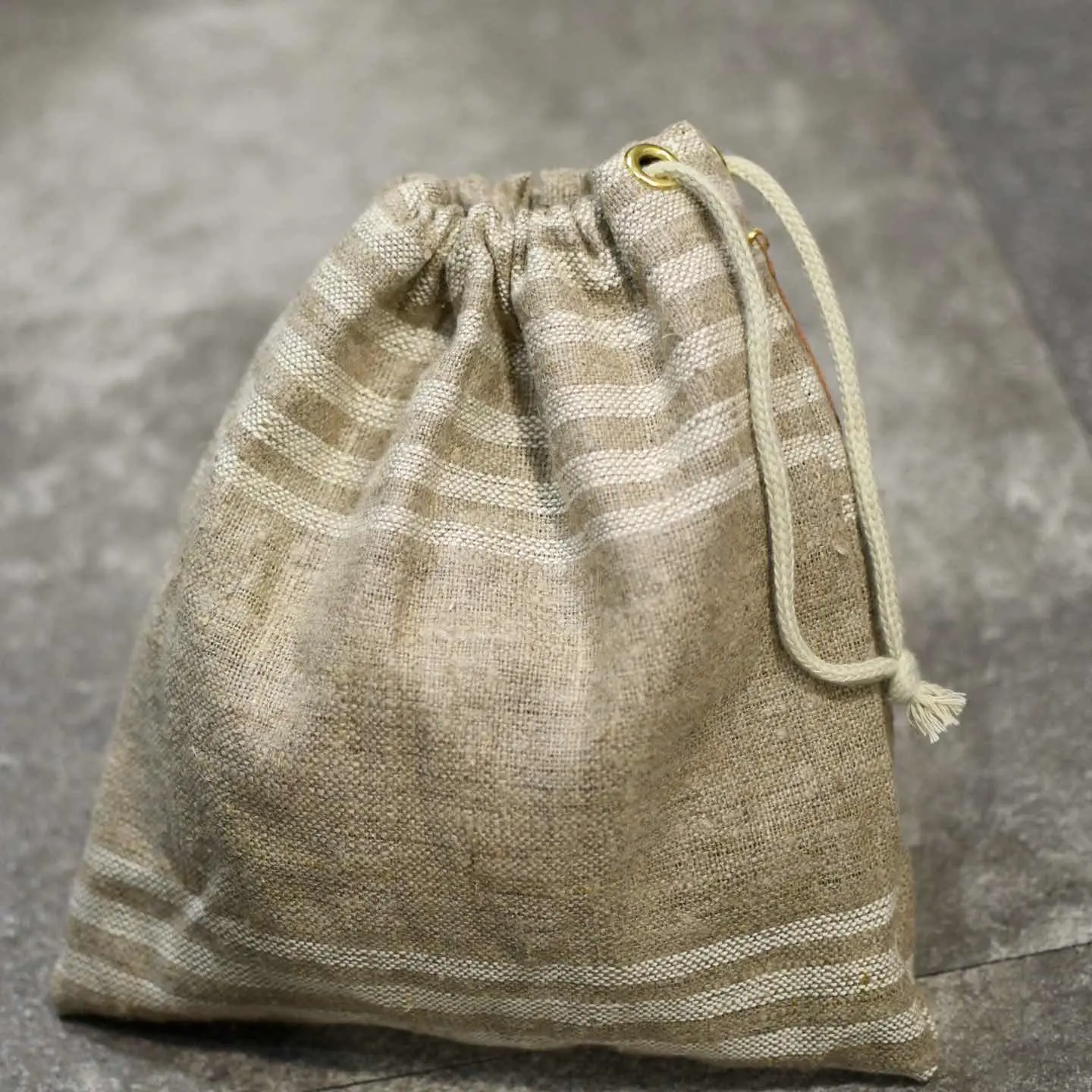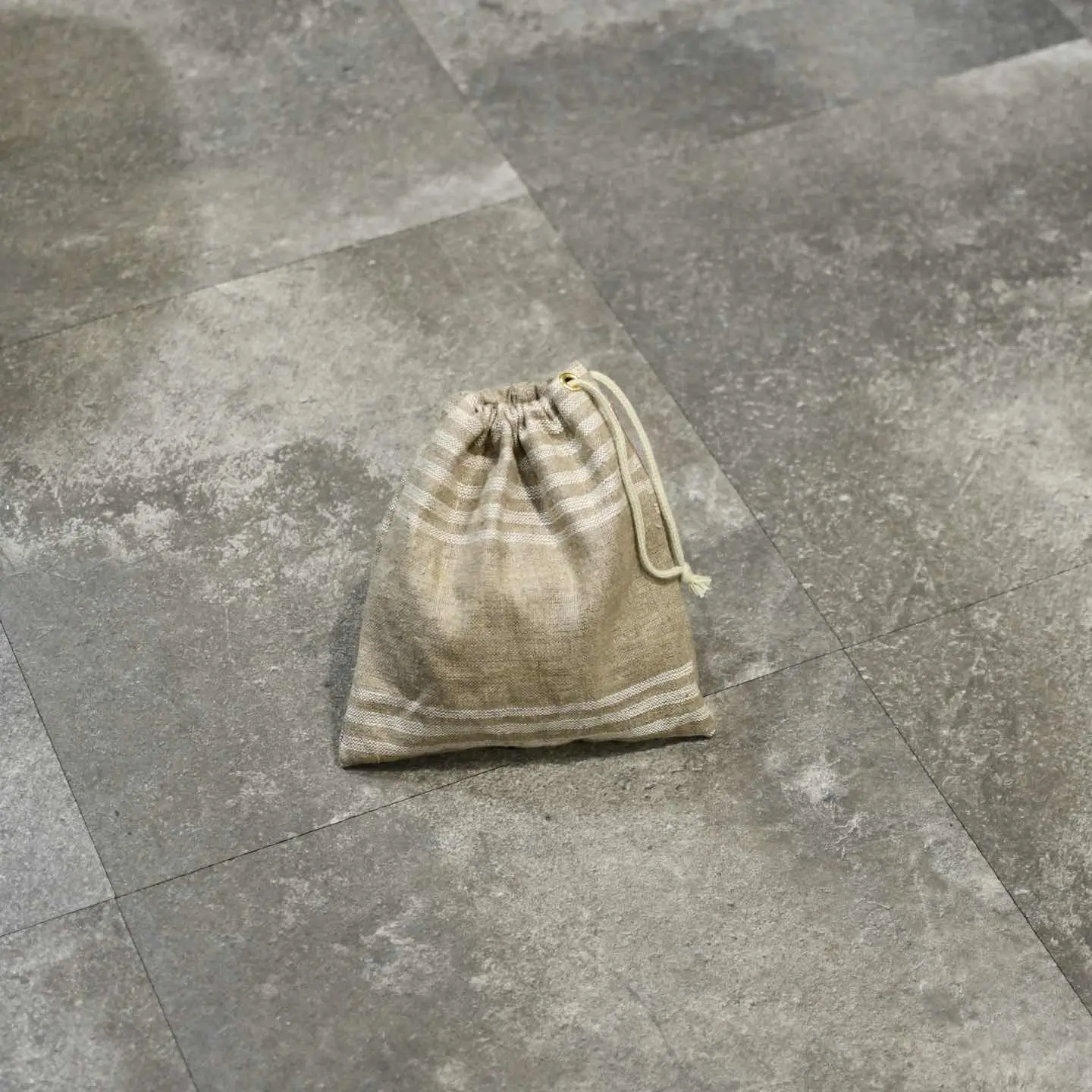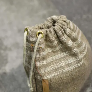 古着 チェコ軍 枕カバー リメイク 巾着 ハンドメイド リネン ベージュ