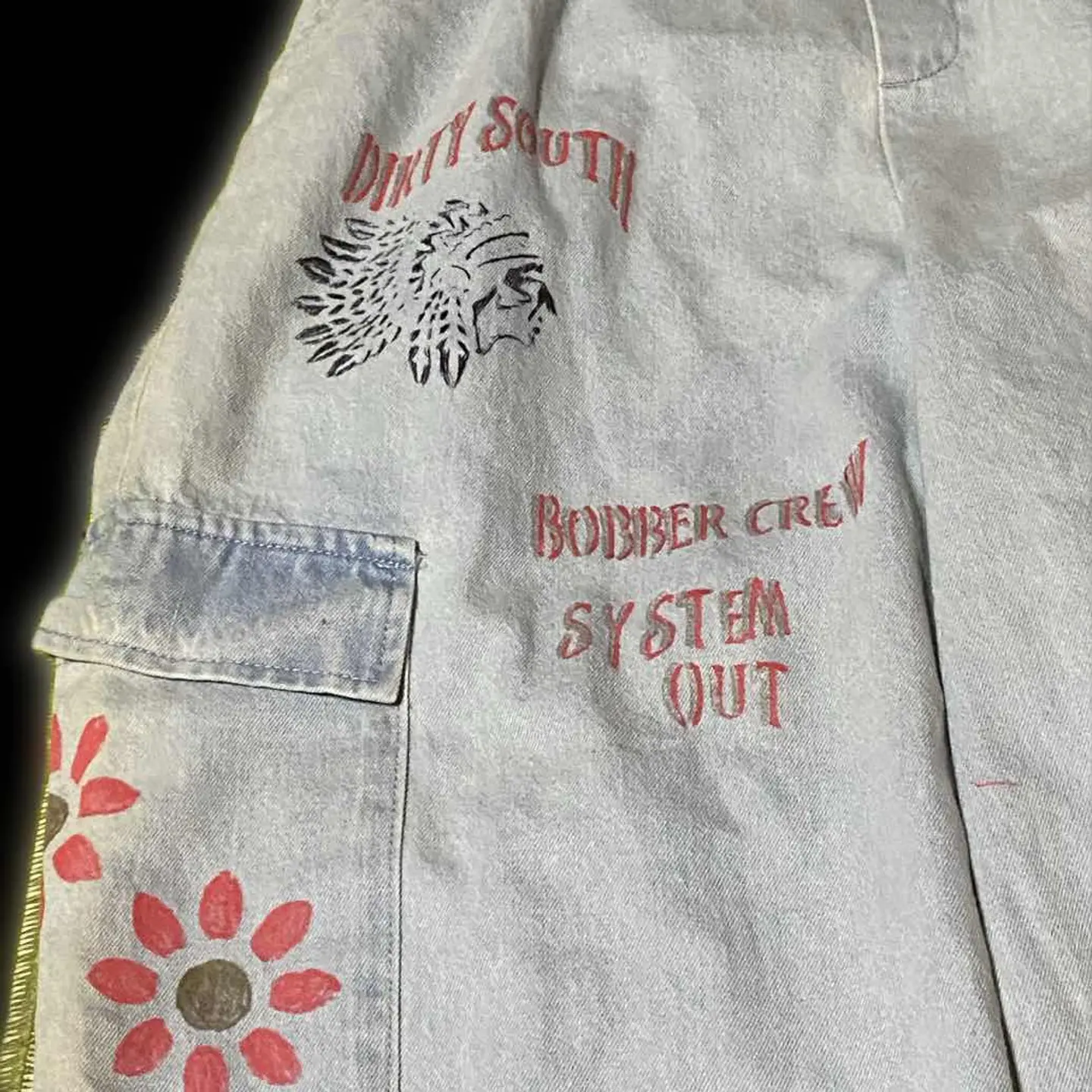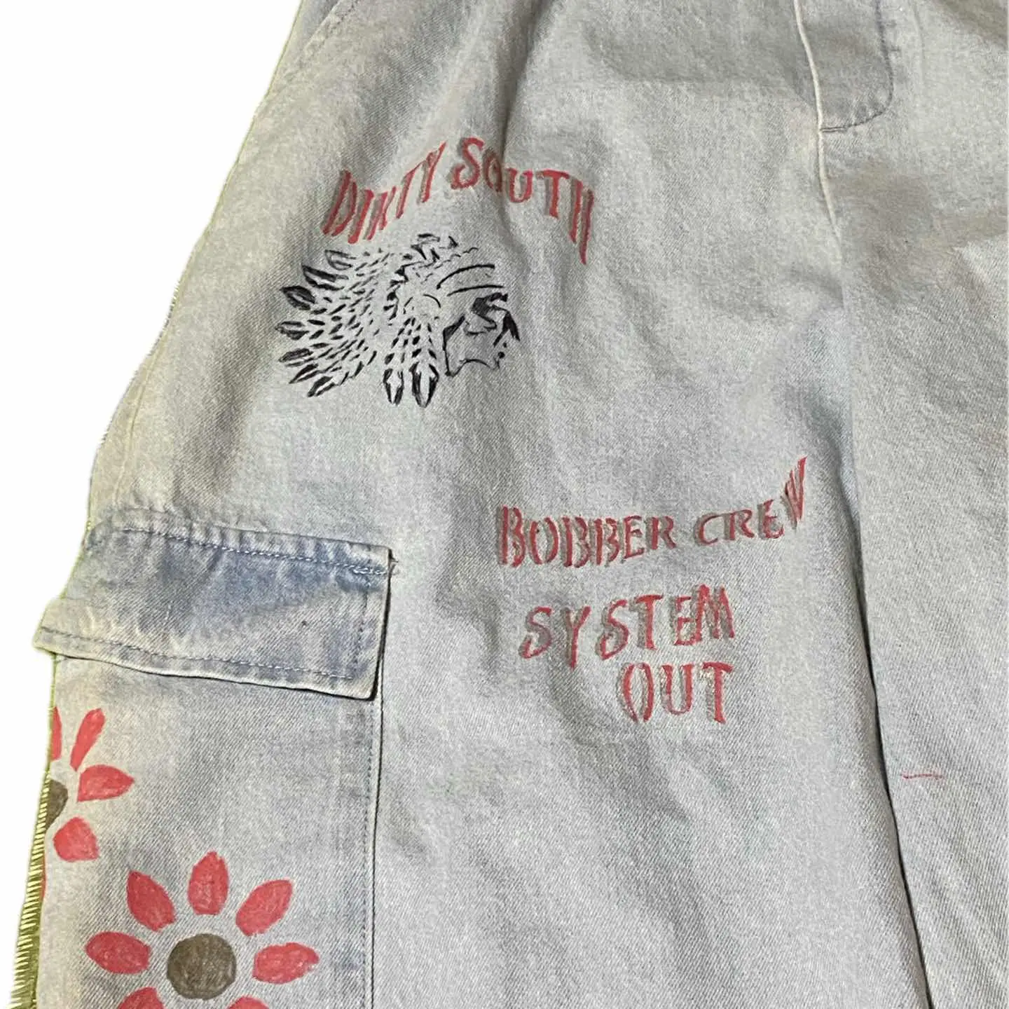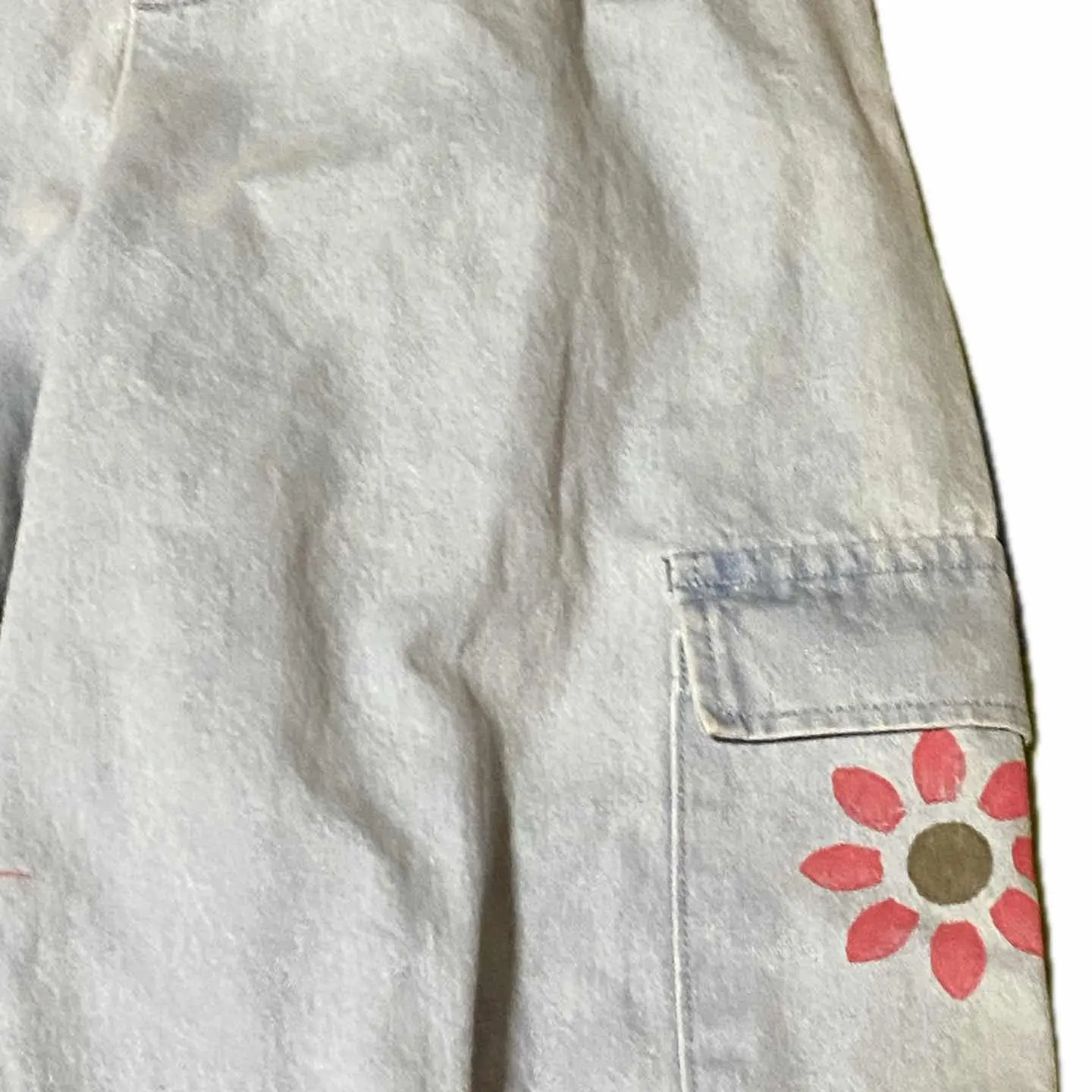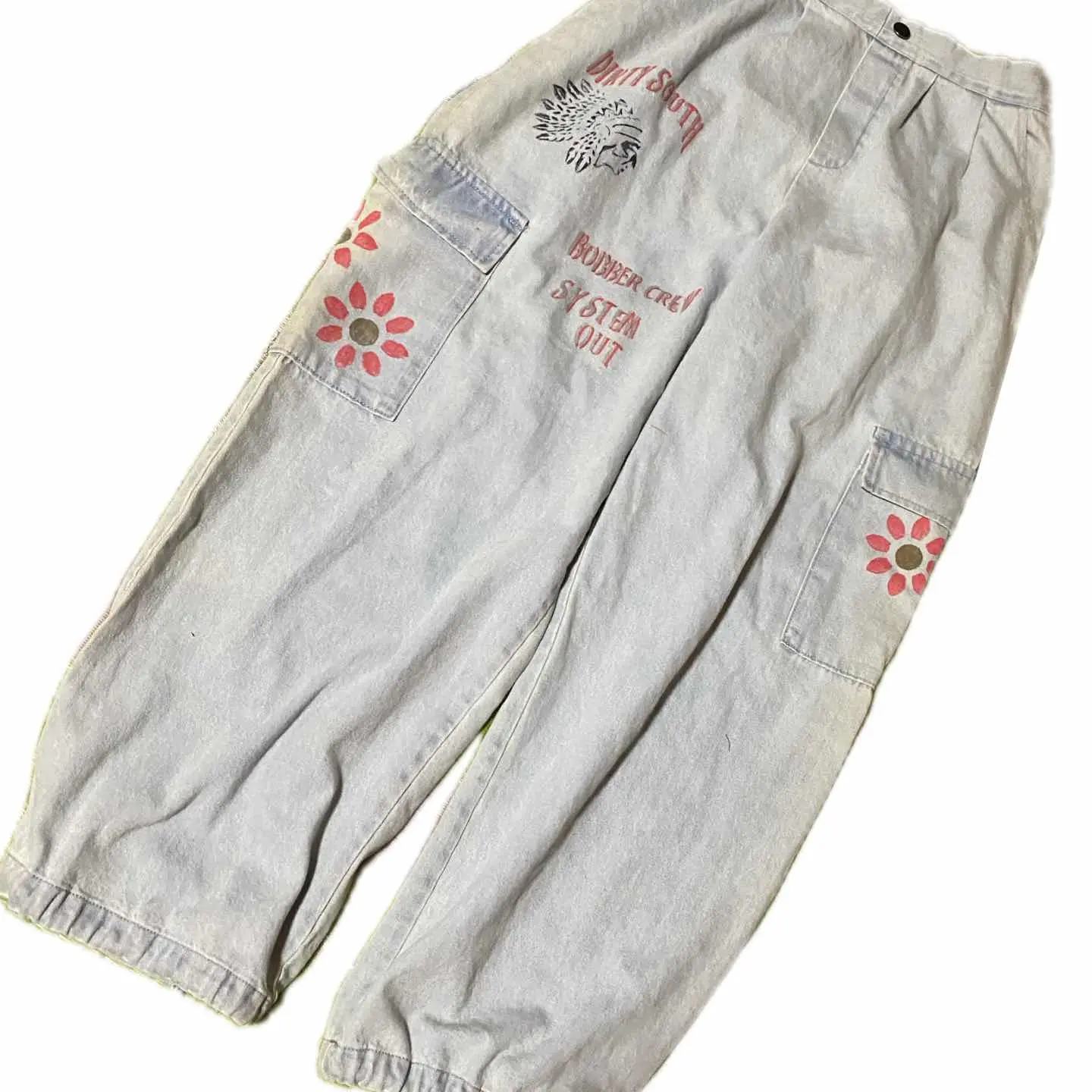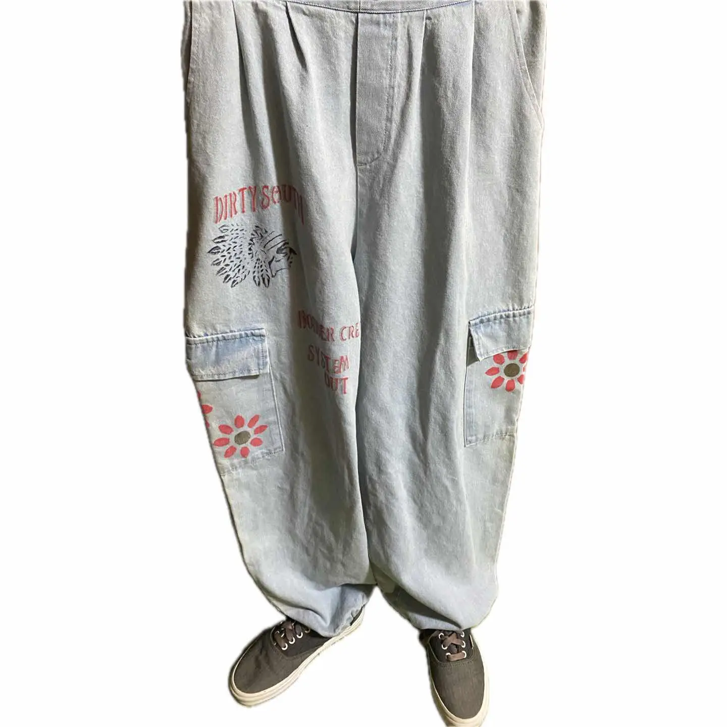 90s Message リメイク ユーティリティータイプ ボトム 力作リメイク、まず90s ガチカーゴって、、、、カッコいいが、、、スタンス選びすぎ、シワうざっ、て流れから、つくられた、ナチュラルラインを、うん、無地ね、で、リメイクしました、機能追加までして、 まず裾踏みいやっすよね?はう、コードいれました、 調節出来ます。これにより ストレート、カーブ、テーパードと、三種類絞って楽しめます^_^ ワザワザ3本買わないでよいって、嬉しくないすか??笑、 また、これからの季節、活躍するカラーですが、、、 んー、個性欲しいな、はい、Message、を、かまぼこロゴ丁寧に手書きして、 インディアン描いて、 サイドポケットに、 サンフラワーアートを、これまた、油性インクつかって、疲れた笑と思いながら、手書きです!! これにより、フロント、キャスパージョンの、無地カットソーでも、洒落感でて、サイドから、サンフラワー見える、しかも、バックからみても、見えると視覚効果抜群だが、行き過ぎてない、 しかも、Messageは、世界平和の意味っすよ、 さらに、今回私は、裾をカーブタイプ好きなんでそれに合わせて絞ると、VANS 限定エラ、【ローカットなのに、裾踏みなし!】 パーフェクトリメイクね!! 【カラー】 写真通り 【サイズ】 S-XLまで、対応します、 W64-96対応 股上31 股下70 腿渡32 裾27絞れます 【状態】 不具合あるわけない、丁寧仕上げ、vintageつかったのは、理解下さい、 【material】 斜織cottonデニム