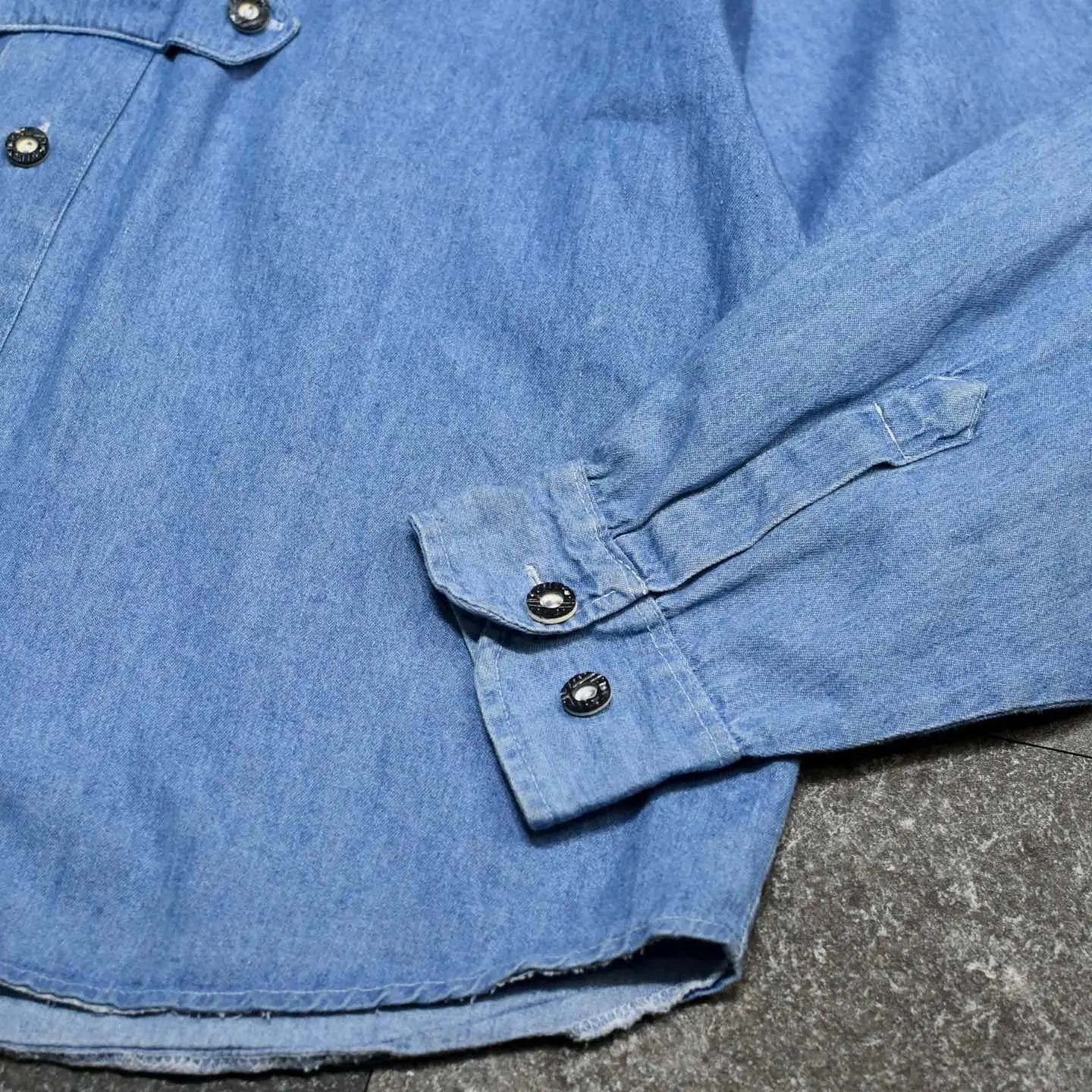 SIZE:41/42 着丈79cm 肩幅53cm 身幅67cm 袖丈65cm fabric/cotton 着用画像 173cm/56kg この季節に見掛けると、なぜだかいつもより 心が踊るデニムのチロリアンシャツ。 アイボリー色のチロリアンシャツと比べ、 比較的球数の減る、デニムのチロリアンシャツですがこちらは中でも前立てのディテールや、刺繍など しっかりデザインの効いた個体です。 1枚で程良く上品に、個性の出るシャツとして おすすめです。 ※撮影状況により、実物と多少色が異なる場合が ございます。 ※古着を取り扱っているため、気づかない汚れや ほつれ等がある場合がございます。 ※サイズは着用感で選んでおり、 表記サイズは説明欄の最初に記載しております。 オーバーサイズ old vintage ヴィンテージ used 80's 90's アメリカ古着 ユーロ古着 POLO RALPH LAUREN Eddie Bauer OLD GAP LANDS' END ランズエンド LLBean エルエルビーン オールドギャップ エディーバウアー ラルフローレン ブルックスブラザーズ Brooks Brothers 長袖シャツ シャツ などがお好きな方 #vintage #オーバーサイズ #old #used #90s #80s #古着 #ヴィンテージ #アメリカ古着 #ユーロ古着 #LLBean #エルエルビーン #EddieBauer #エディーバウアー #oldgap #オールドギャップ #LANDSEND #ランズエンド #NAUTICA #ノーティカ #ラルフローレン #POLORALPHLAUREN #チロリアンシャツ #ブルックスブラザーズ #BrooksBrothers #デニムシャツ #デザインシャツ #長袖シャツ #シャツ
