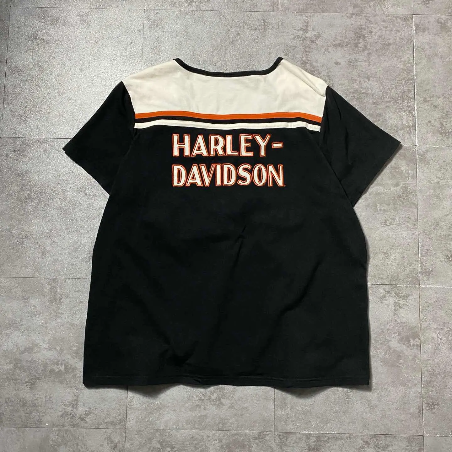 ○Size○ 表記→タグ欠損のため不明(着用感M-Lサイズ相当) ・着丈66 ・身幅63 ・肩幅49 ・袖丈20 (cm) ○Color○ ・ブラック、ホワイト、オレンジ ○Material○ ・タグ欠損のため不明(コットンベースの多少伸縮性のある生地感となっております) ○Condition○ ・首元タグ欠損 ○Caution○ 当店で取り扱っている商材は全て『古着』となっております。 そのため、多少の状態難(ほつれ、傷、汚れ、リブの伸び、使用感、擦れ、色あせ、etc)がある場合がございます。 新品同様の完璧なお品物をお求めの方は当店でのお買い物を控えて頂きますよう宜しくお願いします。 また、購入された商品に関しましては、購入日時から起算して『72時間以内に』発送手続きの方を取らせて頂きます。 お急ぎの場合は購入前に当店オンラインストアの方にお問い合わせ頂きますよう宜しくお願いします。 26/371