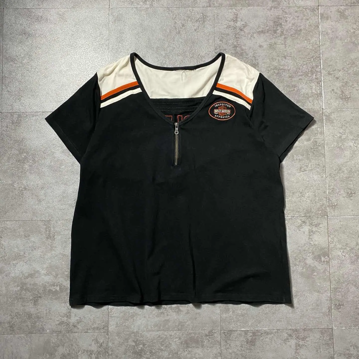 Harley-Davidson ハーフジップ 刺繍バックロゴ Tシャツ