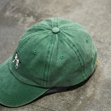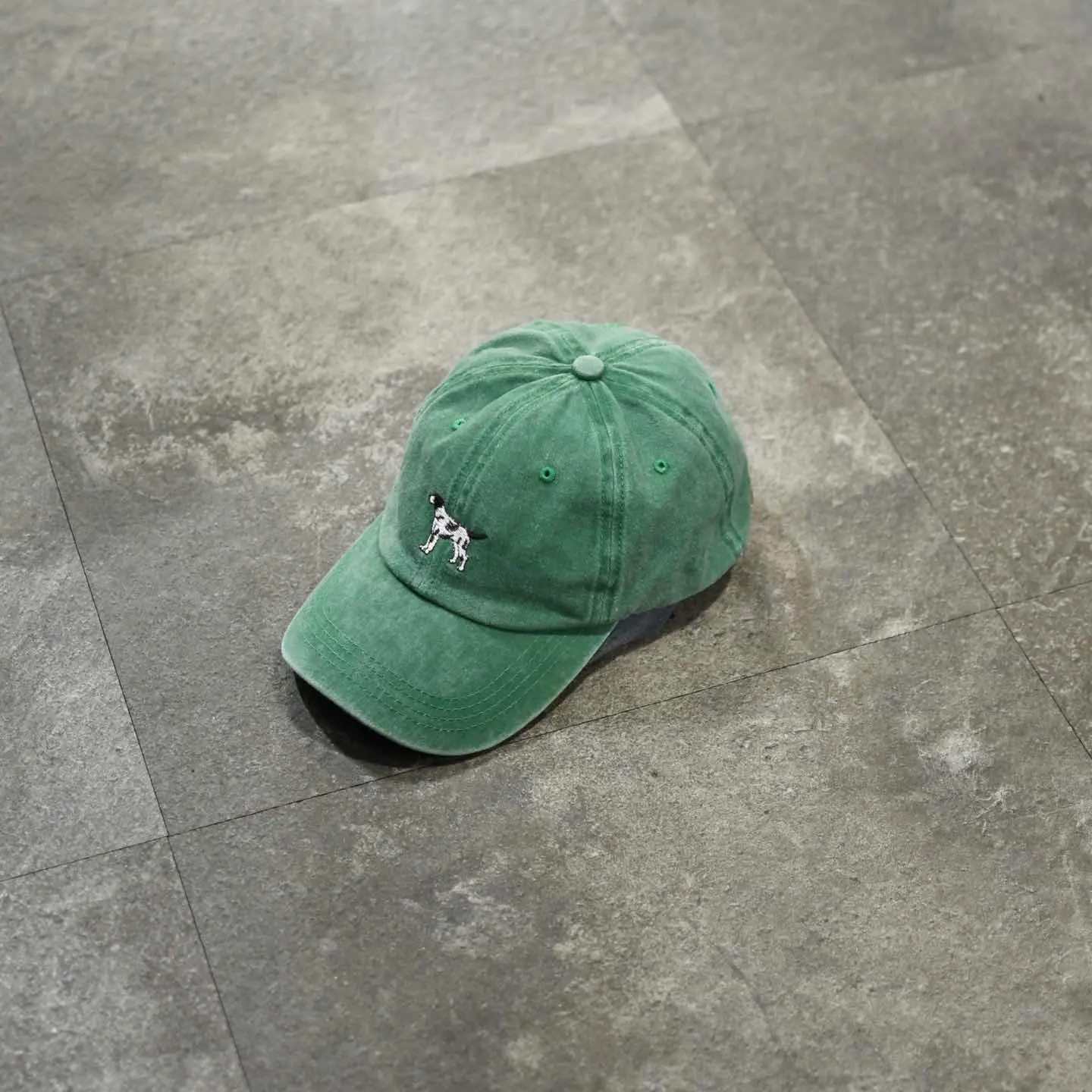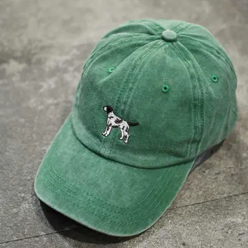 古着 フェード 6パネル 犬 刺繍 ベースボールキャップ キャップ 帽子 緑