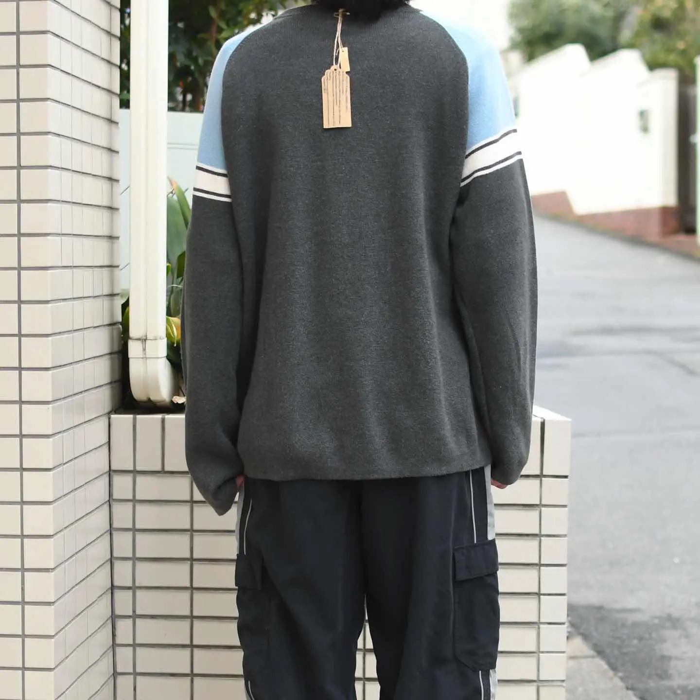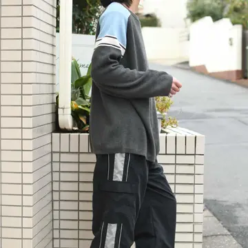 古着 Geoffrey Beene サイドスリット 2トーン コットンニット