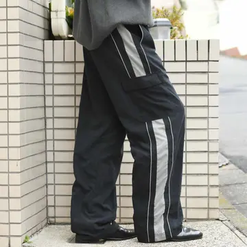 SIZE:M ウエスト~100cm(ドローコード付き) 総丈107cm 股下77cm わたり37cm 裾幅24.5cm fabric/poly 着用画像 173cm/58kg ナイロンパンツの良さであり、難しさでもある 生地の光沢やシャリ感ですが、 こちらはフェイクスウェードのようなしっとりとしたスムース生地で、どこか上品さまで感じる一着。 しっかりと太さのあるシルエットに、 主張し過ぎないカーゴポケット◎ 同じ生地感のフェイクスウェードシャツや、 ドレス寄りなシャツなんかと合わせた時に感じる ”絶妙な調和と抜け”が癖になる逸品です。 裾に棲む控えめなロゴも良し... ※撮影状況により、実物と多少色が異なる 場合がございます。 ※古着を取り扱っているため、気づかない汚れや ほつれがある場合がございます。 ※サイズは着用感で選んでおり、 表記サイズは説明欄の最初に記載しております。 古着 オーバーサイズ old vintage ヴィンテージ used 80's 90's アメリカ古着 ユーロ古着 POLO RALPH LAUREN Eddie Bauer OLD GAP LANDS' END ランズエンド LLBean エルエルビーン オールドギャップ エディーバウアー ラルフローレン ブルックスブラザーズ Brooks Brothers 黒 サイドライン イージーパンツ などがお好きな方 #vintage #オーバーサイズ #old #used #90s #80s #古着 #ヴィンテージ #アメリカ古着 #ユーロ古着 #LLBean #エルエルビーン #EddieBauer #エディーバウアー #oldgap #オールドギャップ #LANDSEND #ランズエンド #NAUTICA #ノーティカ #ラルフローレン #POLORALPHLAUREN #NIKE #ナイロンパンツ #ワイドパンツ #イージーパンツ #カーゴパンツ