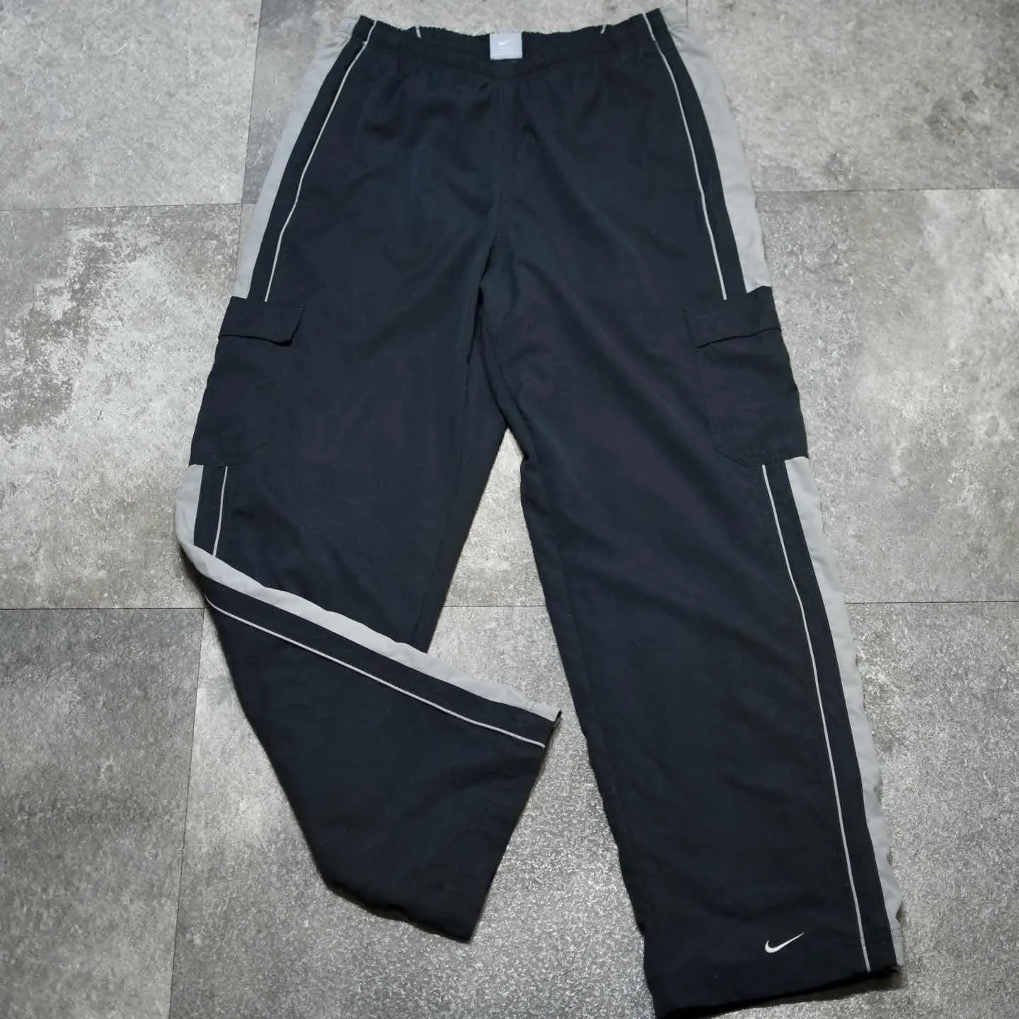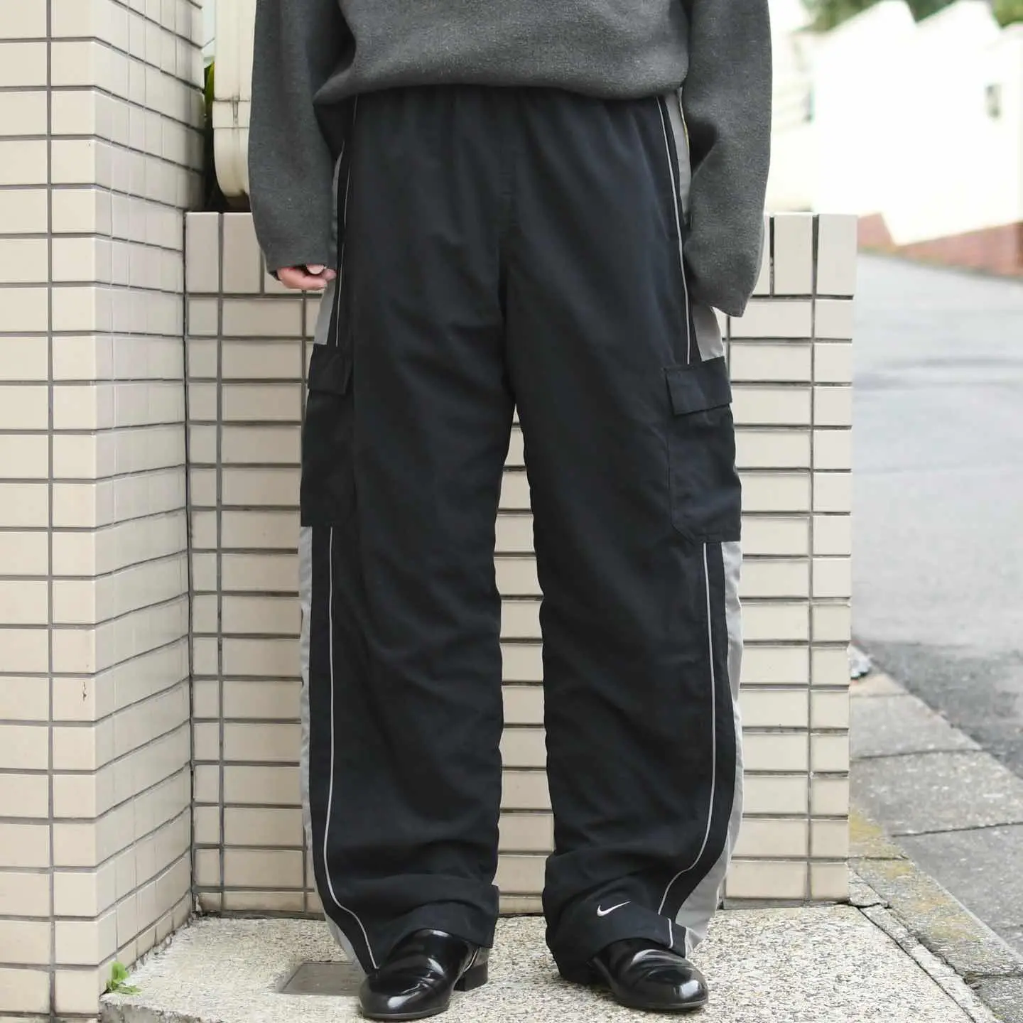 古着 NIKE スムース ナイロンパンツ カーゴパンツ ワイドパンツ ブラック