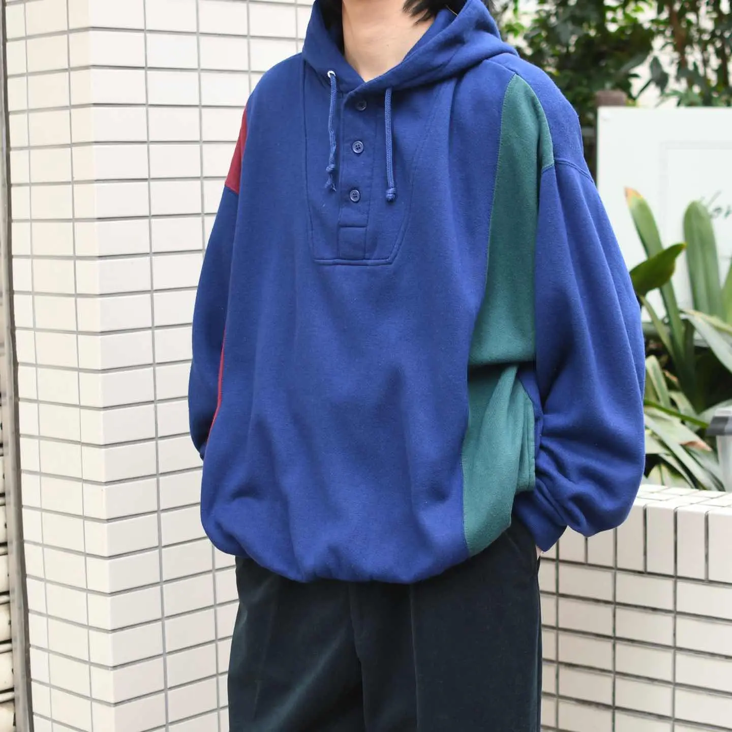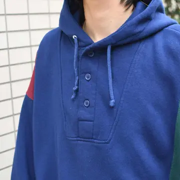 SIZE:XL 着丈74.5cm 肩幅66cm 身幅70cm 袖丈67cm fabric/acrylic 着用画像 173cm/58kg スウェットにありがちな、ガシッとした 質感ではなく、ふわっとした質感が特徴的な アクリル素材のヘンリーネックフーディ。 首元のボタンはアクセントになるだけでなく、 開けてシャツとのレイヤードなんかにも◎ 深みのあるカラー3色を用いたデザインで、 シンプル過ぎず派手過ぎず、絶妙な塩梅で スタイリングに落とし込めるのではないでしょうか。 カジュアル過ぎないフーディとしておすすめです。 ※撮影状況により、実物と多少色が異なる場合が ございます。 ※古着を取り扱っているため、気づかない汚れや ほつれ等がある場合がございます。 ※サイズは着用感で選んでおり、 表記サイズは説明欄の最初に記載しております。 オーバーサイズ old vintage ヴィンテージ used 80's 90's アメリカ古着 ユーロ古着 POLO RALPH LAUREN Eddie Bauer OLD GAP LANDS' END ランズエンド LLBean エルエルビーン オールドギャップ エディーバウアー ラルフローレン ブルックスブラザーズ Brooks Brothers 紺色 などがお好きな方 #vintage #オーバーサイズ #old #used #90s #80s #古着 #ヴィンテージ #アメリカ古着 #ユーロ古着 #LLBean #エルエルビーン #EddieBauer #エディーバウアー #oldgap #オールドギャップ #LANDSEND #ランズエンド #NAUTICA #ノーティカ #ラルフローレン #POLORALPHLAUREN #ブルックスブラザーズ #BrooksBrothers #ヘンリーネック #フーディ #パーカー #デザインスウェット #スウェット