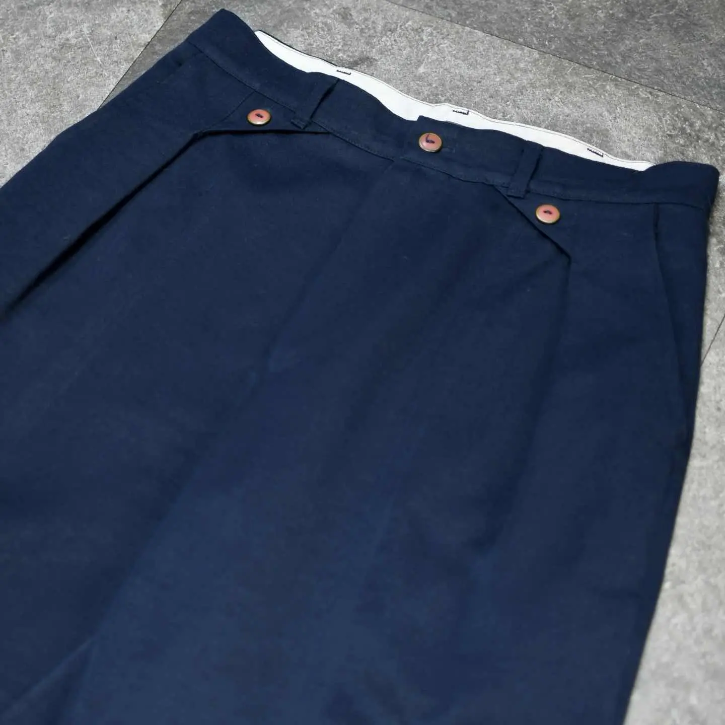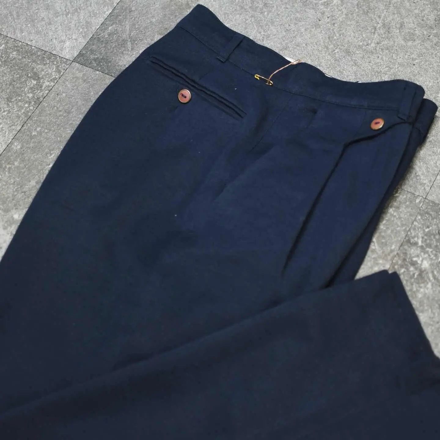 古着 デザイン レーヨン スラックス タックパンツ ネイビー 紺色