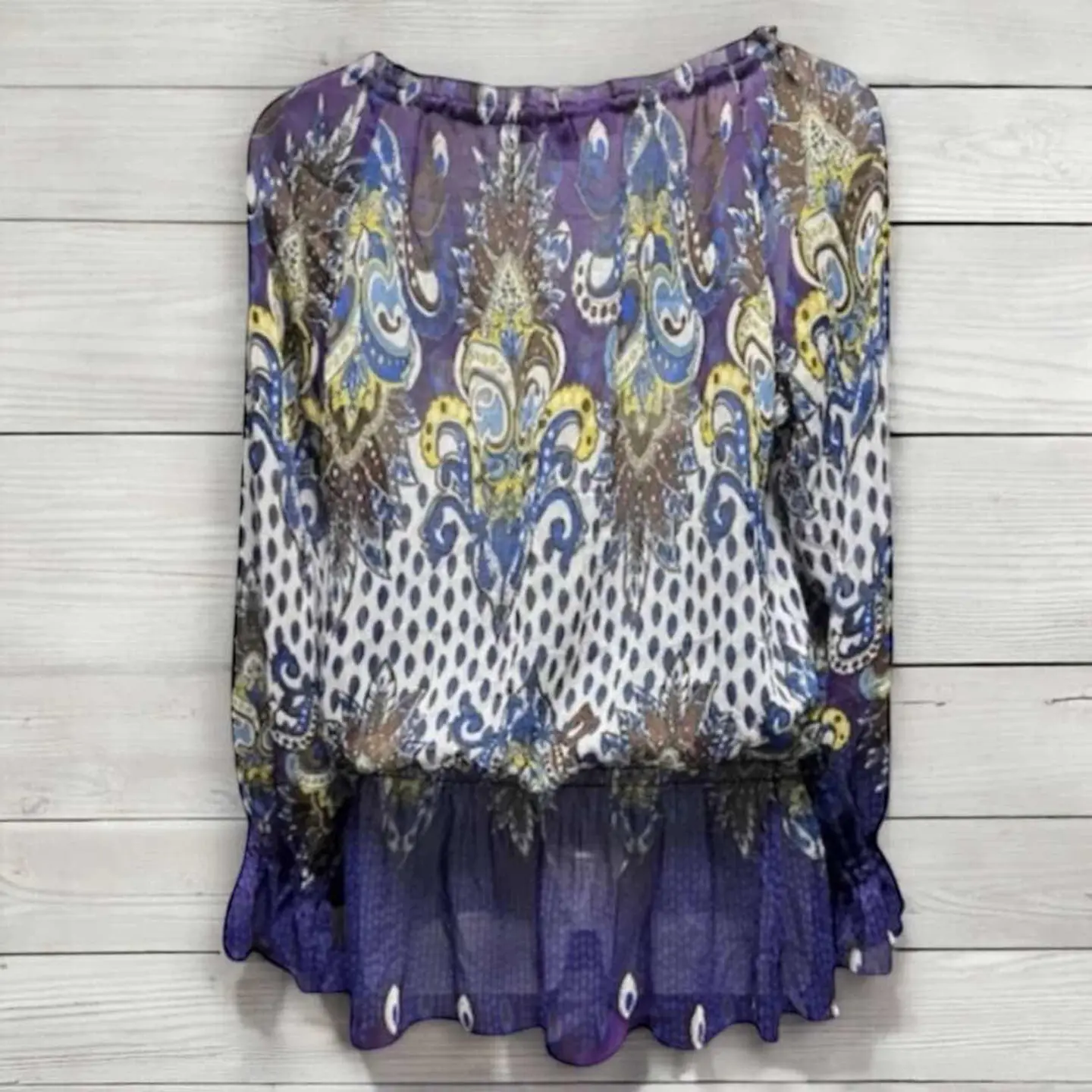 華やかなペイズリー×ドット柄が目を引く Mushka by Sienna Roseのシアーブラウス。 軽やかな素材感で コーデに抜け感と存在感をプラスしてくれる一枚です。 ✔︎ 個性的な総柄デザイン ✔︎ 軽やかなシアー素材 ✔︎ 一枚で主役になるアイテム 【ブランド】 Mushka by Sienna Rose (シエナローズ) 【サイズ】 Size S 47cm 肩幅 46cm 身幅 59cm 袖丈 70cm 総丈 【素材】 100% ポリエステル 【製造国 】中国 【管理番号】221 【コンディション】 使用感はあるが目立つダメージのない商品 ※画像の商品は光の照射や角度により実物と色味が異なる場合がございます。 #インポートファッション #総柄ブラウス #シアーブラウス #ペイズリー柄 #個性派コーデ #大人コーデ #古着女子 #一点もの #春コーデ #夏コーデ