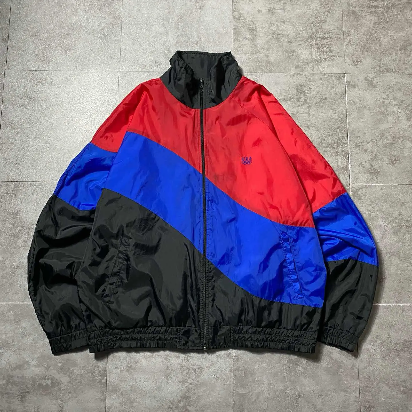 90s USAオリンピック五輪 刺繍ロゴ クレイジーパターン ナイロンジャケット