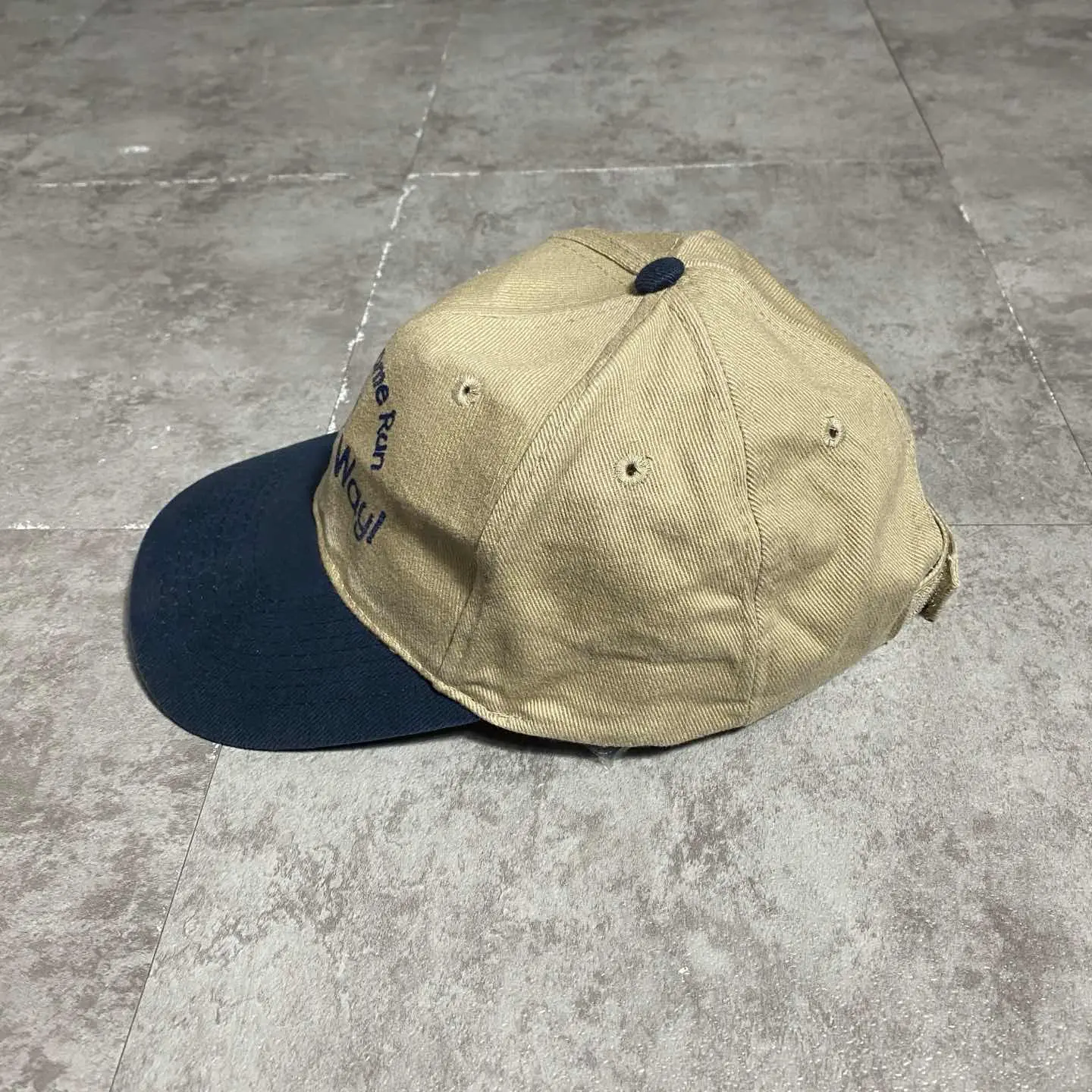 COBRA CARS カレッジテイスト プリント ベージュ×ネイビー キャップ