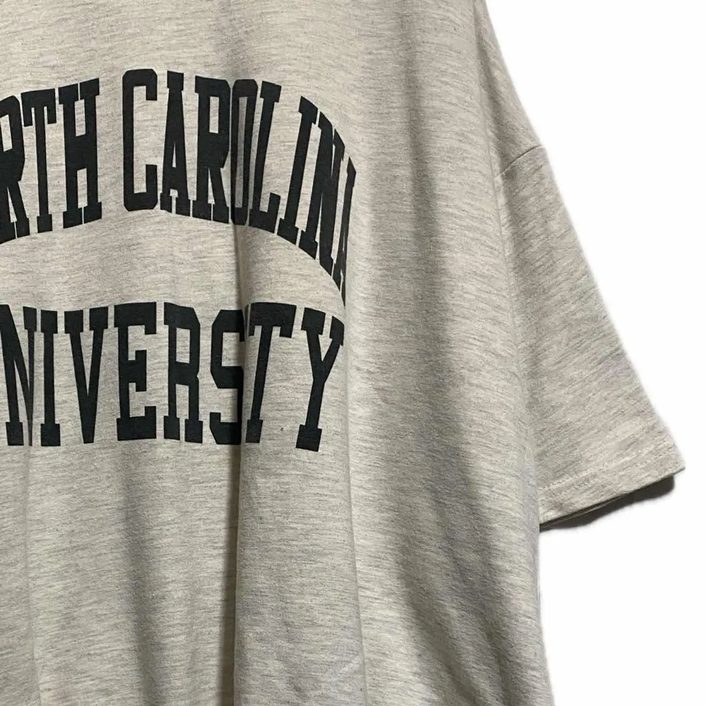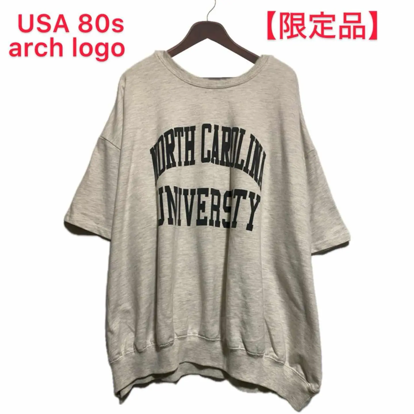 80s 限定品 USA カレッジ霜降65/35 アーチロゴ sweatT F 古着愛好家に大人気の霜降りタイプの独特のボックスシルエットにドロップショルダーが大人っぽく決まるのに、脱力感が出るヴィンテージのスウェットTシャツです。 フロントに入ったのが確実に、アメリカのノースカロライナ州の大学の限定モデルっていうのがわかりますので、希少価値も高いです。80年代は自分たちの大学に誇りを持った学生たちがオリジナルを作っていた時代のやつだと思われます。 そんなことは置いといて着まわし抜群なので、1枚でもメインさらにスウェットTシャツなので、年中活躍しますし、デニムシャツをさらっと羽織ったり チェックシャツとかを羽織ってもかっこいいですし、コーディネートのようにインナーに少しロングカットソーを仕込むだけで 一気に大人になります。限定モデルを見せつけるさりげないおしゃれってのも楽しいですね。ぜひこの機会によろしくお願いします。かなりお手頃価格にしてますので迷わず即購入 お願いします。 ▷color◁ 霜降りライトナチュラルグレー ※ブラウザで異なる場合ありますがかなり実物には、近づけてます、 ▷size◁ 平置き片面採寸【㎝表記】 表記size F 着丈/70 身幅/72 肩幅/77BOXDS 袖丈 /40↓ DSは袖はハンガー採寸 ※多少の誤差は理解下さい 170/Mジャスト体型の私が着て、✔️参考に ジャスト オーバーサイズ ビックサイズ✔︎ boxDSなんで、 【素材】 65/35 C/P 霜降りnep 起毛無しsweat よって、シルエット、素材、アーチで80s確定、メテオレア 【状態】 よい、美品に属する 検品、洗濯、検品で、3回チェックして発送しますので、ご安心して、お買い求め下さい!!