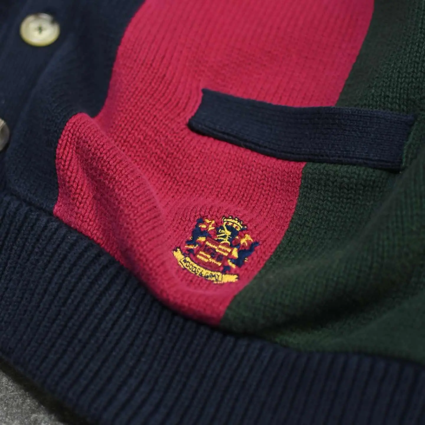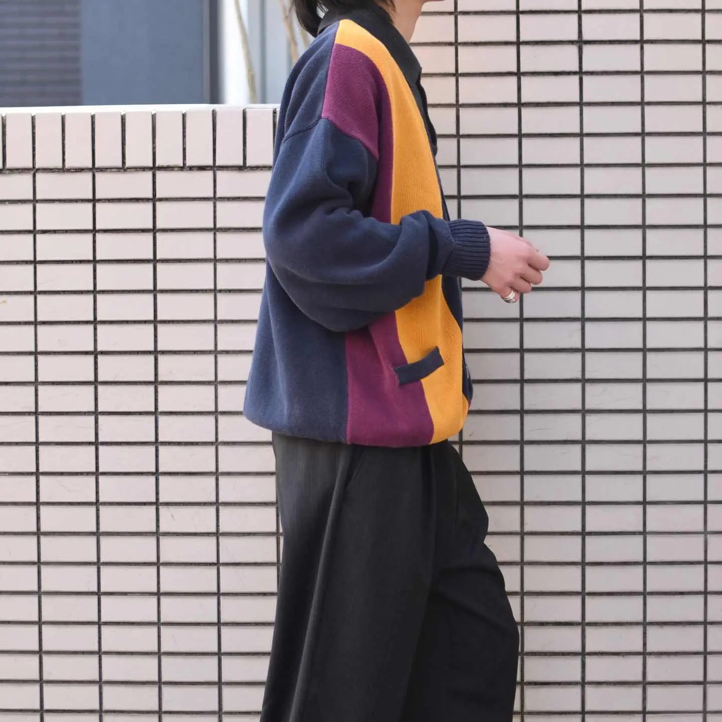 古着 切り替え デザイン コットン カーディガン ネイビー セーター