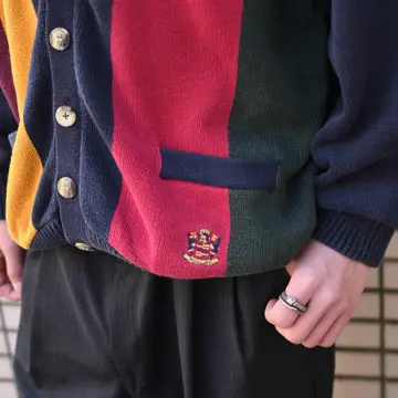 SIZE:XL 着丈68cm 肩幅66cm 身幅71cm 袖丈60cm fabric/cotton 着用画像 173cm/58kg "形の整ったカーディガン" 数あるカテゴリーの中でも、このカテゴリーになると正解が難しい気がしますし、数も減る気がします。 そんな中、納得出来たシルエットで持ち帰った1着。 収まりのいい丈感にゆったりした身幅、 そしてコットンだからこそ、肌に刺激が無く Tシャツの上からも着れるのが◎ デザインとして盛り込まれた5色、 どれかの色を拾って、コーデに纏まりを 持たせてみてはどうでしょう。 ※フロントに小さな色抜けあり。 ※撮影状況により、実物と多少色が異なる場合が ございます。 ※古着を取り扱っているため、気づかない汚れや ほつれ等がある場合がございます。 ※サイズは着用感で選んでおり、 表記サイズは説明欄の最初に記載しております。 古着 オーバーサイズ old vintage ヴィンテージ used 80's 90's アメリカ古着 ユーロ古着 POLO RALPH LAUREN Eddie Bauer OLD GAP LANDS' END ランズエンド LLBean エルエルビーン オールドギャップ エディーバウアー ラルフローレン ブルックスブラザーズ Brooks Brothers 紺色 ニット黄色 イエローグリーン 緑 赤 レッド バーガンディ などがお好きな方 #vintage #old #used #90s #80s #古着 #ヴィンテージ #アメリカ古着 #ユーロ古着 #LLBean #エルエルビーン #EddieBauer #エディーバウアー #oldgap #オールドギャップ #LANDSEND #ランズエンド #NAUTICA #ノーティカ #ラルフローレン #POLORALPHLAUREN #BrooksBrothers #カーディガン #セーター #デザインカーディガン #ニット