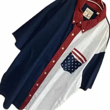 90s redhead 極上品、プレミア【限定品】星条旗 ビックシャツ F 100年以上の歴史を持つ、 ハンティングブランドが、 90s【いや、カジュアルださんと、ガチすぎっしょ?時代変わってるっしょ?】で、出した、古着好き必見、なんなら、コレクター必見、星条旗を、すべてのボディで、表現したプレミアヴィンテージプレミア限定モデルです。 詳しい方は説明いらないと思いますが、ここに至るまでレッドヘッドはかなり試行錯誤したのか、これ以外の星条旗モデルを探したらわかります、ポケットだけとか、正直半端なのが、多かったんです、だめだ、こんなんじゃ、だったんでしょーね、 ボディ全部クレイジーに、マルチに、星条旗に、してやれ、で、出した最終力作なんです、これ、だから、materialも、上質、作り、デザイン最強です。 で、ラスト希少価値しかない一品、理由、こんだけ、上質につくったら、、、、? 何が、企業考えます? 【コストパネェ、少量生産で おわろ!】です、はいそれが、お目にかかれて、しかもゲット出来るって、ラッキーですね、 完璧アッパーラインです、こちら、しかも。プレミア、ぜひあなたのワードローブに取り入れてください。 コーディネートはそんなアメリカのアメリカンフラッグをイメージした、個性的なシャツをヨーロピアントラッドスタイルで決めると言う。ちょっと面白いコーデです。ぜひ参考にしてくださいね。このコーデは、マジ、ガンガン勢いでてきてるんで、今のうち、極めて損は、ないです^_^ 【カラー】 写真通り ▷size◁ 平置き片面採寸【㎝表記】 表記size XL表記だが、アメリカ発祥ブランドFは、あります、 着丈/85 身幅/65 肩幅/60DS 袖丈 /40↓ DSは袖はハンガー採寸 ※多少の誤差は理解下さい 170/Mジャスト体型の私が着て、✔️参考に ジャスト オーバーサイズ ビックサイズ✔︎ 【素材】 コットン 【状態】 新品同様極上美品 検品、洗濯、検品で、3回チェックして発送しますので、ご安心して、お買い求め下さい!!