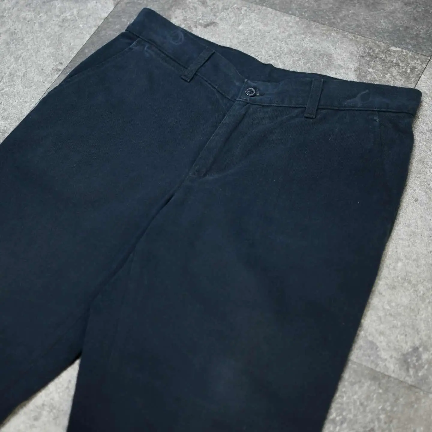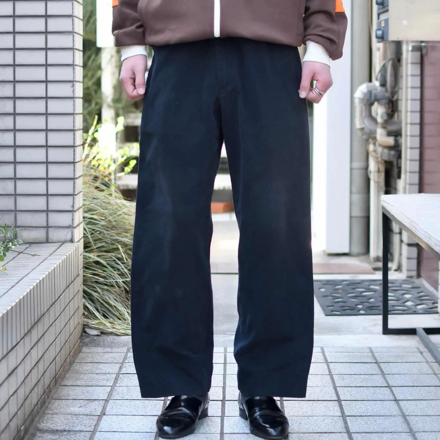 SIZE:50 ウエスト88cm 総丈96cm 股下70cm わたり36cm 裾幅23.5cm fabric/cotton made in italy 着用画像 173cm/58kg 1950年代にアメリカのデニム文化の影響を受け、 イタリアで誕生したブランド”Wampum” しっとりとした肉厚な生地感で、ストレスを感じない穿き心地に惹かれた一本です。 また黒で雑に穿けるパンツを探すと、意外にも 骨が折れますし選択肢が限られる気がします。 ワイドかつカジュアルに穿ける黒チノ。 手元に置くと、よりその使い勝手の良さを 感じるのではないでしょうか。 個人的にも手元にあるからこそ提案したい カテゴリーです。 ※裾上げ等のレングス直しにつきましては、 購入前に、必ずご連絡お願い致します。 ※撮影状況により、実物と多少色が異なる 場合がございます。 ※古着を取り扱っているため、気づかない汚れや ほつれがある場合がございます。 ※サイズは着用感で選んでおり、 表記サイズは説明欄の最初に記載しております。 old vintage ヴィンテージ used 80's 90's アメリカ古着 ユーロ古着 POLO RALPH LAUREN Eddie Bauer OLD GAP LANDS' END ランズエンド LLBean エルエルビーン オールドギャップ エディーバウアー ラルフローレン ブルックスブラザーズ Brooks Brothers ワークパンツ などがお好きな方 #vintage #old #used #90s #80s #古着 #ヴィンテージ #LLBean #EddieBauer #エディーバウアー #oldgap #オールドギャップ #LANDSEND #ランズエンド #NAUTICA #ラルフローレン #POLORALPHLAUREN #ブルックスブラザーズ #BrooksBrothers #チノパン #ワークパンツ #ワイドパンツ