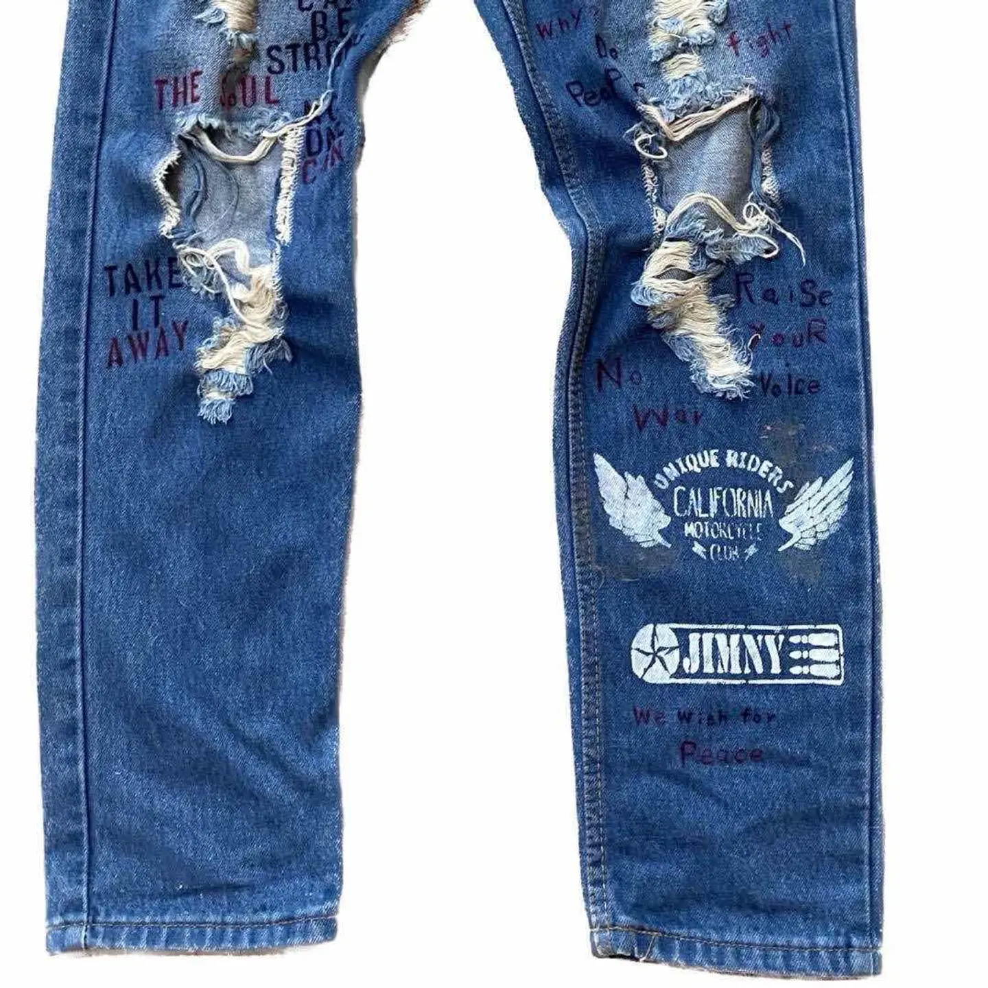 70s リメイク neo grunge crust ボトム UK 32インチ C&J一言でいったら、リーバイスとかより、希少、本数量産しないんで、 ロブTOP 18ロックGzipの70sの、vintage フルカスタム。 ニルバーナ、カートコバーンの影響で、ずっと人気のgrungeですが?実はcrustコアといわれる、HCジャンルまたは、UK mixにも。人気なんです。 で、あたりでて、デニムとしては、かなり、価値あんな、、、リメイクしたら、半端なくカッコよくなるな、やるか!で、やりました、メッセージ手書きで、mix originalインク作りかいて、丁寧に、ホツレ止めやりながら、クラッシュ加工しました、手作業です、一本ずつ、糸抜いてく技法 【やっすいのや、技術ない方のは、やすりですね、 既製品の安物は、グラインダーです、だから。バリってある日破れますよね?】 なんなら。洗濯一回で、バリっといきますよ、それでよいなら、そちら買うといいっすよ、絶対後悔しますよ】 私は、そんな。お客様が悲しむ商品は、つくりません、 買って良かった提供したいんで、 【因みにメッセージは、ランダムに見えますが、戦争すんなよ、自己中な、権力者】ってのを、歌ったバンドの歌詞いれてます。 コーデ、バンドT チェックビックシャツハーフイン、ブーツ、UK.要素まぜた、 【ネオグランジといいます】 参考にして下さい、 【カラー】 写真通り 大人気の濃厚に価値上がるあたり系迷わずゲットして、沢山着用して、育てて下さい、 ▷size◁ 平置き片面採寸【㎝表記】 表記size32インチくらい?? 【※ウエストのみ、メジャーで一周採寸】 ウエスト84まで、ベルトループあるんで対応 股上27 股下71 腿渡り幅23 裾幅17美しく決まるシルエット モデル170㎝ 私が着用してちょいゆとり、私30インチがジャストなんで、 ▷material◁ デニム70vintage激レアC&J使用しました、 【Seasonal feeling】 春 夏 秋 冬 ▷condition◁ かなりカッコ良く仕上げました^_^最強です ※入念にチェックは、しておりますが、vintage/usedの特性ご理解下さい #グランジ #カート・コバーン #グランジデニム #パンクス #クリームソーダ #ドライBones