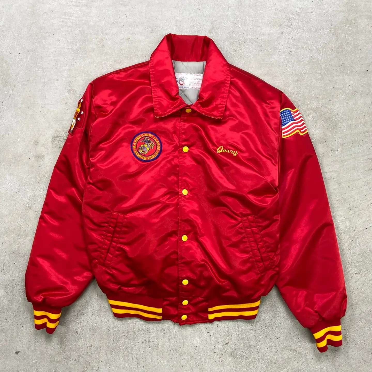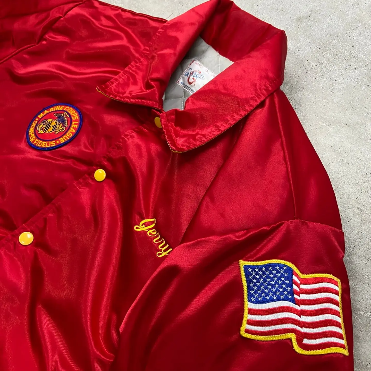 ■90年代 USA製 MARINE CORPS LEAGUE MCL 襟付き スタジャン メンズL相当 古着 90s ヴィンテージ VINTAGE アメカジ キルティングライナー リブボーダー アメリカ海兵隊 ワッペン付き 赤色【P2603】【ナイロンジャケット】/レッド 【ブランド】GORGA athletic wear 【サイズ】表記不明(実寸メンズL相当) ※計測値をご確認ください。 着丈…61 身幅…61 肩幅…49.5 袖丈…64 【生産国】USA製 【素材】不明(おそらくナイロンかと思われます) 【状態】目立ったダメージや汚れはなく、 比較的綺麗で、まだまだ愛用していただけます。 画像にてご確認ください。 【j260319114】 ※古着は洗濯、検品などのケアを行っております。(新品・デッドストックは洗濯していません。) ※モニターの発色により実物と異なる場合がございます。予めご了承ください。 ※ 海外直輸入USED品になります。