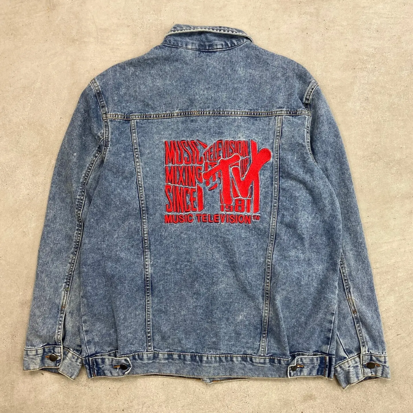 ■MTV ロゴ刺繍 トラッカーデニムジャケット メンズXL 古着 アメカジ MUSIC TELEVISION 青色【P2603】【デニムジャケット】/ブルー 【ブランド】MTV 【サイズ】表記 XL ※計測値をご確認ください。 着丈…72 身幅…61 肩幅…51 袖丈…68 【生産国】バングラデシュ製 【素材】コットン100% 【状態】使用感による多少の色落ちなどありますが、 目立ったダメージや汚れはなく、まだまだ愛用していただけます。 画像にてご確認ください。 【j260319113】 ※古着は洗濯、検品などのケアを行っております。(新品・デッドストックは洗濯していません。) ※モニターの発色により実物と異なる場合がございます。予めご了承ください。 ※ 海外直輸入USED品になります。
