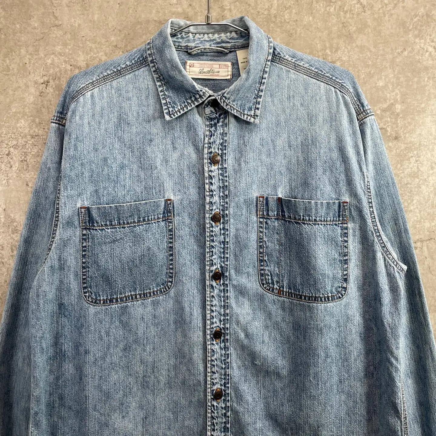 ■00年代 Levi's リーバイス 長袖 デニムシャツ メンズL 古着 00s VINTAGE ヴィンテージ アメカジ【P2603】【長袖シャツ】/ブルー 【ブランド】Levi's リーバイス 【サイズ】 表記 L ※計測値をご確認ください。 着丈…79 身幅…61.5 肩幅…52.5 袖丈…63.5 【生産国】バングラデシュ製 【素材】コットン100% 【状態】フロント裾付近や袖に薄汚れ、バックや首元の内側に生地擦れなどがございますが、 まだまだ長くご愛用していただけます。 画像にてご確認ください。 【j260317001】 ※古着は洗濯、検品などのケアを行っております。(新品・デッドストックは洗濯していません。) ※モニターの発色により実物と異なる場合がございます。予めご了承ください。 ※ 海外直輸入USED品になります。