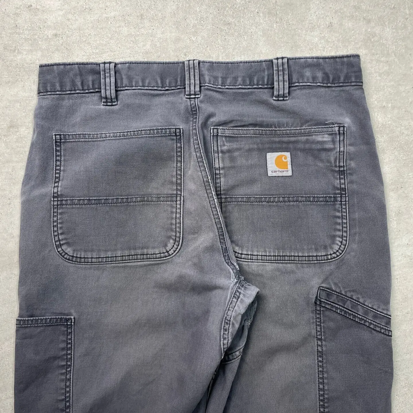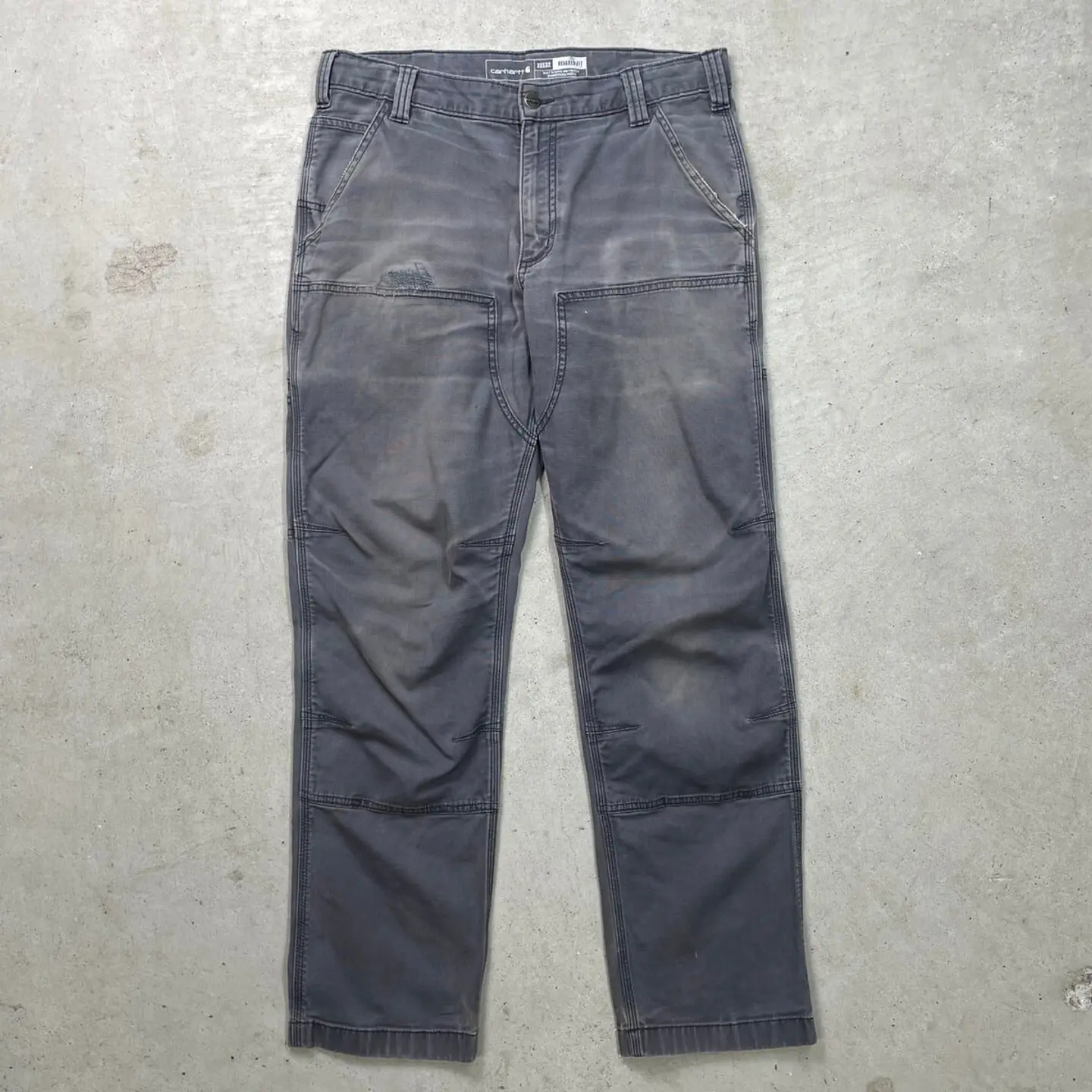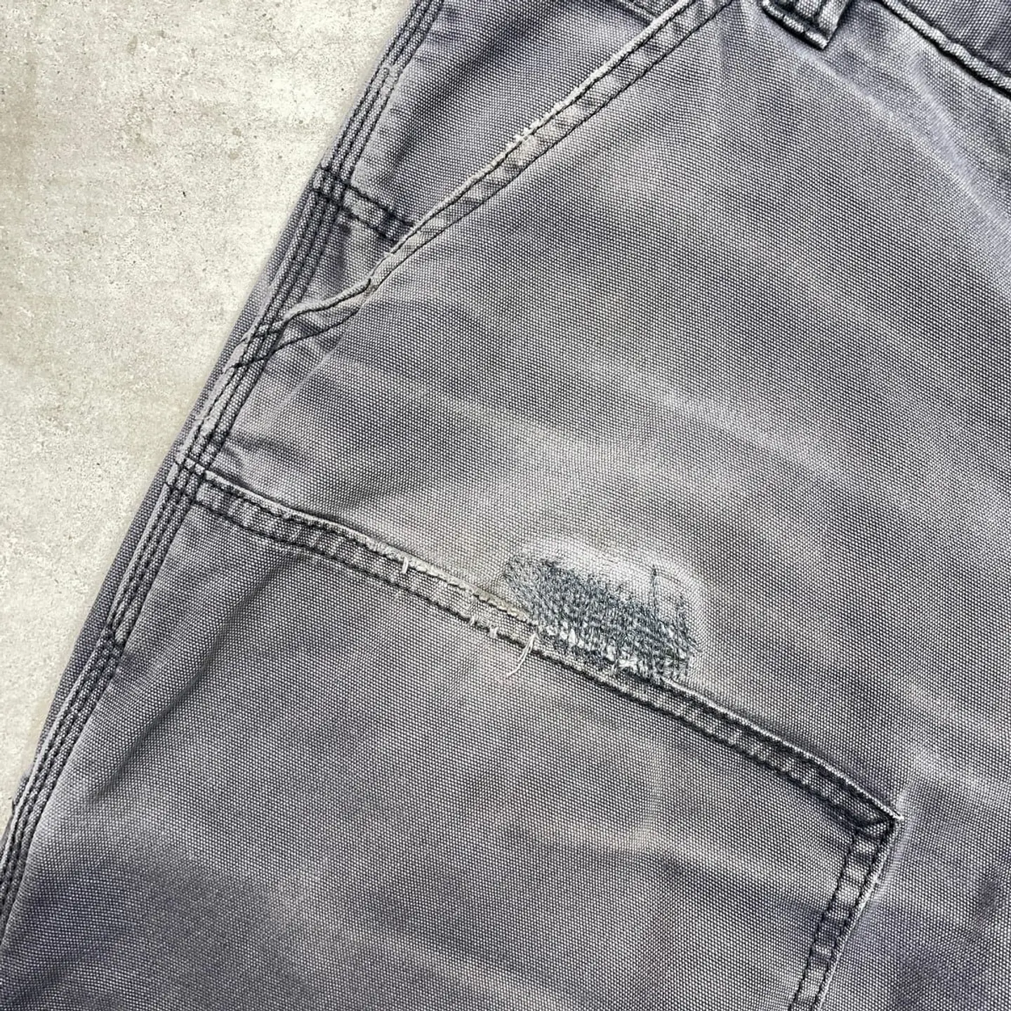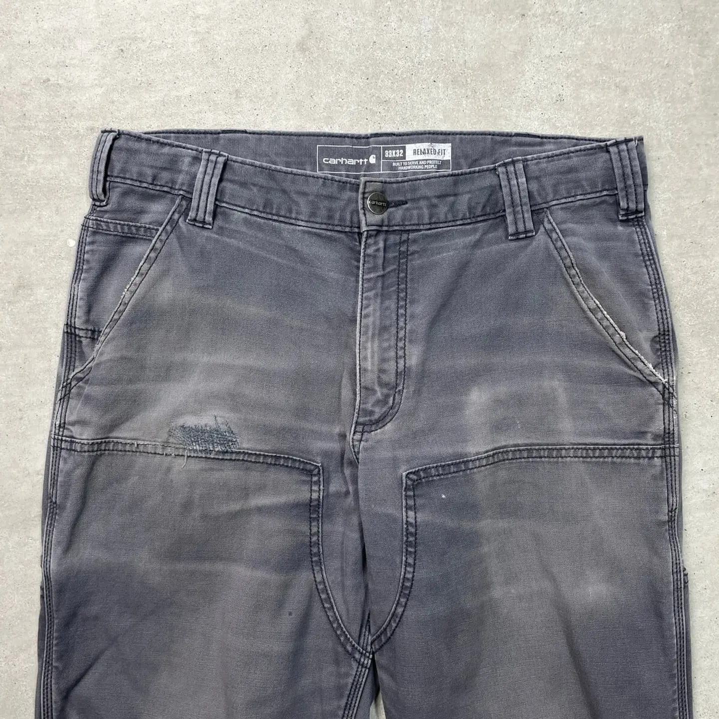 ■Carhartt カーハート ダブルニー ダック ワークパンツ メンズW33 古着 アメカジ RELAXED FIT フェードグレー【ワークパンツ】/グレー 【ブランド】Carhartt カーハート 【サイズ】表記 33×32(実寸L30) ※計測値をご確認ください。 ウエスト(平置き×2)…85 ワタリ幅…33 股上…28 股下…77.5 裾幅…20 【生産国】バングラデシュ製 【素材】コットン98%、スパンデックス2% 【状態】全体的にフェードがかっております。 フロント上部や股付近にリペア跡があります。 バックサイド裾付近に小さなほつれがあります。 画像にてご確認ください。 【h260110117】 ※古着は洗濯、検品などのケアを行っております。(新品・デッドストックは洗濯していません。) ※モニターの発色により実物と異なる場合がございます。予めご了承ください。 ※ 海外直輸入USED品になります。