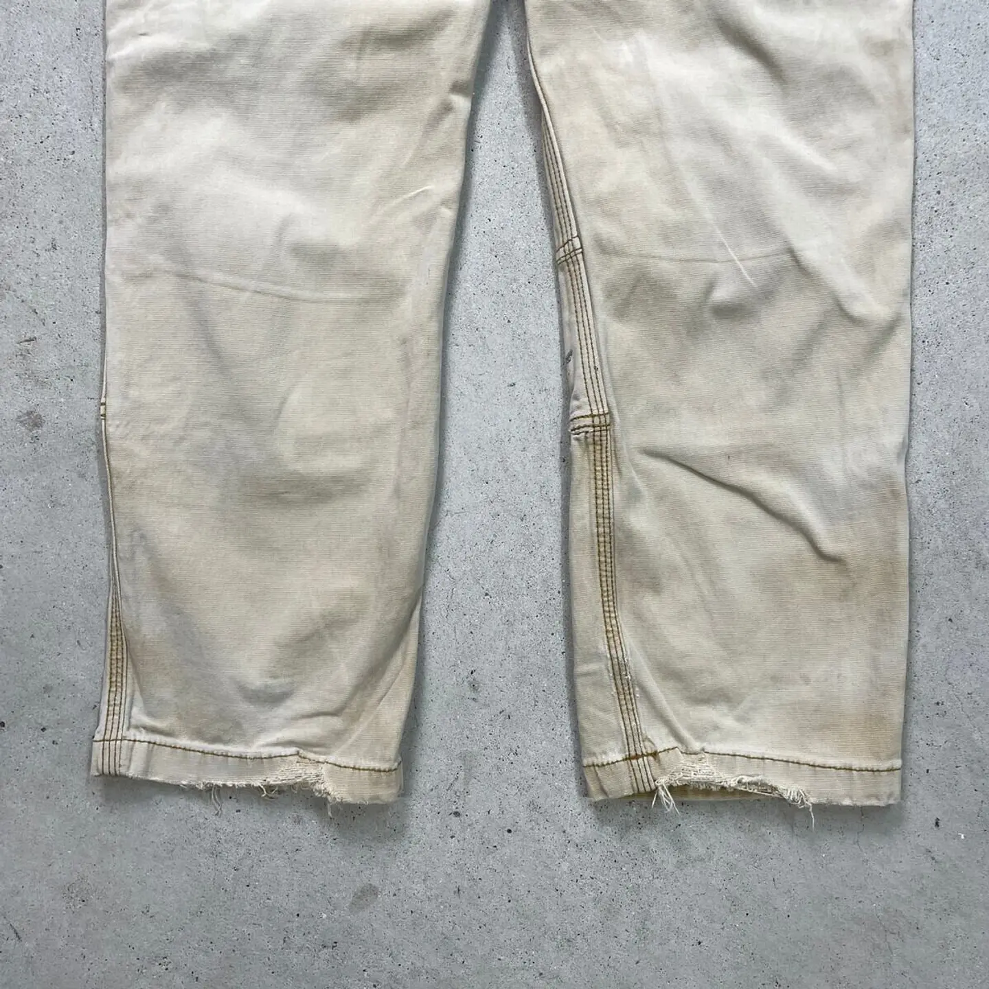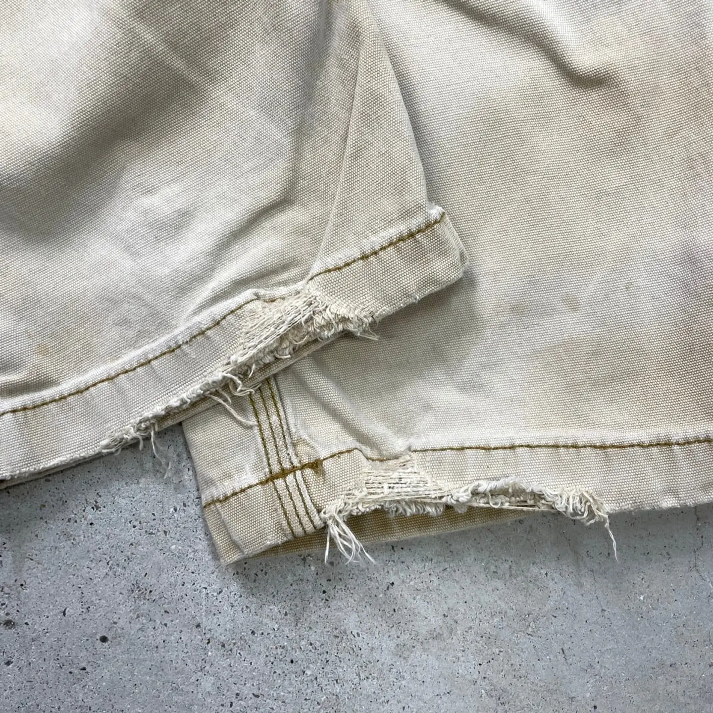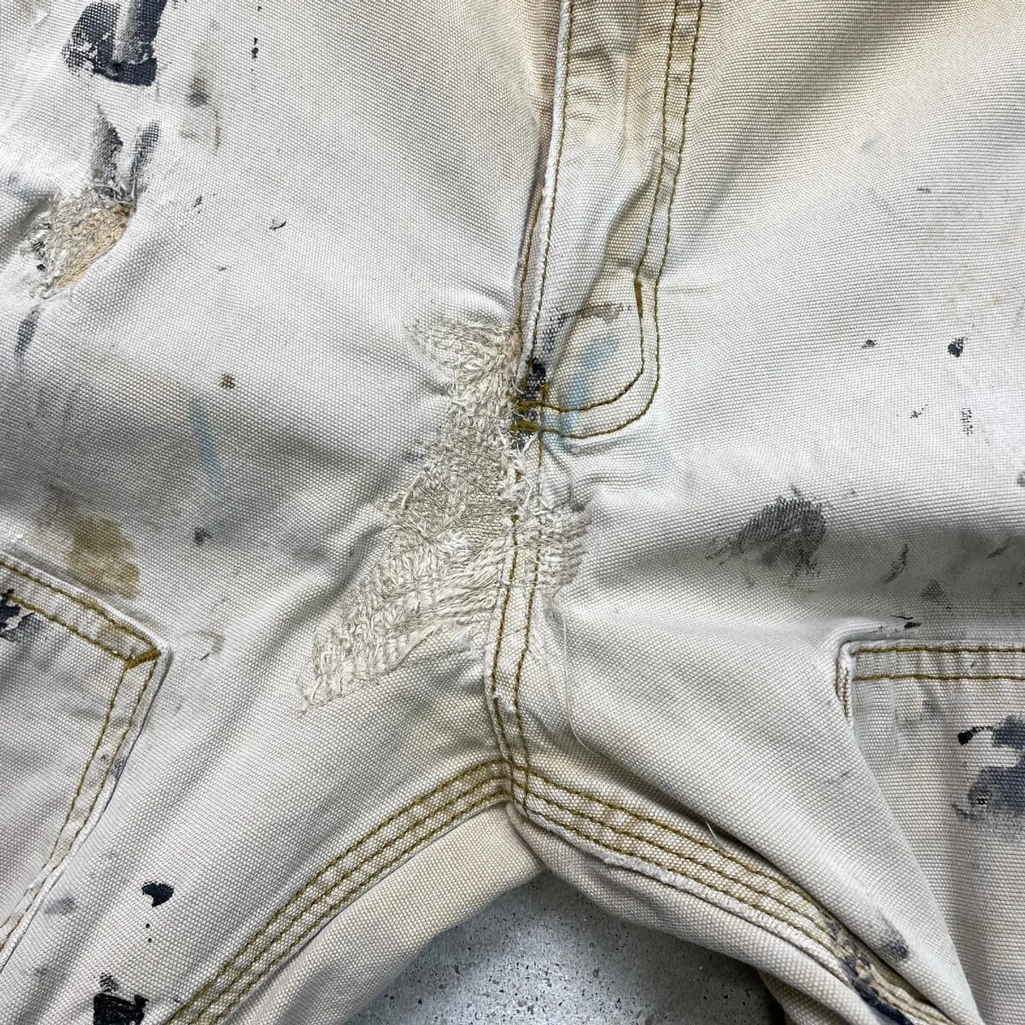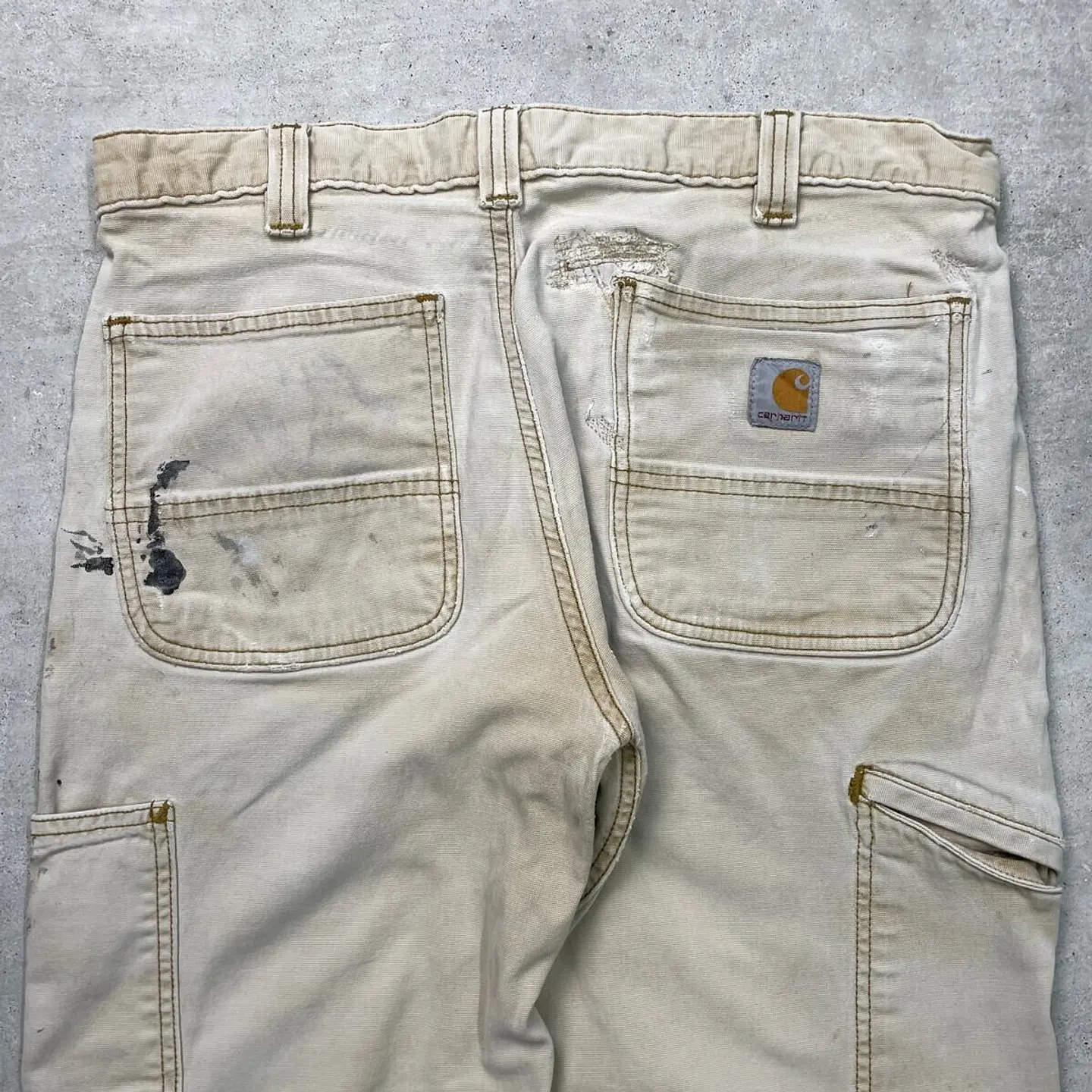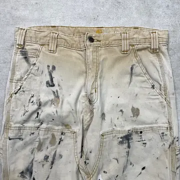 ■Carhartt カーハート ダブルニー ダック ワークパンツ ペンキ飛び メンズW33 古着 アメカジ RELAXED FIT フェードベージュ【ワークパンツ】/ベージュ ◎生地の薄いダック地になります。 【ブランド】Carhartt カーハート 【サイズ】表記 33×30(実寸L29) ※計測値をご確認ください。 ウエスト(平置き×2)…84 ワタリ幅…32 股上…27.5 股下…73.5 裾幅…19 【生産国】ニカラグア製 【素材】コットン98%、スパンデックス2% 【状態】全体的にペンキ飛び等の汚れがございます。 所々に使用感によるほつれや股付近や膝にリペア跡があります。 画像にてご確認ください。 【h260110113】 ※古着は洗濯、検品などのケアを行っております。(新品・デッドストックは洗濯していません。) ※モニターの発色により実物と異なる場合がございます。予めご了承ください。 ※ 海外直輸入USED品になります。