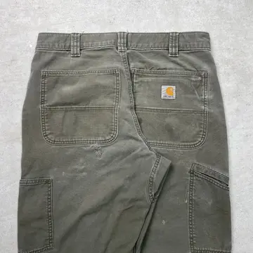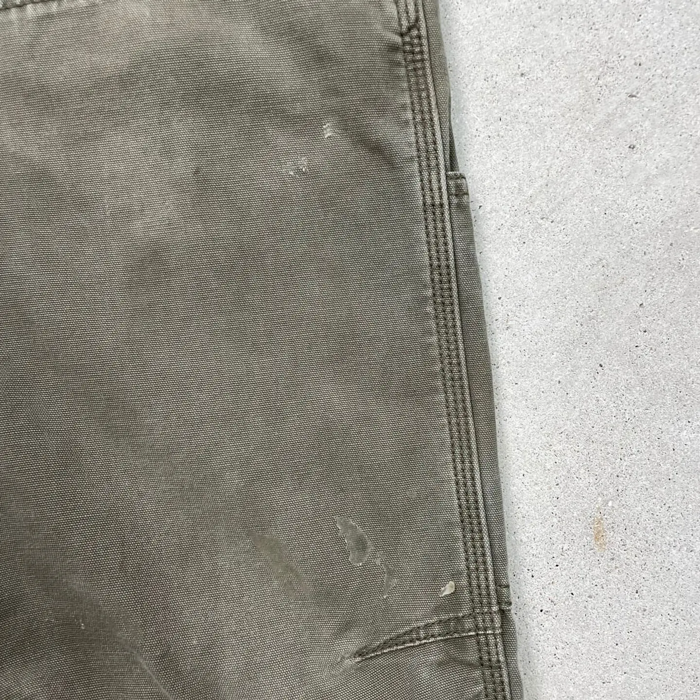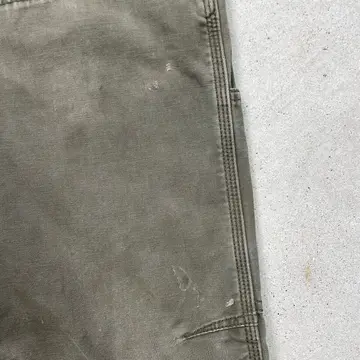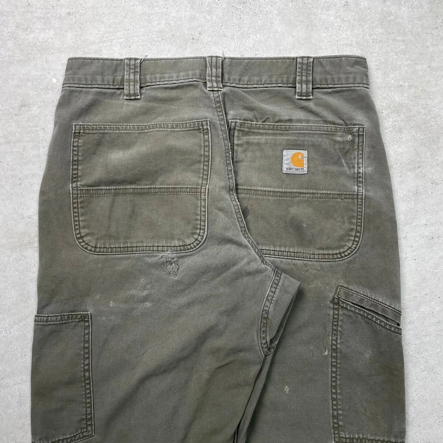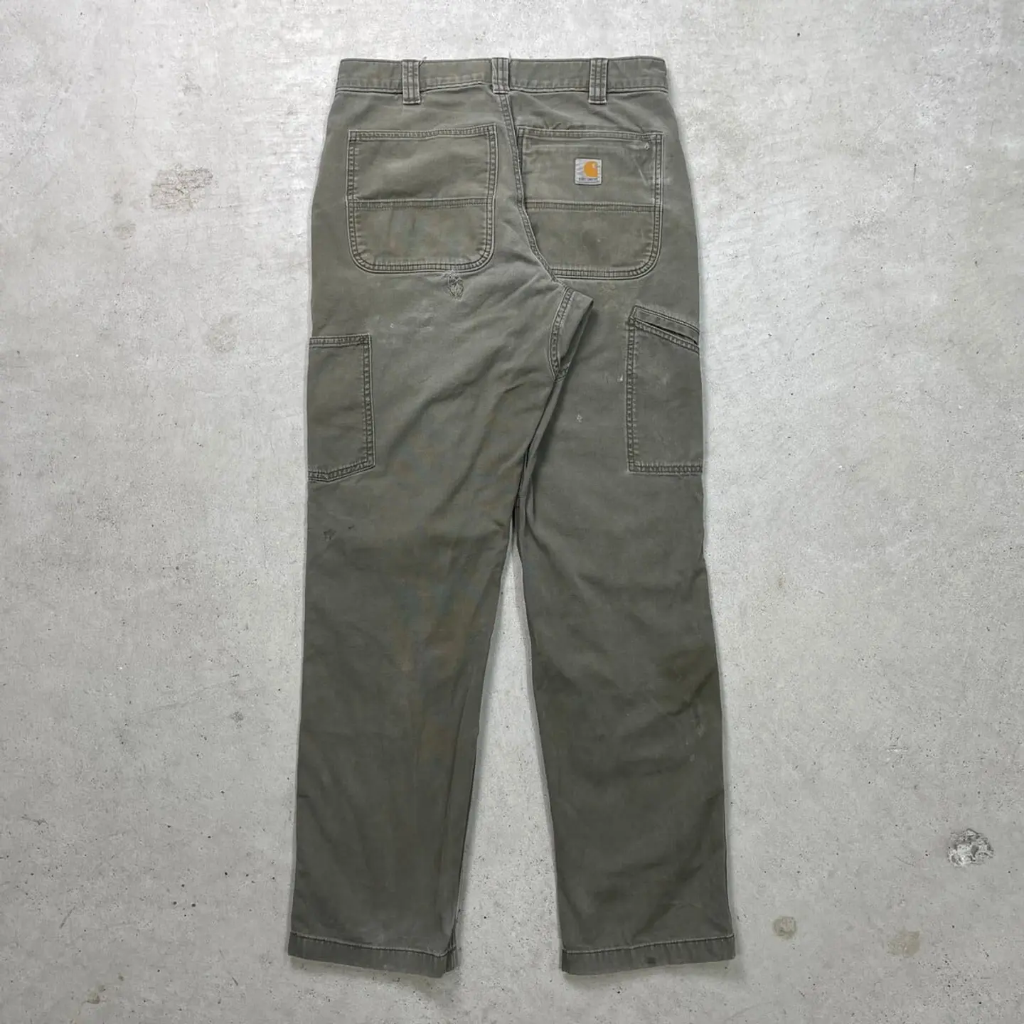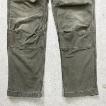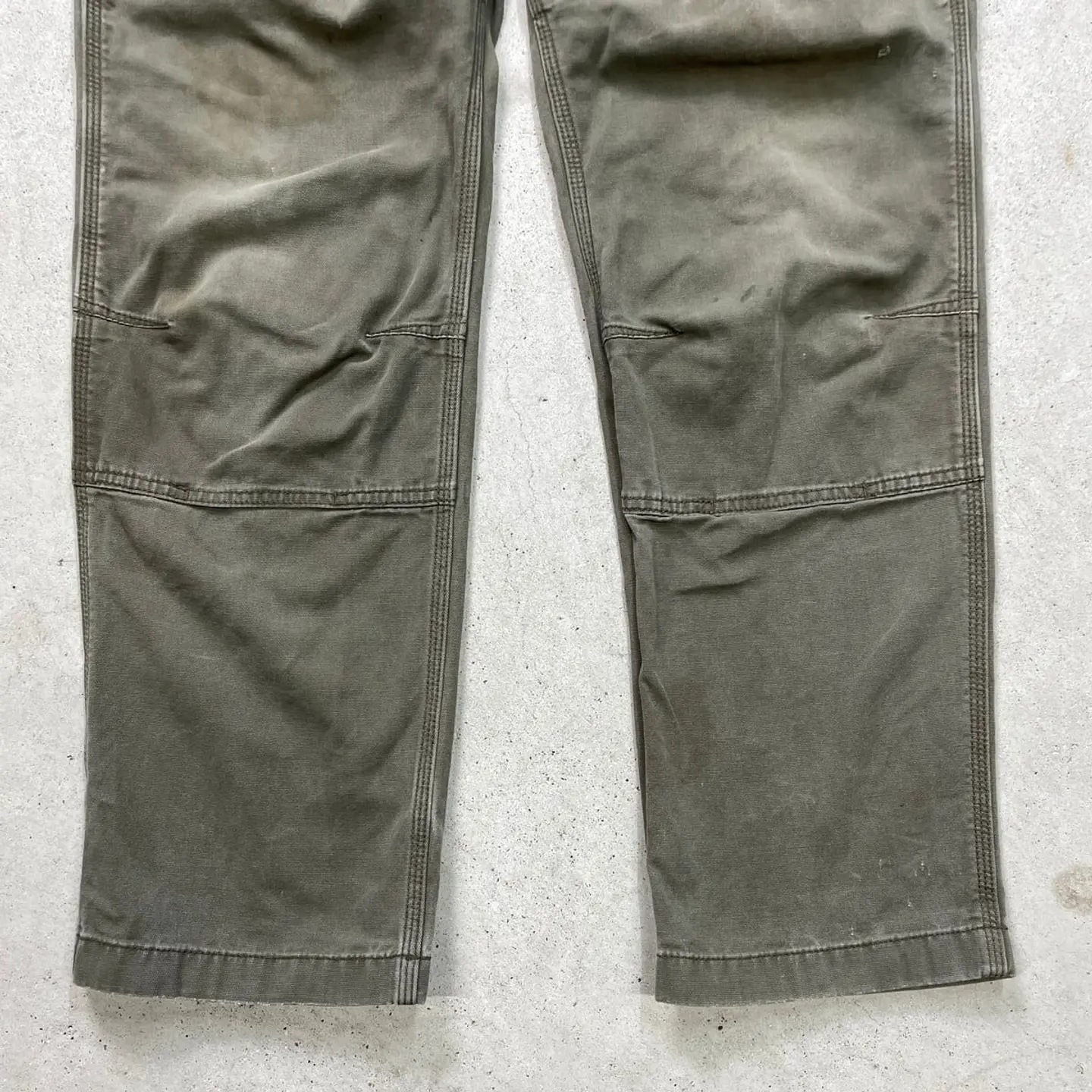 ■Carhartt カーハート ダブルニー ダック ワークパンツ メンズW31相当 古着 アメカジ RELAXED FIT フェードカーキグリーン【ワークパンツ】/カーキグリーン ◎生地の薄いダック地になります。 【ブランド】Carhartt カーハート 【サイズ】表記 32×34(実寸W31 L31) ※計測値をご確認ください。 ウエスト(平置き×2)…80 ワタリ幅…34.5 股上…27.5 股下…80.5 裾幅…20.5 【生産国】バングラデシュ製 【素材】コットン98%、スパンデックス2% 【状態】全体的に色あせやワーク感のある薄汚れがございます。 お尻ポケット付近に貫通はしていませんが、ダメージがあります。 画像にてご確認ください。 【h260110110】 ※古着は洗濯、検品などのケアを行っております。(新品・デッドストックは洗濯していません。) ※モニターの発色により実物と異なる場合がございます。予めご了承ください。 ※ 海外直輸入USED品になります。