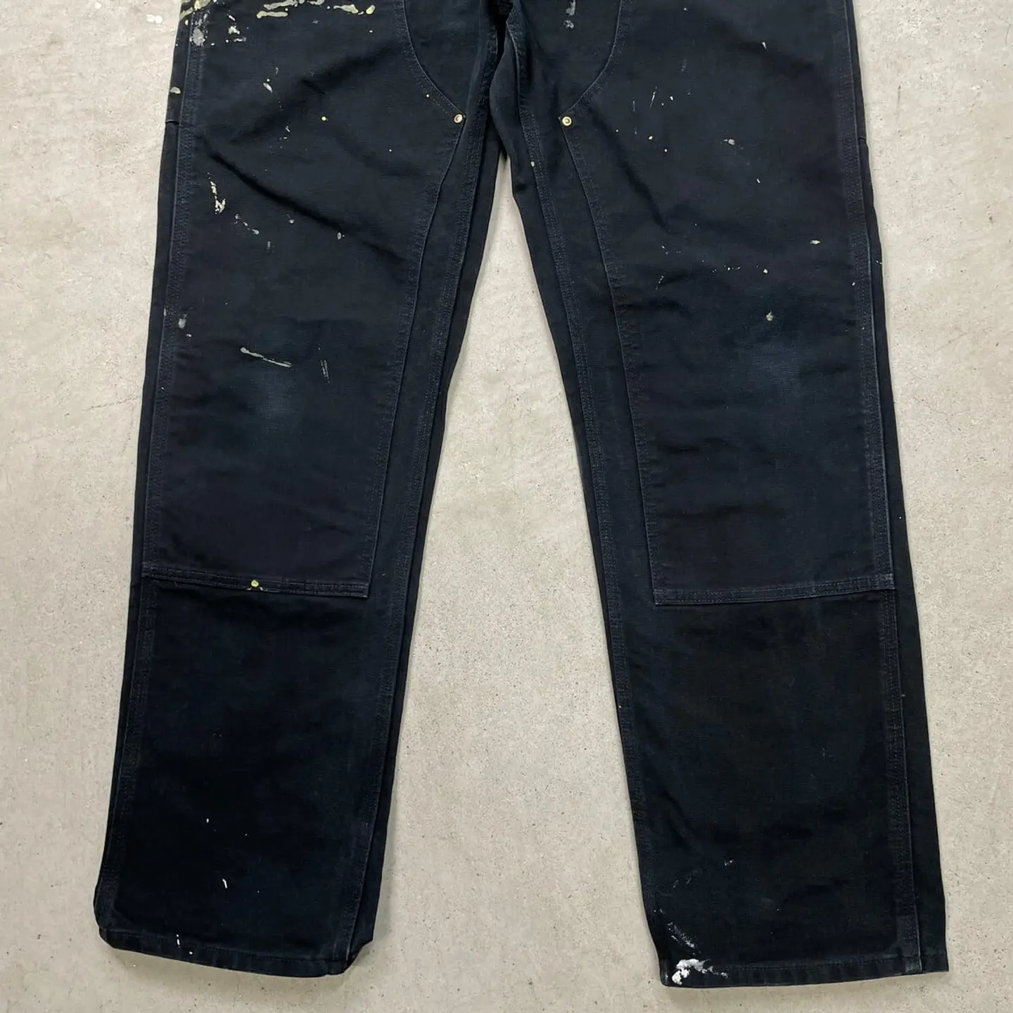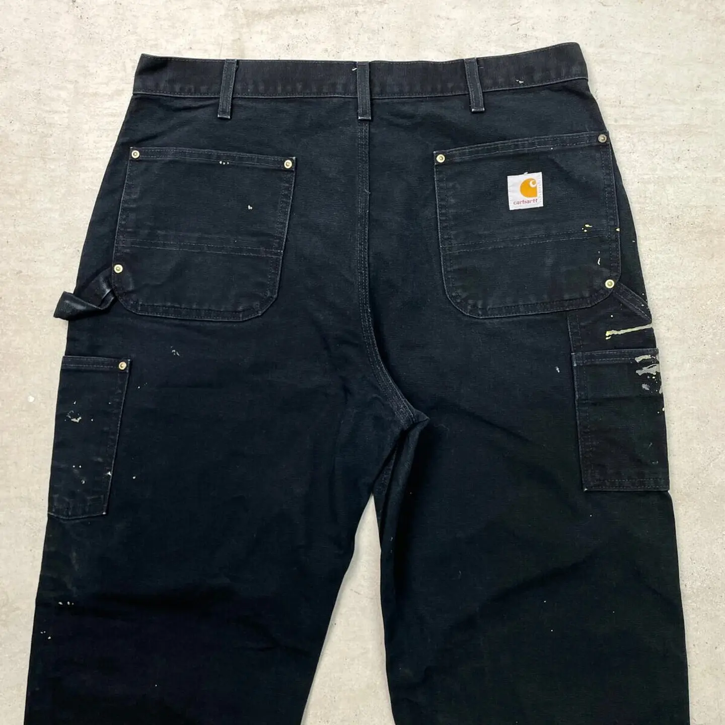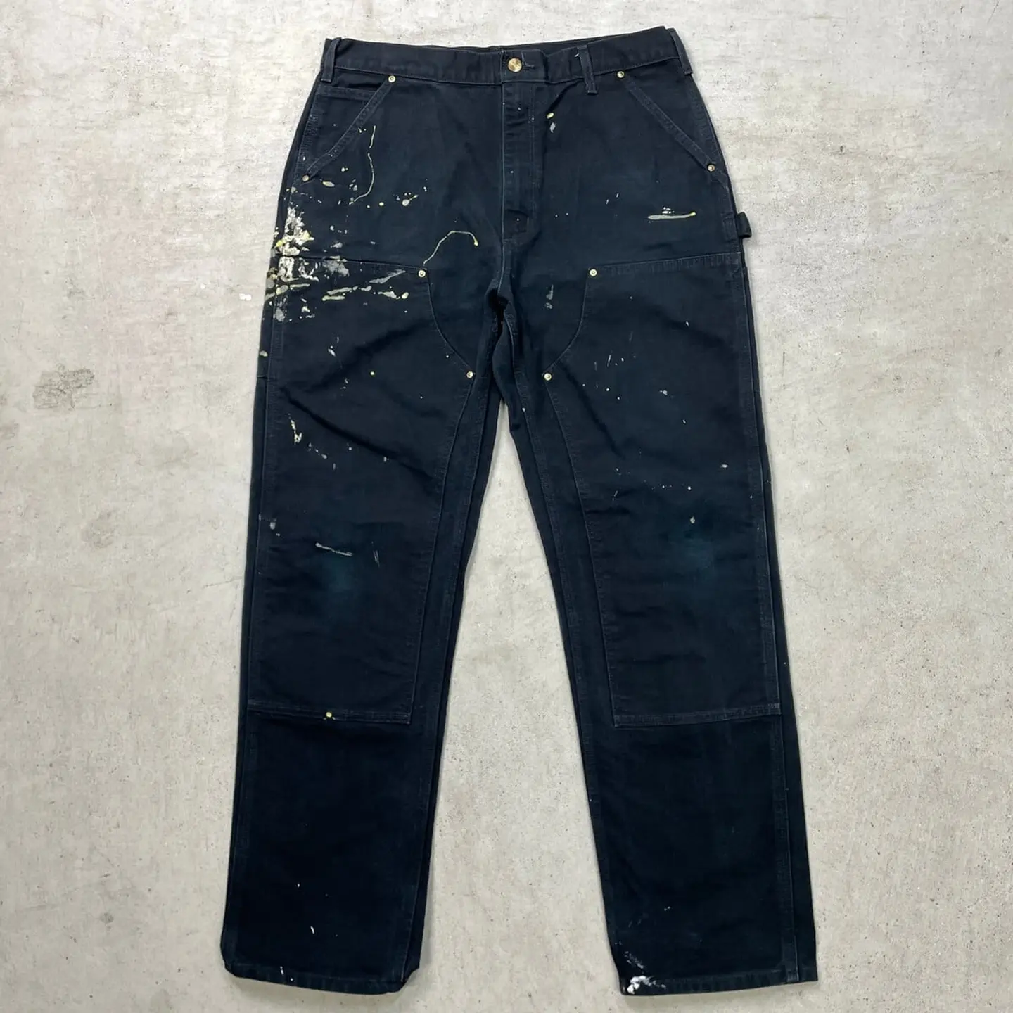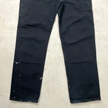 ■USA製 Carhartt カーハート ダブルニー ダック ペインターパンツ ペンキ飛び メンズW35相当 古着 アメカジ Loose Original Fit 黒色【ワークパンツ】/ブラック 【ブランド】Carhartt カーハート 【サイズ】表記 36×34(実寸W35 L33) ※計測値をご確認ください。 ウエスト(平置き×2)…89 ワタリ幅…37 股上…33.5 股下…83.5 裾幅…22.5 【生産国】USA製 【素材】コットン100% 【状態】全体的にペンキ飛びがございます。 膝や裾に擦れによる色あせがあります。 その他目立ったダメージはありません。 画像にてご確認ください。 【h260110102】 ※古着は洗濯、検品などのケアを行っております。(新品・デッドストックは洗濯していません。) ※モニターの発色により実物と異なる場合がございます。予めご了承ください。 ※ 海外直輸入USED品になります。