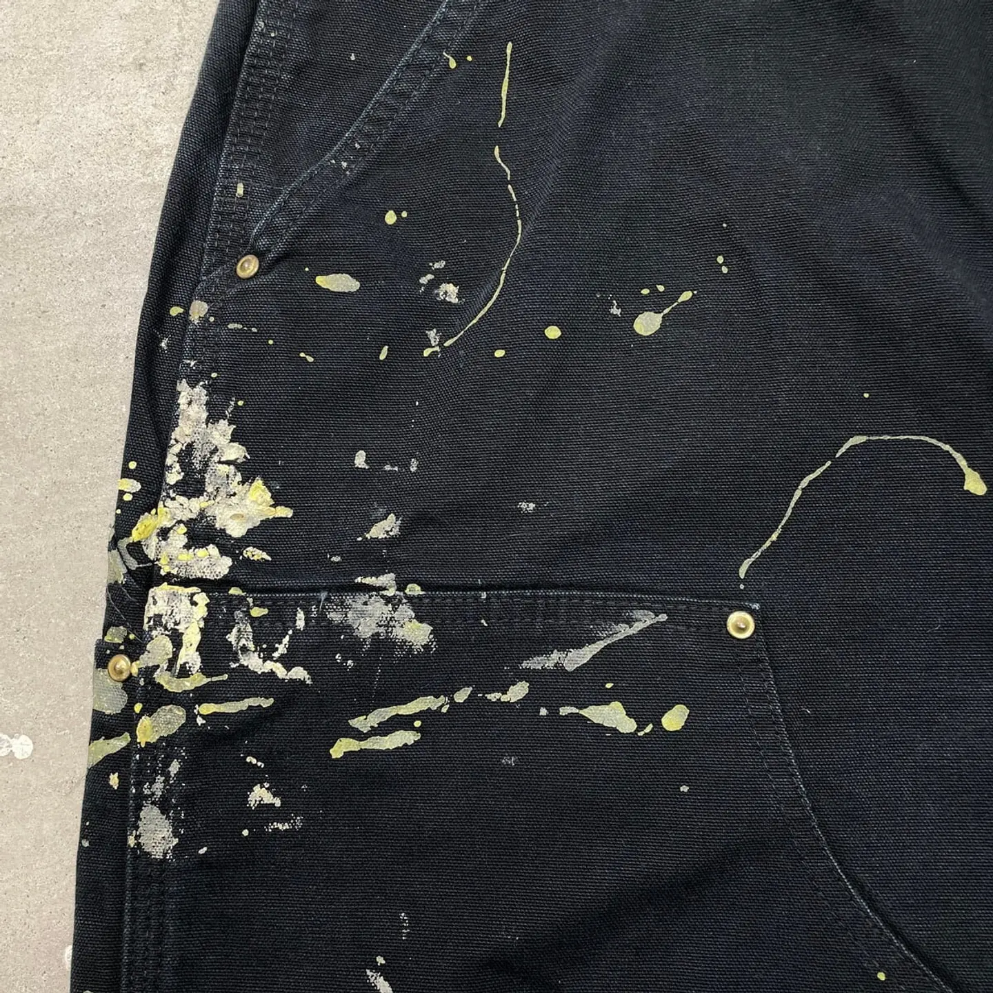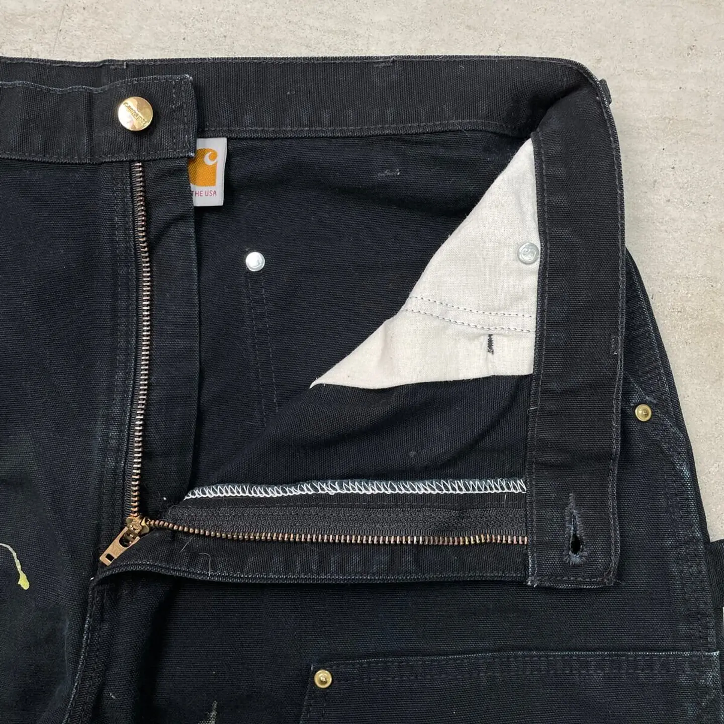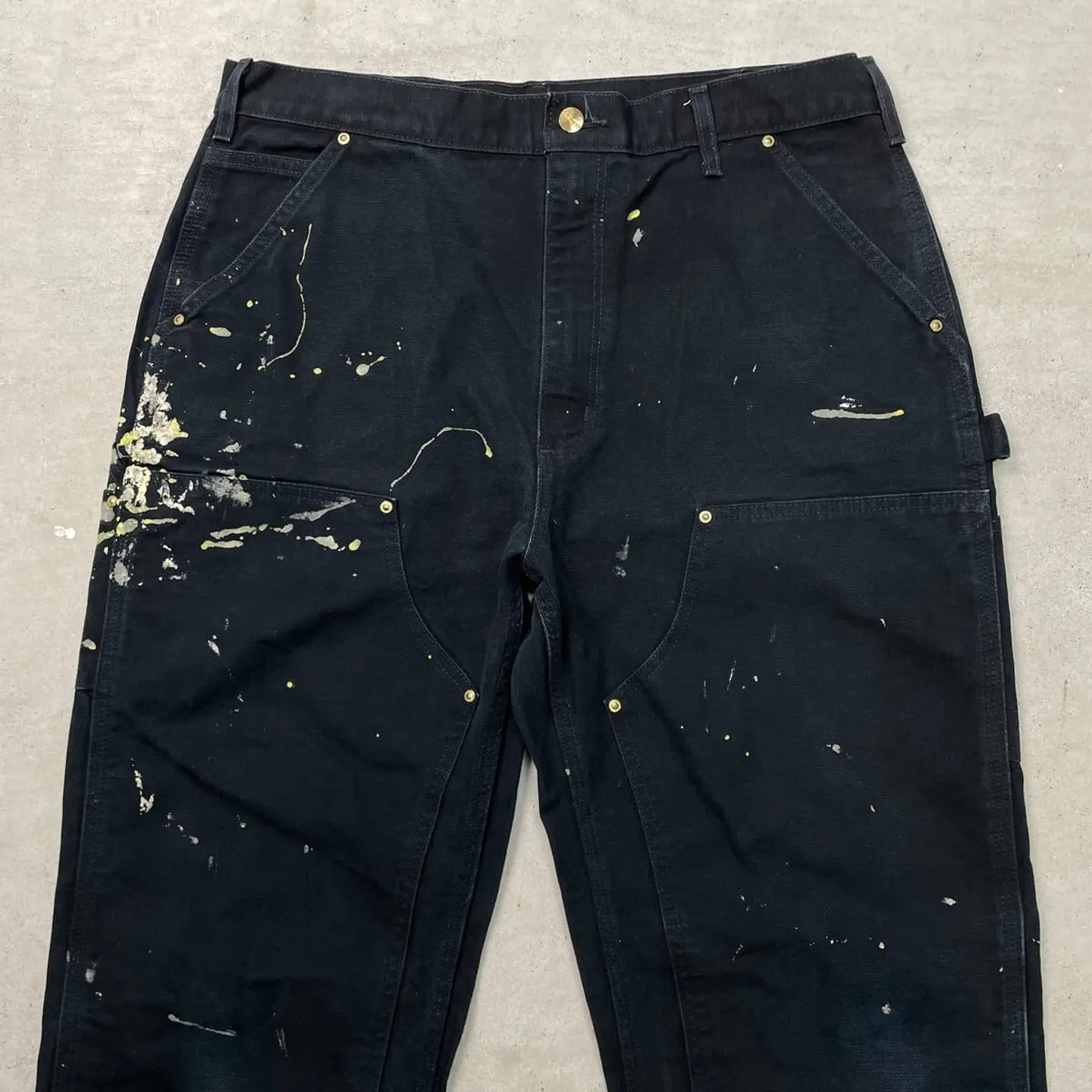 ■USA製 Carhartt カーハート ダブルニー ダック ペインターパンツ ペンキ飛び メンズW35相当 古着 アメカジ Loose Original Fit 黒色【ワークパンツ】/ブラック 【ブランド】Carhartt カーハート 【サイズ】表記 36×34(実寸W35 L33) ※計測値をご確認ください。 ウエスト(平置き×2)…89 ワタリ幅…37 股上…33.5 股下…83.5 裾幅…22.5 【生産国】USA製 【素材】コットン100% 【状態】全体的にペンキ飛びがございます。 膝や裾に擦れによる色あせがあります。 その他目立ったダメージはありません。 画像にてご確認ください。 【h260110102】 ※古着は洗濯、検品などのケアを行っております。(新品・デッドストックは洗濯していません。) ※モニターの発色により実物と異なる場合がございます。予めご了承ください。 ※ 海外直輸入USED品になります。