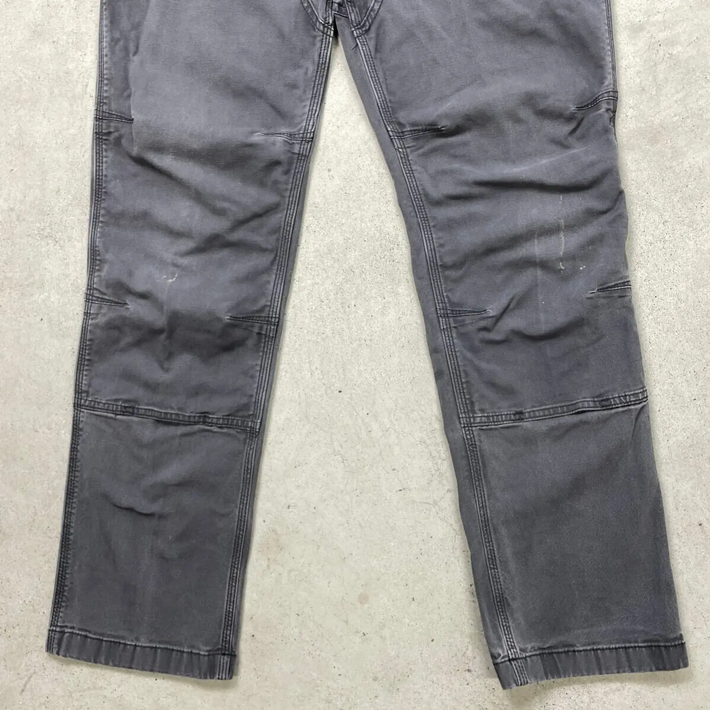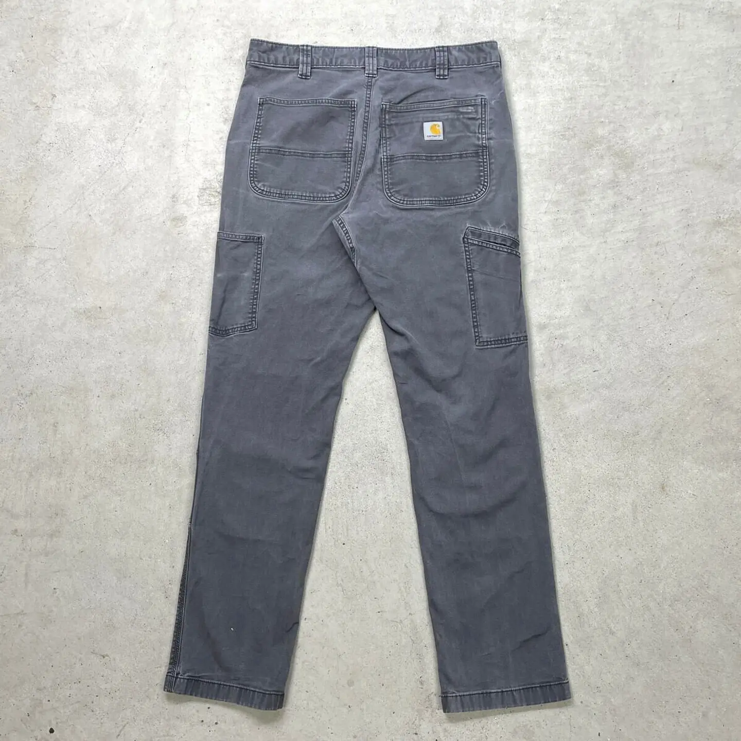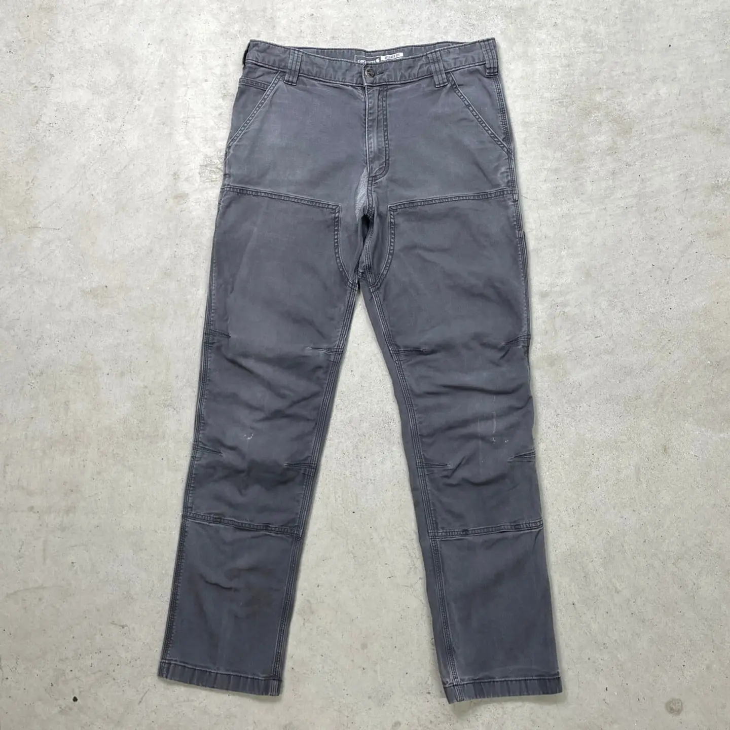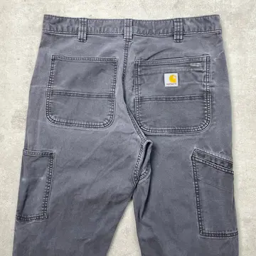 ■Carhartt カーハート ダブルニー ダック ペインターパンツ メンズW32相当 古着 アメカジ フェードグレー 墨黒【ワークパンツ】/グレー ◎生地の薄いダック地になります。 【ブランド】Carhartt カーハート 【サイズ】表記 33×34(実寸W32相当) ※計測値をご確認ください。 ウエスト(平置き×2)…82 ワタリ幅…30 股上…27.5 股下…80.5 裾幅…19 【生産国】バングラデシュ製 【素材】コットン98% エラスタン2% 【状態】股部分にリペア跡、両ひざ付近に汚れ等リアルなワークウェアならではな使用感のある雰囲気の良いコンディションです。 画像にてご確認ください。 【h260110010】 ※古着は洗濯、検品などのケアを行っております。(新品・デッドストックは洗濯していません。) ※モニターの発色により実物と異なる場合がございます。予めご了承ください。 ※ 海外直輸入USED品になります。