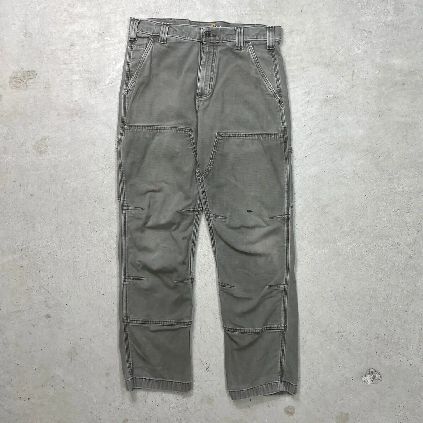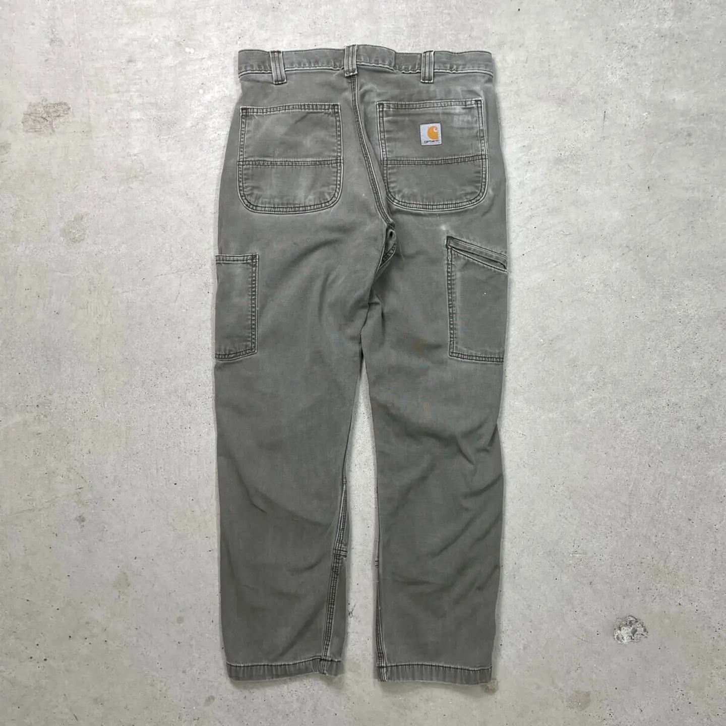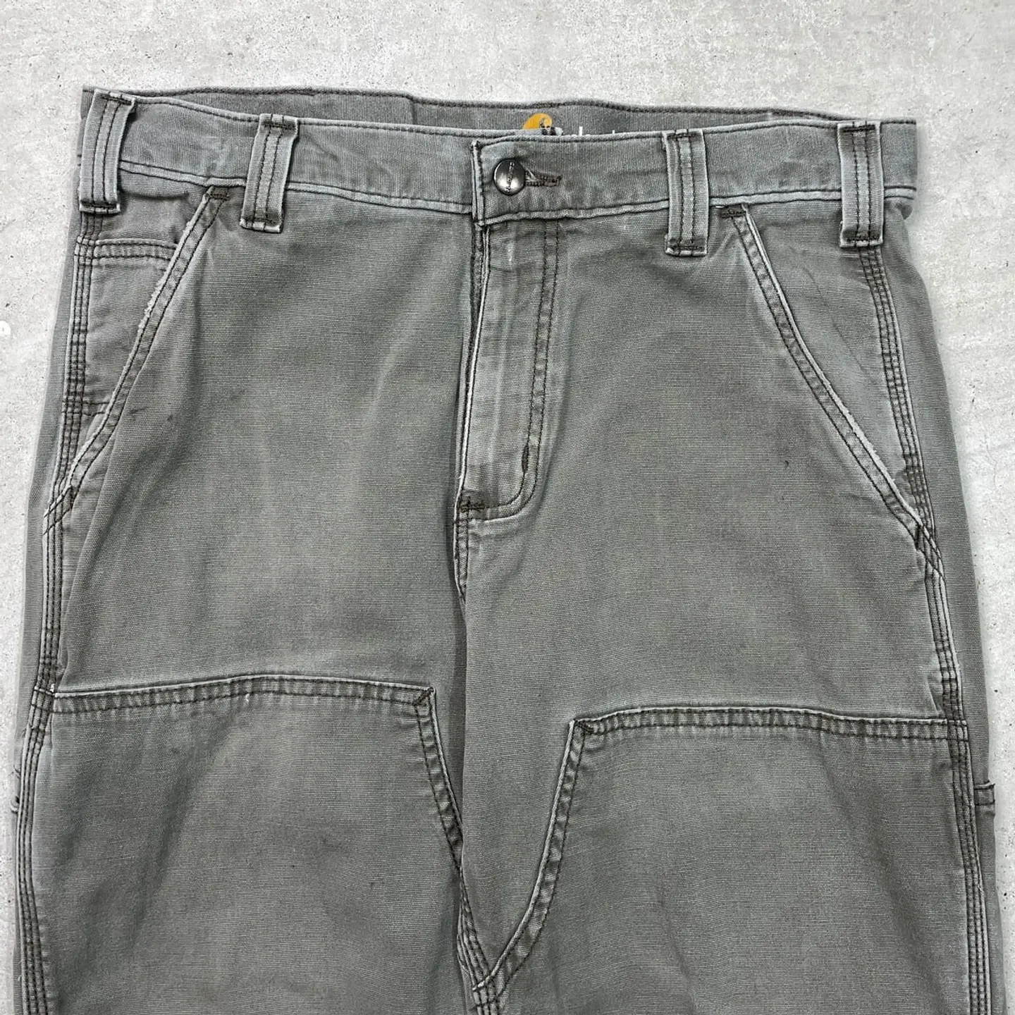 ■Carhartt カーハート ダブルニー ダック ペインターパンツ メンズW31相当 古着 アメカジ カーキ【ワークパンツ】/カーキグリーン ◎生地の薄いダック地になります。 【ブランド】Carhartt カーハート 【サイズ】表記 32×30(実寸W31相当) ※計測値をご確認ください。 ウエスト(平置き×2)…80 ワタリ幅…29 股上…27 股下…72 裾幅…19 【生産国】ニカラグア製 【素材】コットン98% スパンデックス2% 【状態】全体的にフェード、汚れ、擦り切れ等リアルなワークウェアならではな使用感のある雰囲気の良いコンディションです。 画像にてご確認ください。 【h260110003】 ※古着は洗濯、検品などのケアを行っております。(新品・デッドストックは洗濯していません。) ※モニターの発色により実物と異なる場合がございます。予めご了承ください。 ※ 海外直輸入USED品になります。