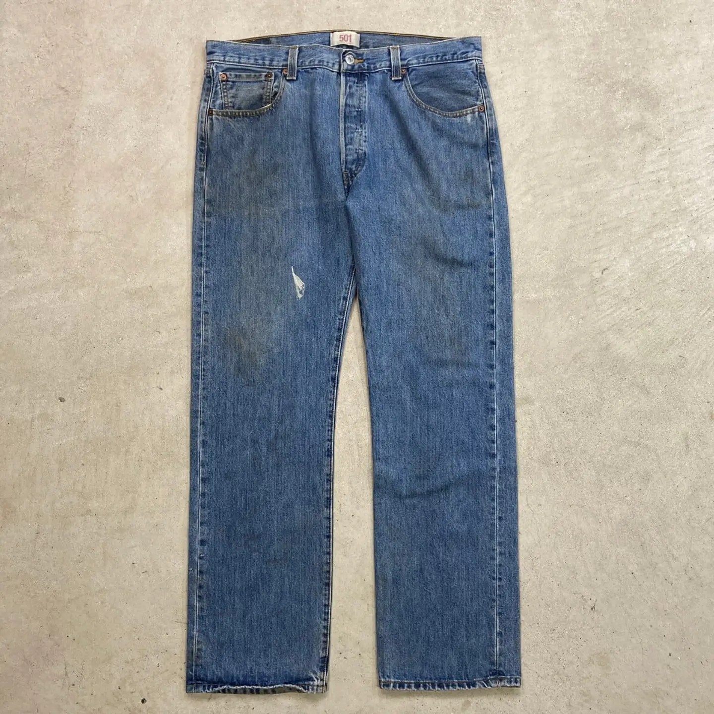■Levi's リーバイス 501 ストレート デニムパンツ メンズW36 古着 アメカジ ジーンズ 青色【デニムパンツ】/ブルー 【ブランド】Levi's リーバイス 【サイズ】表記 W36 L32 ※計測値をご確認ください。 ウエスト(平置き×2)…92 ワタリ幅…34.5 股上…29.5 股下…81 裾丈…22.5 【生産国】メキシコ製 【素材】コットン100% 【状態】フロントにワーク感のある汚れや一部ペンキ飛びがあります。 画像にてご確認ください。 【c260322108】 ※古着は洗濯、検品などのケアを行っております。(新品・デッドストックは洗濯していません。) ※モニターの発色により実物と異なる場合がございます。予めご了承ください。 ※ 海外直輸入USED品になります。