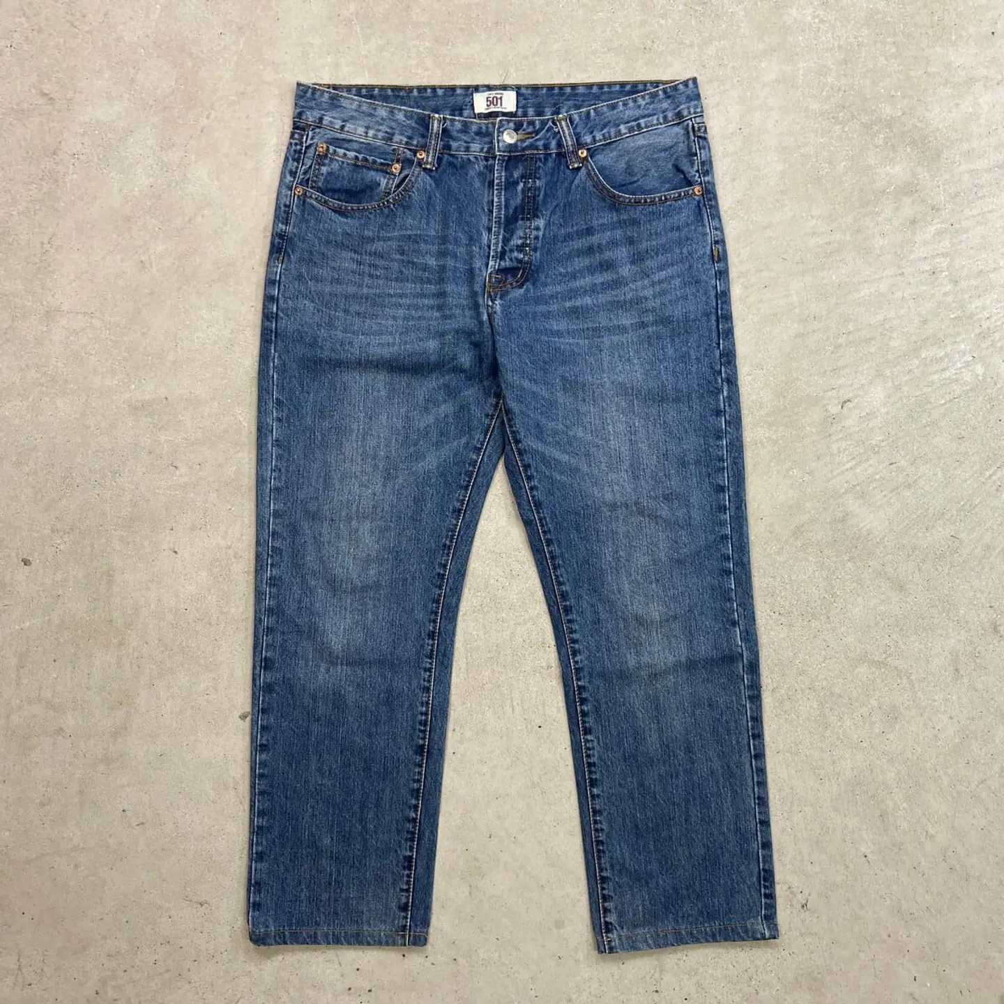 ■USA製 Levi's リーバイス 501 ストレート デニムパンツ メンズW36 古着 アメカジ ジーンズ ヒゲ アタリ 青色【デニムパンツ】/ブルー 【ブランド】Levi's リーバイス 【サイズ】表記 W36 L32(実寸L28) 裾上げされております。 ※計測値をご確認ください。 ウエスト(平置き×2)…90 ワタリ幅…32.5 股上…28 股下…70 裾丈…20 【生産国】USA製 【素材】コットン100% 【状態】使用感はありますが、色落ち具合やヒゲが入っており、雰囲気のある一本です。 画像にてご確認ください。 【c260322106】 ※古着は洗濯、検品などのケアを行っております。(新品・デッドストックは洗濯していません。) ※モニターの発色により実物と異なる場合がございます。予めご了承ください。 ※ 海外直輸入USED品になります。