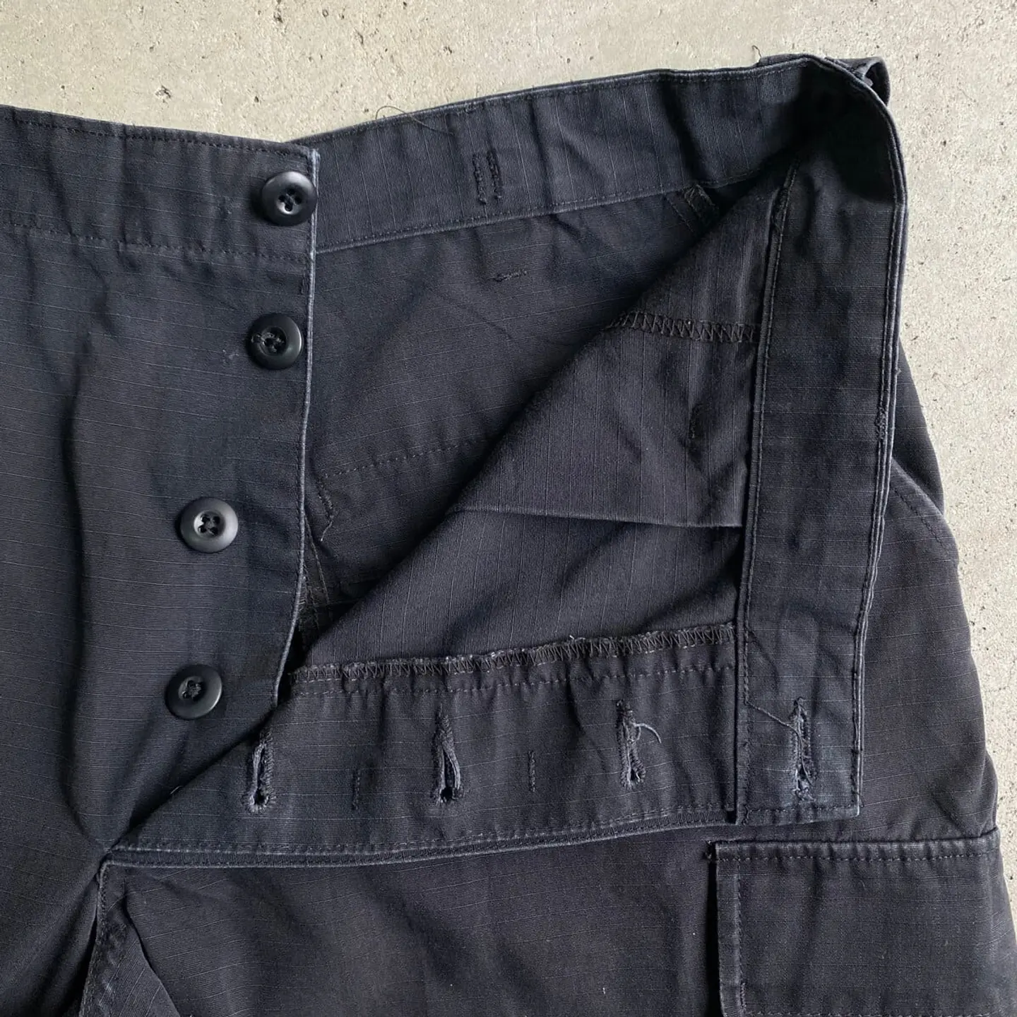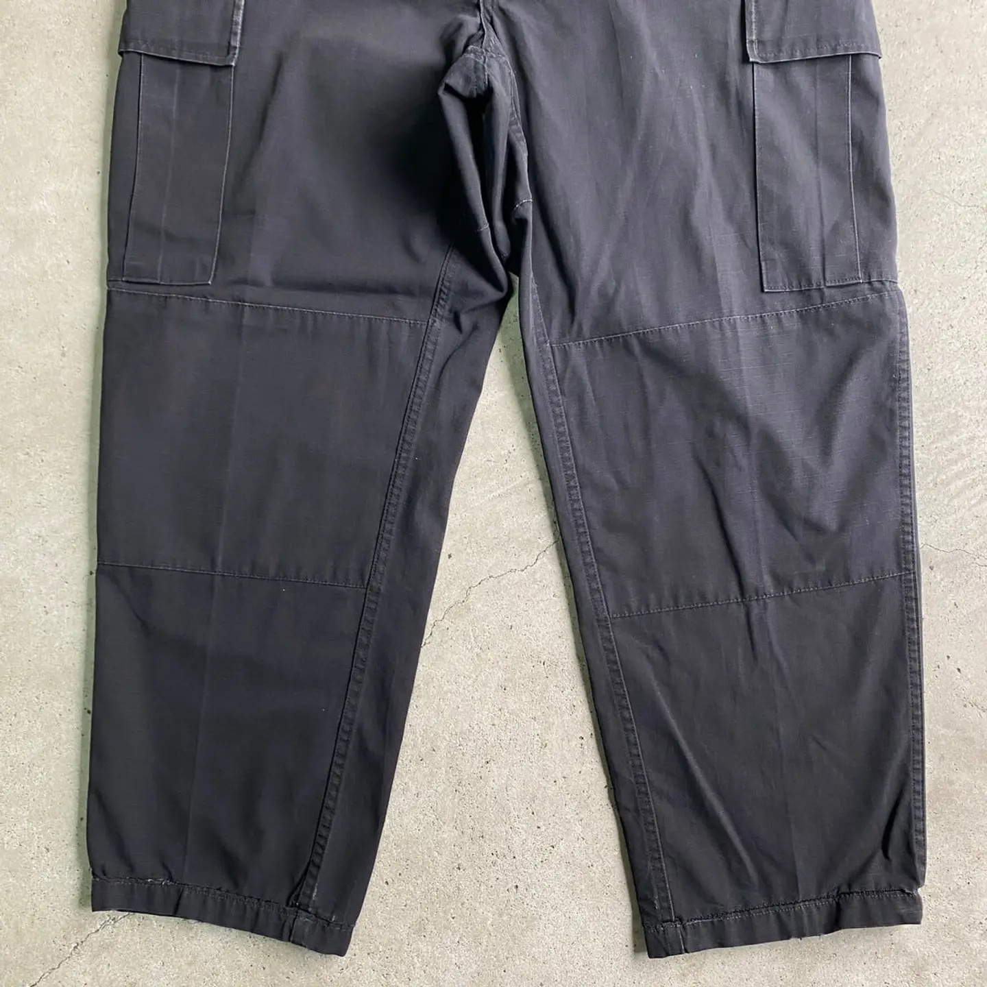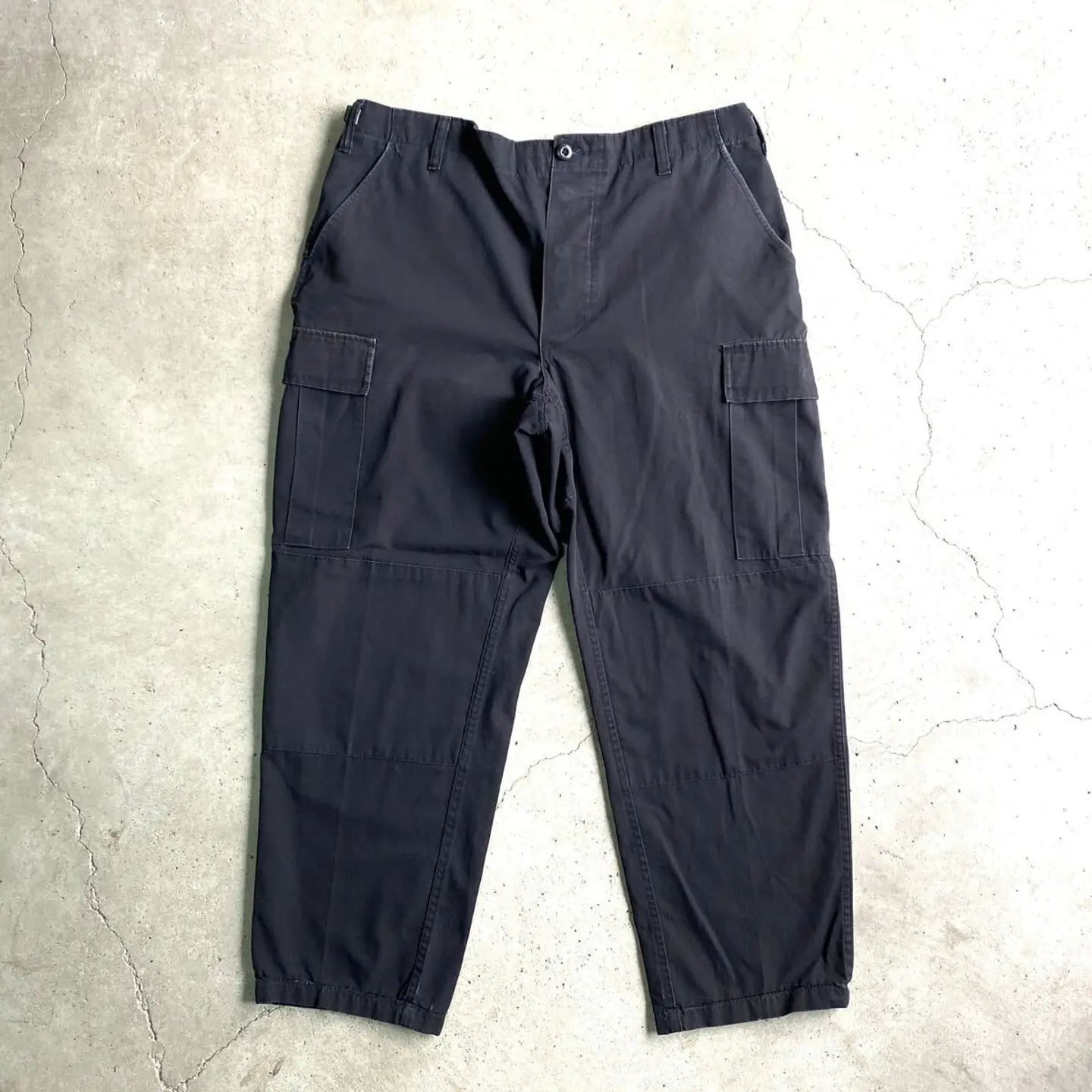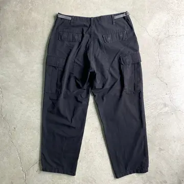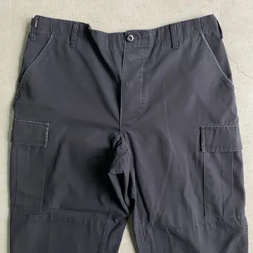■TRU-SPEC ミリタリー リップストップ ダブルニー カーゴパンツ メンズW38相当 古着 ビッグサイズ 大きいサイズ 黒色【ミリタリーパンツ】/ブラック 【ブランド】TRU-SPEC 【サイズ】 LARGE REGULAR(実寸W38 L29相当) ※計測値をご確認ください。 ウエスト(平置き×2)…98 ワタリ幅…35 股上…31 股下…73.5 裾幅…22 【生産国】不明 【素材】ポリエステル65% コットン35% 【状態】若干の色あせ、擦れ等の使用感ございます。 画像にてご確認ください。 【c260317111】 ※古着は洗濯、検品などのケアを行っております。(新品・デッドストックは洗濯していません。) ※モニターの発色により実物と異なる場合がございます。予めご了承ください。 ※ 海外直輸入USED品になります。