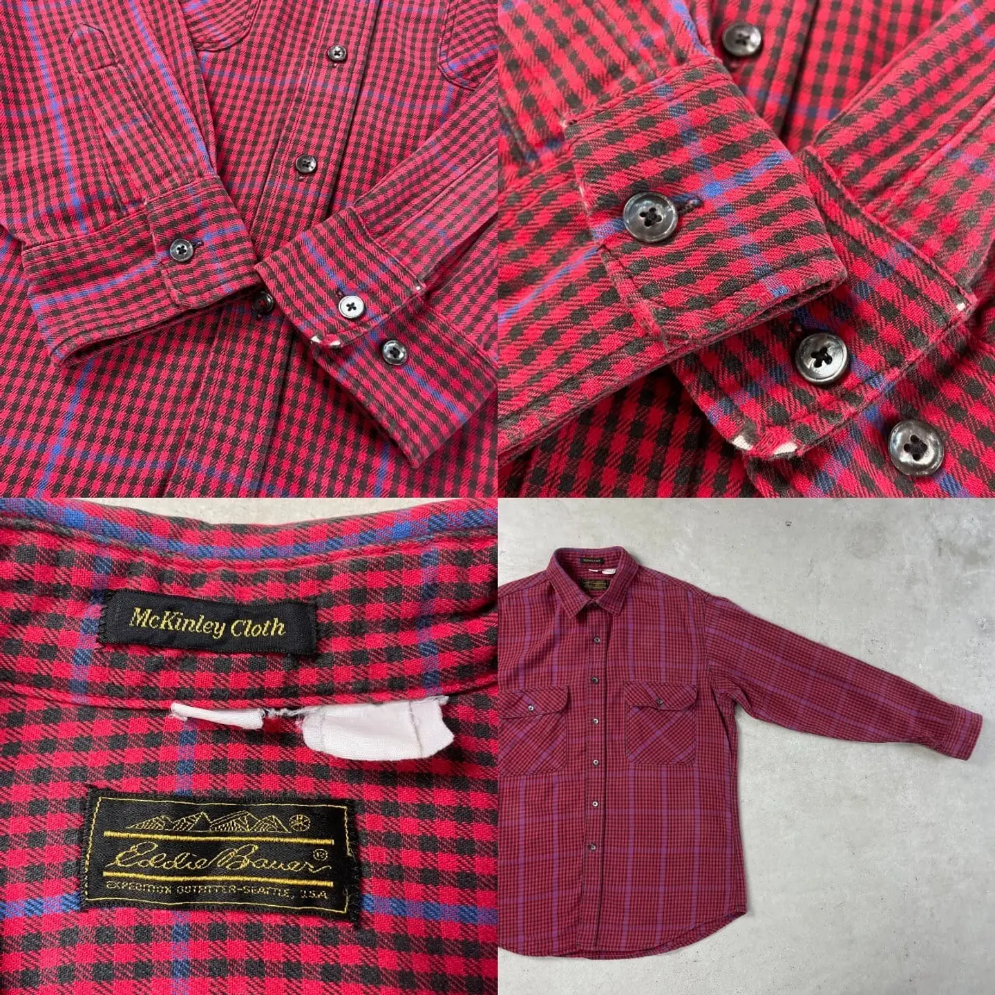 ■80~90年代 Eddie Bauer エディーバウアー 長袖 チェックシャツ メンズXL相当 古着 80s 90s ヴィンテージ VINTAGE 赤色 黒色 青色【長袖シャツ】/レッド 【ブランド】 Eddie Bauer エディーバウアー 【サイズ】 表記 不明 ※計測値をご確認ください。 着丈…80 身幅…60.5 肩幅…48.5 袖丈…63 【素材】不明 【生産国】不明 【状態】ポケット淵にダメージ、袖に擦れなどが御座います。 袖に汚れが御座います。 画像にてご確認ください。 【c260316163】 ※古着は洗濯、検品などのケアを行っております。(新品・デッドストックは洗濯していません。) ※モニターの発色により実物と異なる場合がございます。予めご了承ください。 ※ 海外直輸入USED品になります。