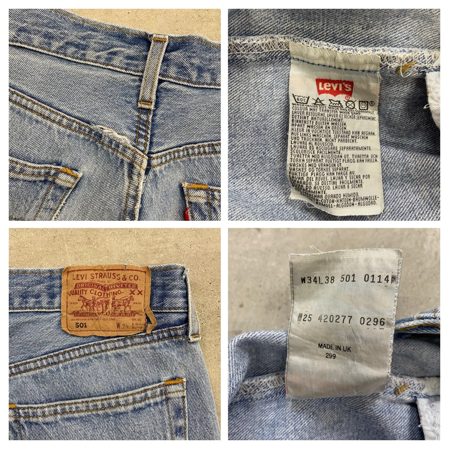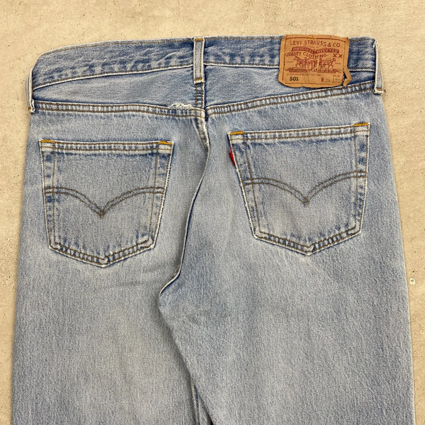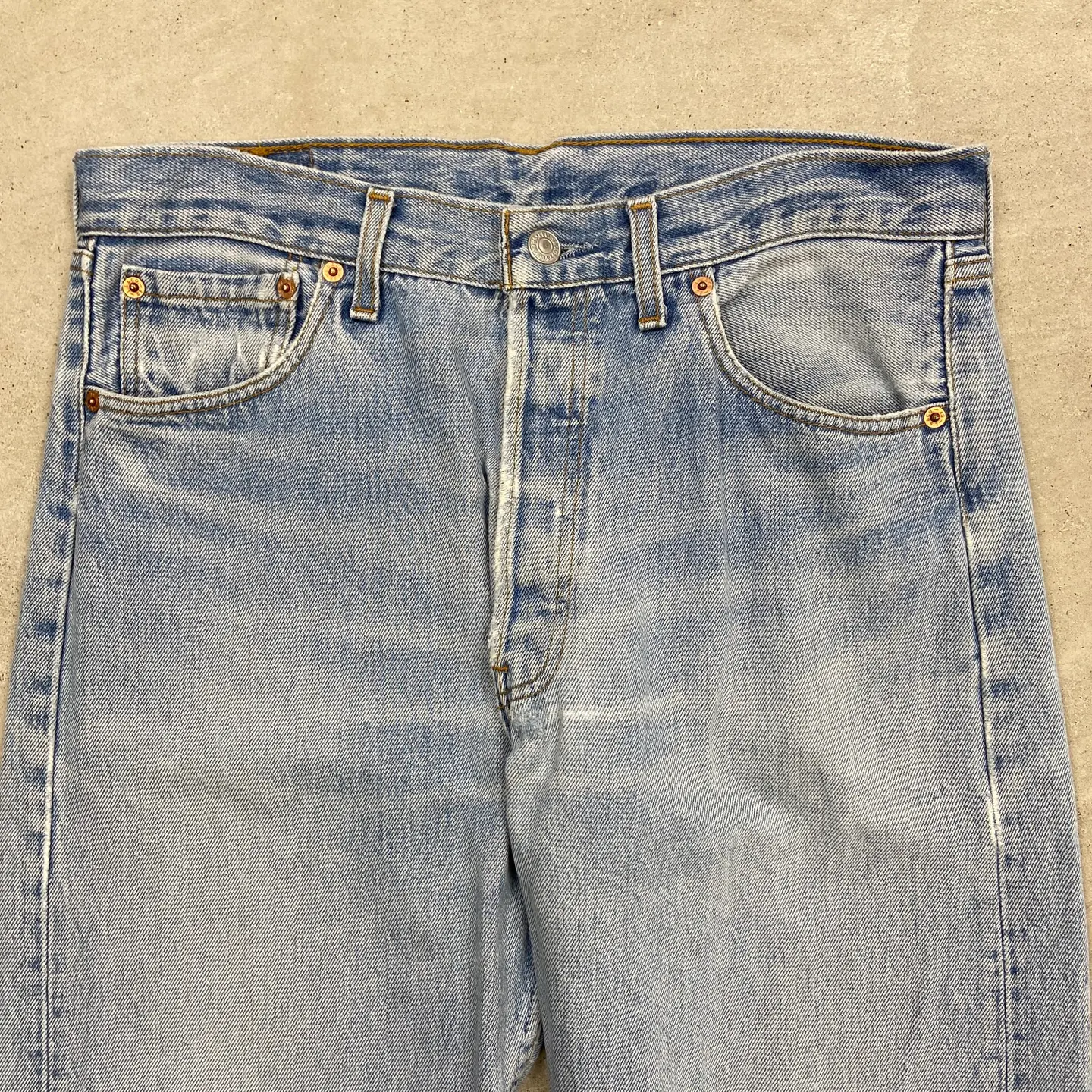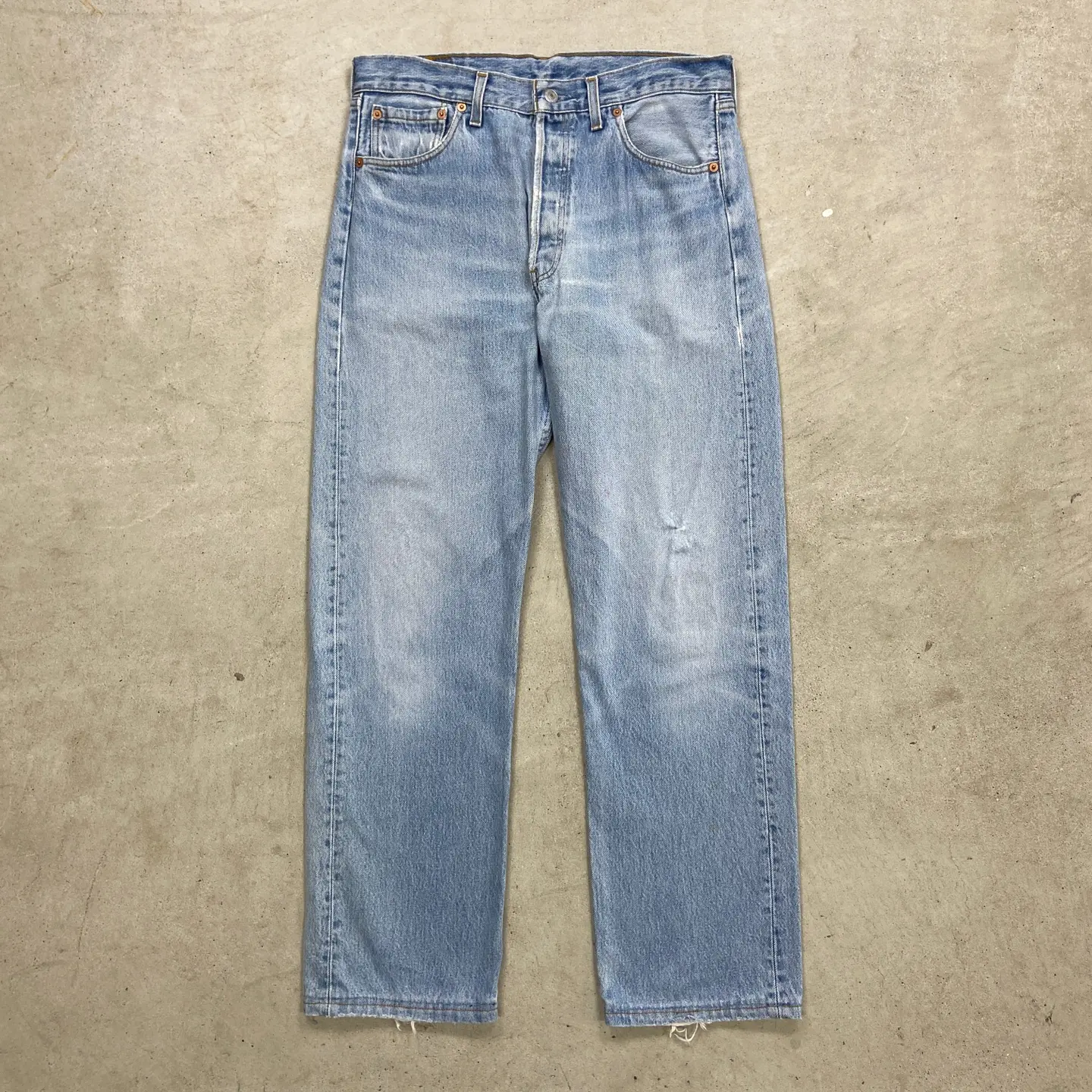■90年代 英国製 Levi's ユーロリーバイス 501 デニムパンツ ストレート メンズW32相当 古着 90s VINTAGE ヴィンテージ アメカジ ジーンズ 【デニムパンツ】/ブルー 【ブランド】Levi's リーバイス 【サイズ】表記 W34 L38(実寸W32 L31) ※裾上げされております。 ※計測値をご確認ください。 ウエスト(平置き×2)…82 ワタリ幅…33.5 股上…29.5 股下…78 裾幅...19.5 【生産国】UK製 【素材】コットン100% 【状態】全体的に使用感による色あせがございます。 股付近にリペア跡、膝辺りに擦れによる若干のダメージがあります。 画像にてご確認ください。 【c260316104】 ※古着は洗濯、検品などのケアを行っております。(新品・デッドストックは洗濯していません。) ※モニターの発色により実物と異なる場合がございます。予めご了承ください。 ※ 海外直輸入USED品になります。