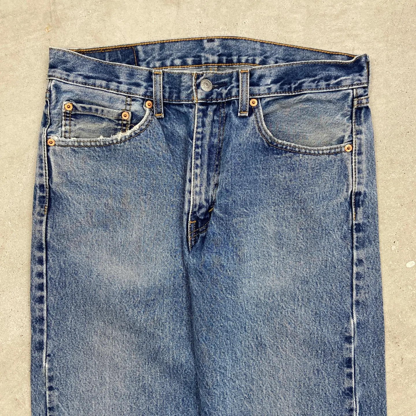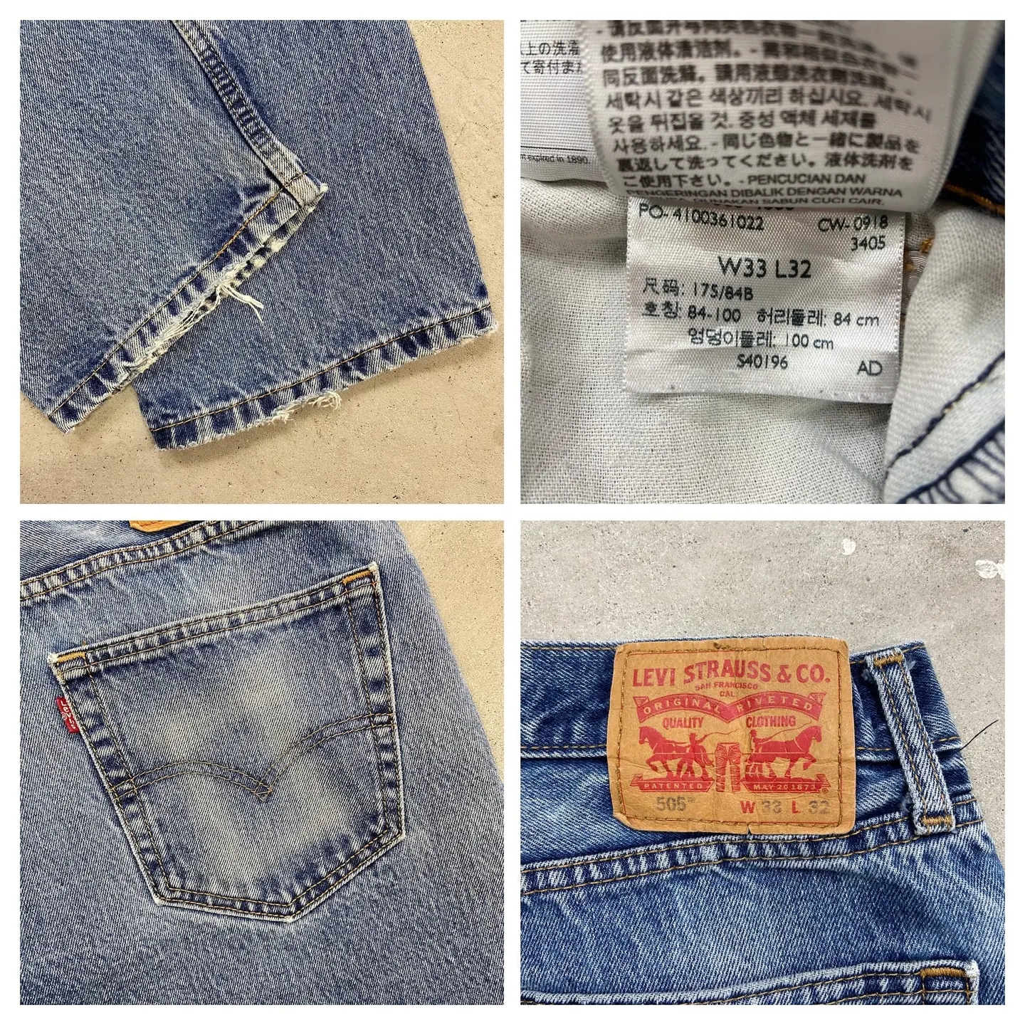 ■Levi's リーバイス 505 デニムパンツ ストレートテーパード メンズW33 古着 アメカジ ジーンズ【デニムパンツ】/ブルー 【ブランド】Levi's リーバイス 【サイズ】表記 W33 L32(実寸L30相当) ※計測値をご確認ください。 ウエスト(平置き×2)…83 ワタリ幅…31.5 股上…27.5 股下...77.5 裾幅…19.5 【生産国】レソト製 【素材】コットン100% 【状態】裾に擦れによるほつれがございます。 画像でお確かめください。 【c260316103】 ※古着は洗濯、検品などのケアを行っております。(新品・デッドストックは洗濯していません。) ※モニターの発色により実物と異なる場合がございます。予めご了承ください。 ※ 海外直輸入USED品になります。