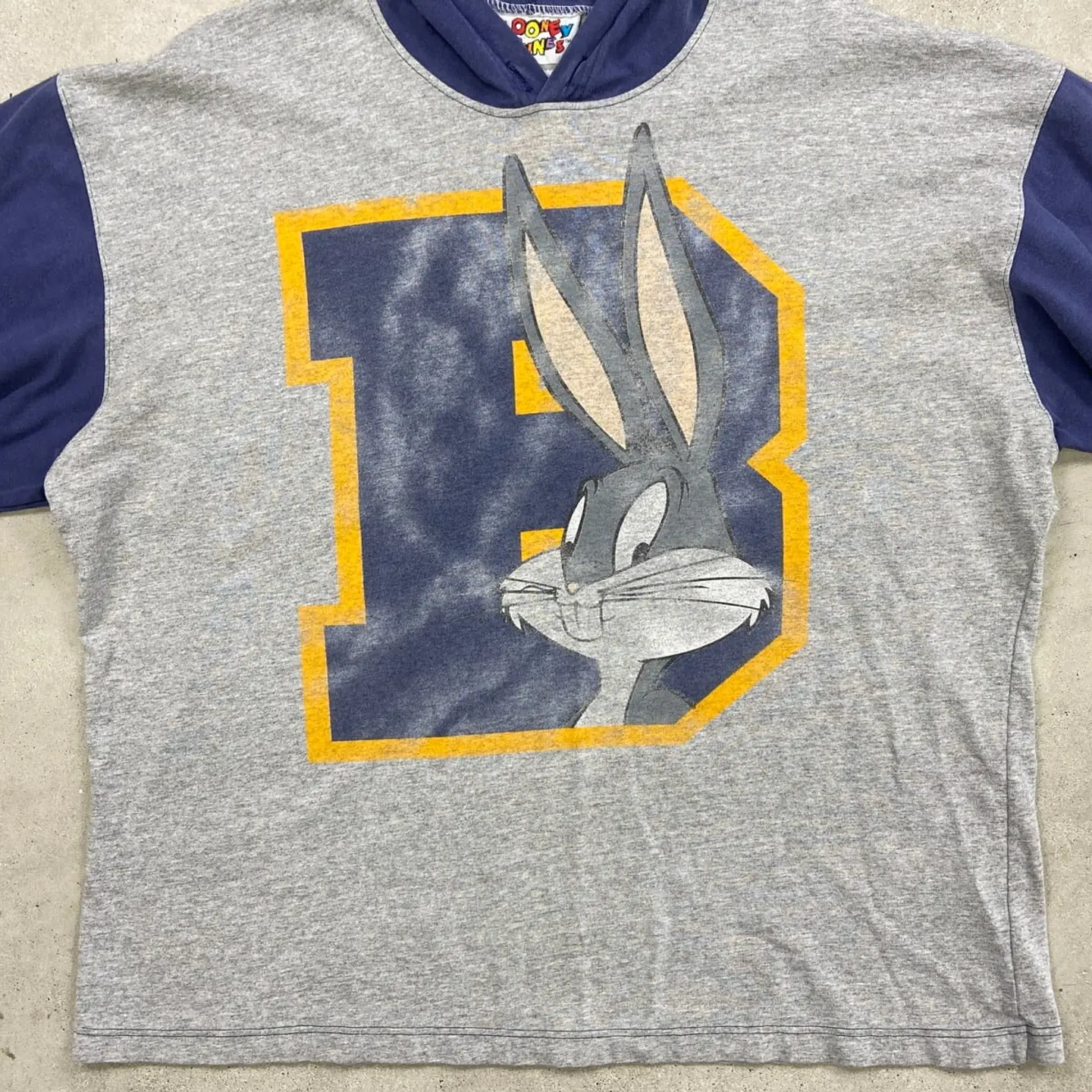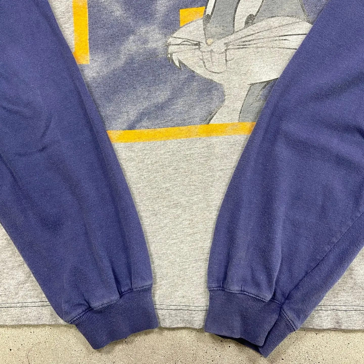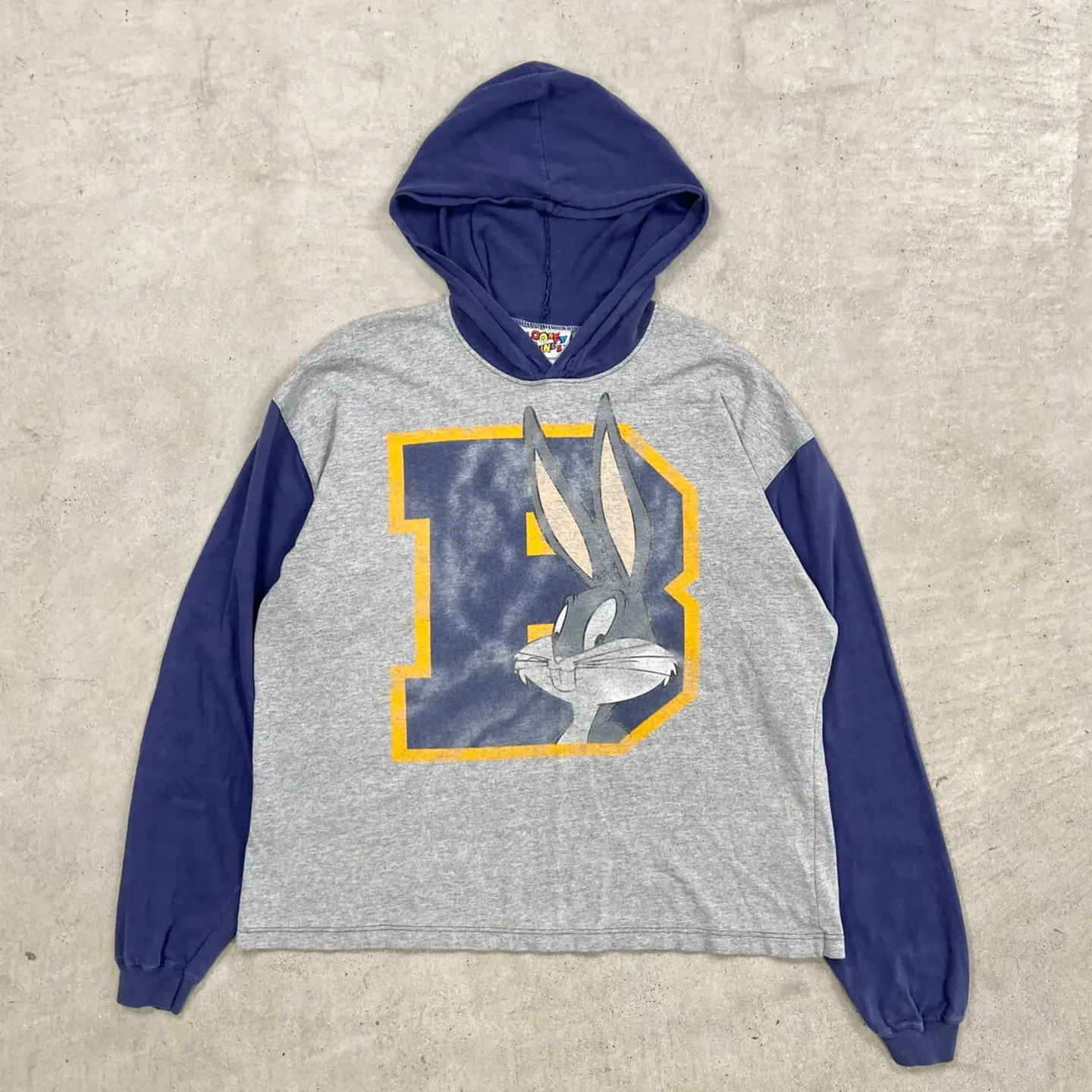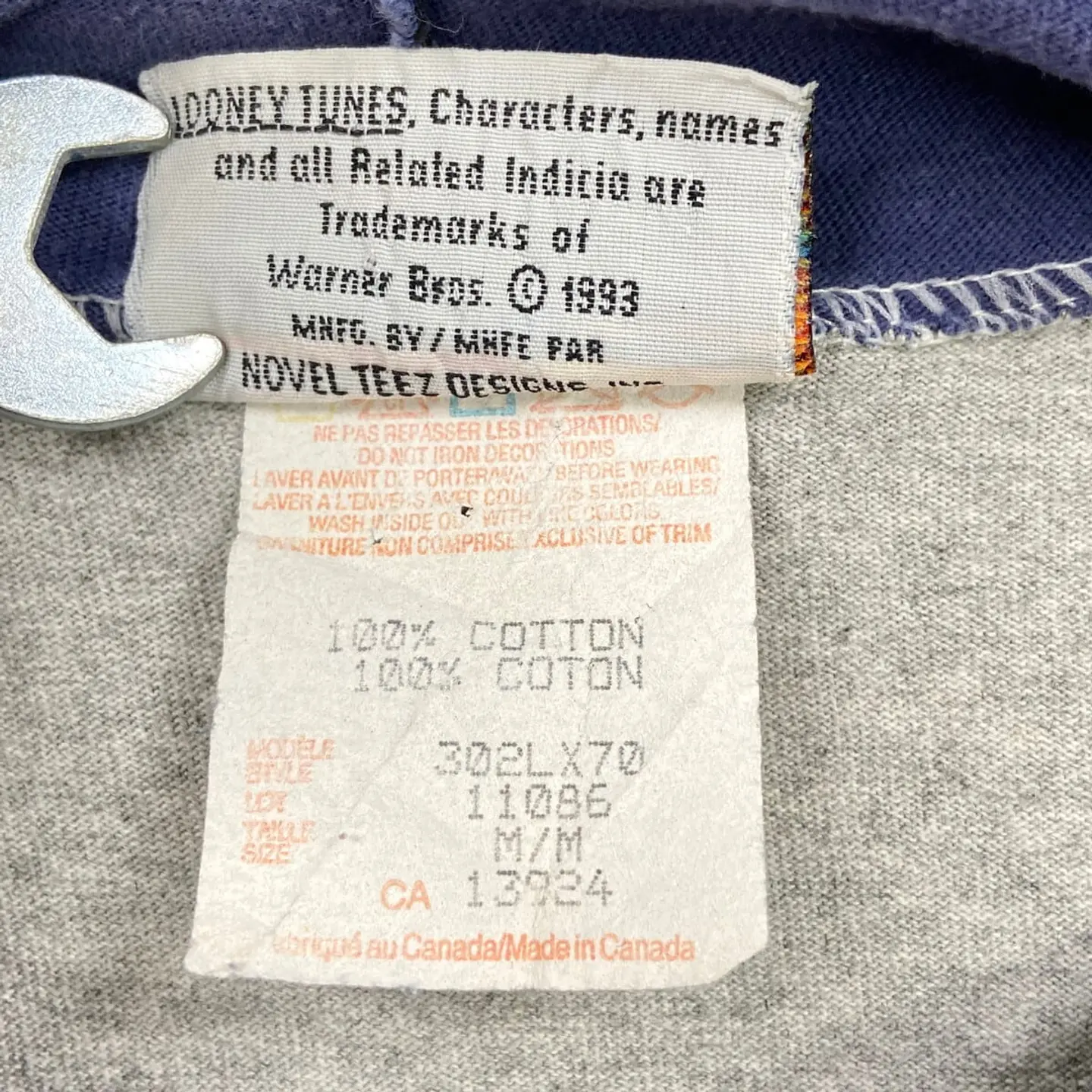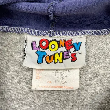 ■90年代 カナダ製 LOONEY TUNES ルーニー・テューンズ キャラクター Tパーカー メンズL相当 古着 90s バックスバーニー フェイクレイヤード VINTAGE ヴィンテージ 灰色 グレー 紺色 ネイビー【パーカー】/マルチカラー ※薄手生地のパーカーです。 【サイズ】表記 M(実寸メンズL相当) ※計測値をご確認ください。 着丈…63 身幅…61.5 肩幅…58 袖丈…66 【生産国】カナダ製 【素材】コットン100% 【状態】全体的に使用感による色あせや擦れがあります。 バックサイドに小穴があります。 画像にてご確認ください。 【c260315111】 ※古着は洗濯、検品などのケアを行っております。(新品・デッドストックは洗濯していません。) ※モニターの発色により実物と異なる場合がございます。予めご了承ください。 ※ 海外直輸入USED品になります。