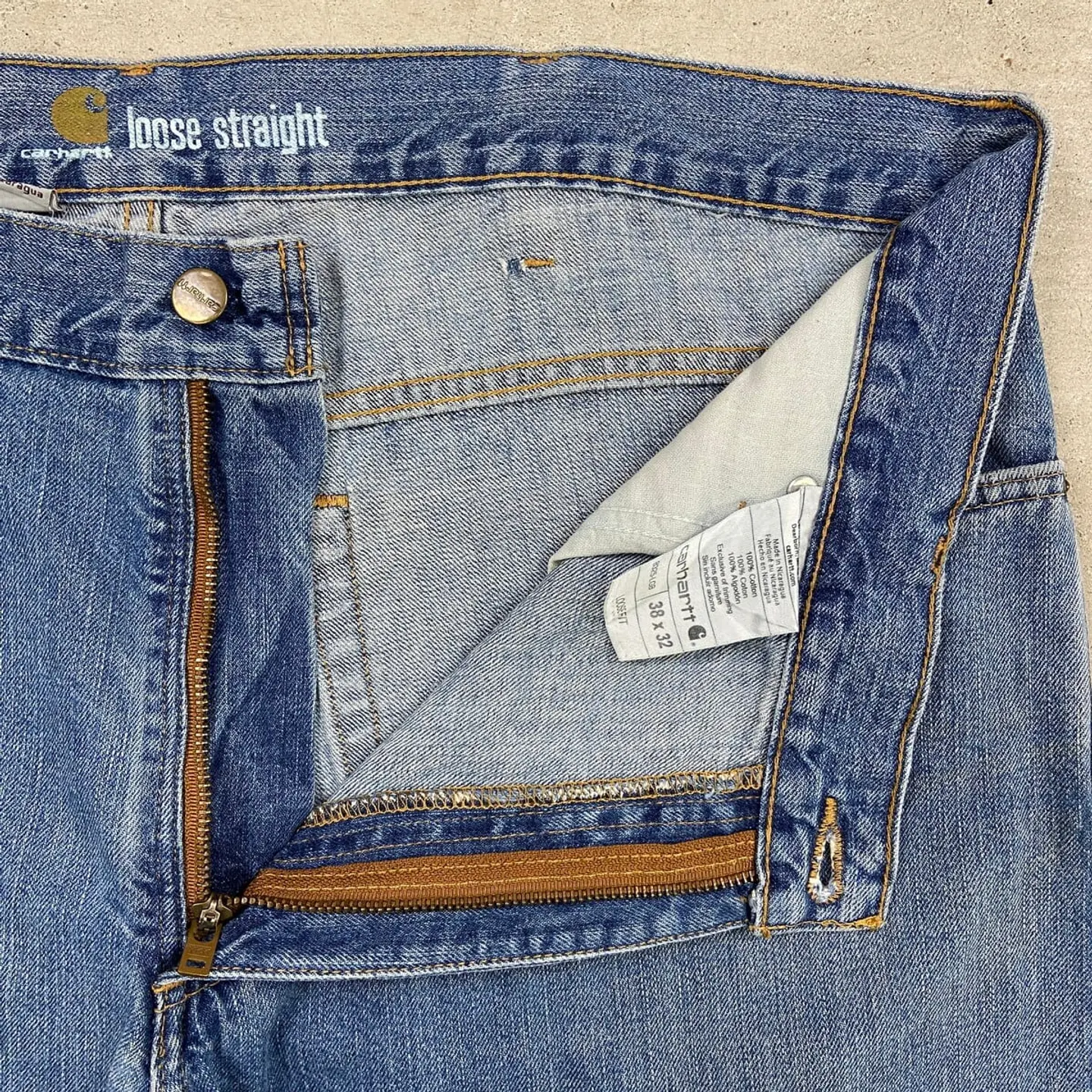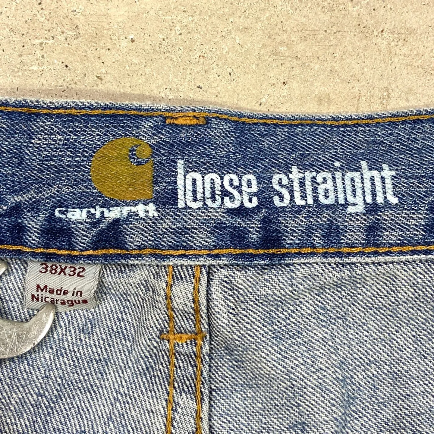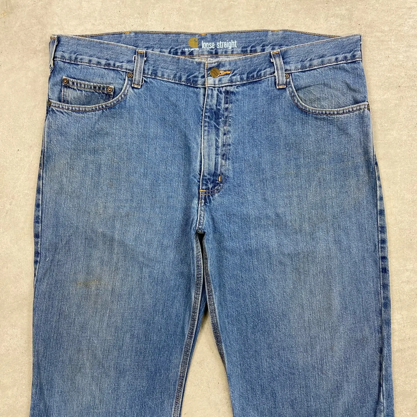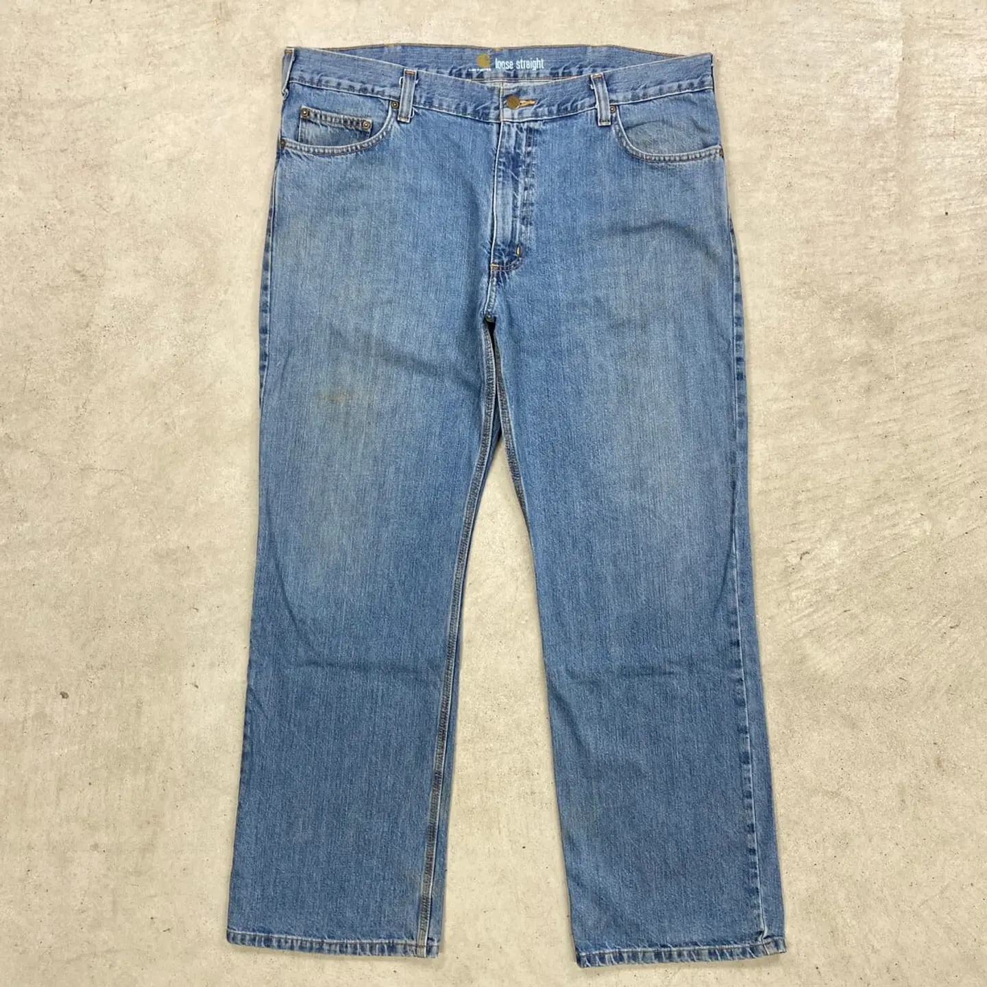 ■Carhartt カーハート デニムパンツ Loose Straight ストレート メンズW38 古着 アメカジ ワークパンツ ビッグサイズ 大きいサイズ 青色【デニムパンツ】/ブルー 【ブランド】Carhartt カーハート 【サイズ】W38 L32 ※計測値をご確認ください。 ウエスト(平置き×2)…101 ワタリ幅…36 股上….30.5 股下…82 裾幅…25 【生産国】ニカラグア製 【素材】コットン100% 【状態】太もも、膝辺りに汚れがございます。 画像にてご確認ください。 【c260315104】 ※古着は洗濯、検品などのケアを行っております。(新品・デッドストックは洗濯していません。)
