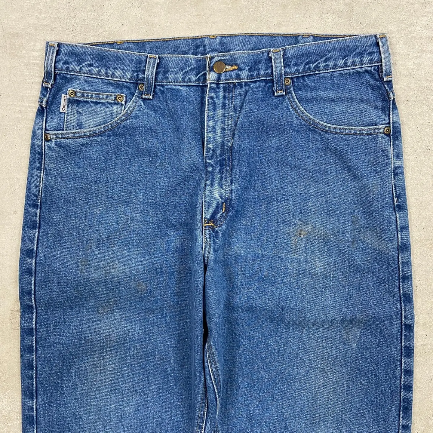 ■00年代 Carhartt カーハート デニムパンツ Relaxed Fit テーパード メンズW38 古着 00s Y2K VINTAGE ヴィンテージ アメカジ ワークパンツ ビッグサイズ 大きいサイズ 青色【デニムパンツ】/ブルー 【ブランド】Carhartt カーハート 【サイズ】W38 L32 ※計測値をご確認ください。 ウエスト(平置き×2)…94 ワタリ幅…37 股上….33 股下…80 裾幅…22 【生産国】メキシコ製 【素材】コットン100% 【状態】太もも、膝辺りに汚れがございます。 画像にてご確認ください。 【c260315102】 ※古着は洗濯、検品などのケアを行っております。(新品・デッドストックは洗濯していません。)