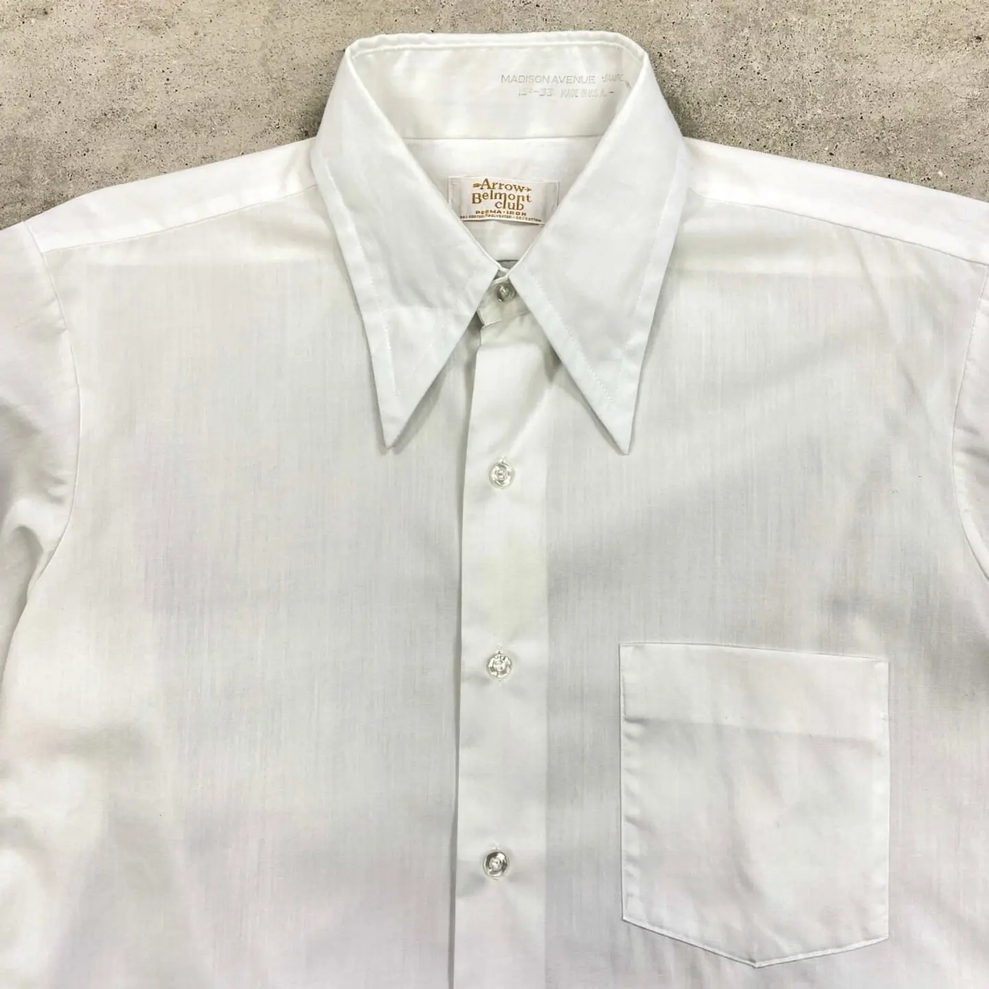 ■70年代 USA製 ARROW BELMONT CLUB ドレスシャツ 無地 メンズL相当 古着 70s ヴィンテージ VINTAGE 白色【長袖シャツ】/ホワイト 【ブランド】ARROW 【サイズ】表記 15-33(実寸メンズL相当) ※計測値をご確認ください。 着丈…79 身幅…60 肩幅…46 袖丈…60 【生産国】USA製 【素材】ポリエステル50%、コットン50% 【状態】使用感は若干ございますが、目立ったダメージや汚れはなく、 まだまだ愛用していただけます。 画像にてご確認ください。 【c260314117】 ※古着は洗濯、検品などのケアを行っております。(新品・デッドストックは洗濯していません。) ※モニターの発色により実物と異なる場合がございます。予めご了承ください。 ※ 海外直輸入USED品になります。