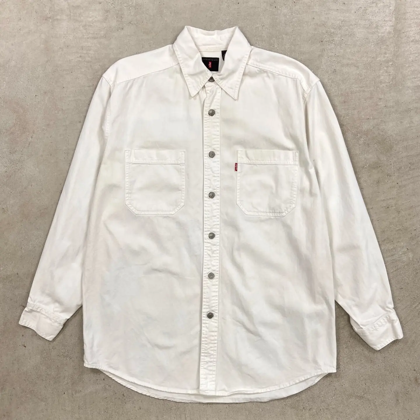 ■90~00年代 Levi's リーバイス ホワイトデニムシャツ メンズL~XL相当 古着 90s 00s Y2K VINTAGE ヴィンテージ アメカジ ダブルポケット 白色【長袖シャツ】/ホワイト 【ブランド】Levi's リーバイス 【サイズ】表記 S(着用感メンズL~XL相当) ※計測値をご確認ください。 着丈…80 身幅…61 肩幅…50 袖丈…60.5 【素材】コットン100% 【生産国】香港製 【状態】左袖、バックサイドに薄汚れがございます。 ダメージはありません。 画像にてご確認ください。 【c260314115】 ※古着は洗濯、検品などのケアを行っております。(新品・デッドストックは洗濯していません。) ※モニターの発色により実物と異なる場合がございます。予めご了承ください。 ※ 海外直輸入USED品になります。