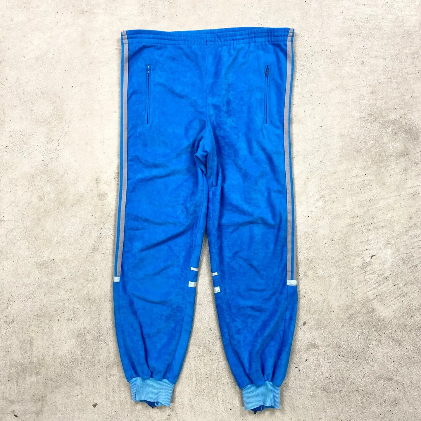 ■70年代 フランス製 VENTEX社製 adidas アディダス ベロアジャージ トラックパンツ メンズW32相当 古着 70s VINTAGE ヴィンテージ ユーロ 3ライン ターコイズブルー【ジャージ,ナイロンパンツ】/ライトブルー 【ブランド】adidas アディダス 【サイズ】不明(実寸メンズW32 L27相当) ※計測値をご確認ください。 ウエスト…82(ドローコードで調節可) ワタリ幅…28 股上…25.5 股下…68.5 裾幅...ゴム:9.5-14(裾ジップ) 【生産国】フランス製 【素材】ポリエステル80% コットン20% 【状態】裾に色抜けした箇所がございます。 その他目立ったダメージはありません。 画像にてご確認ください。 【c260314102】 ※古着は洗濯、検品などのケアを行っております。(新品・デッドストックは洗濯していません。) ※モニターの発色により実物と異なる場合がございます。予めご了承ください。 ※ 海外直輸入USED品になります。