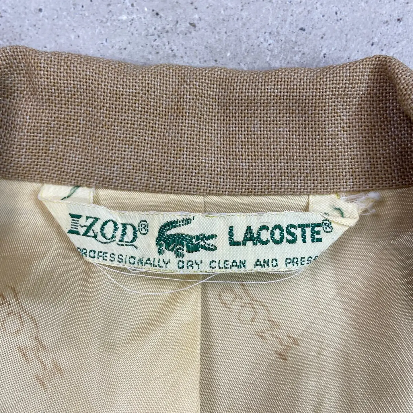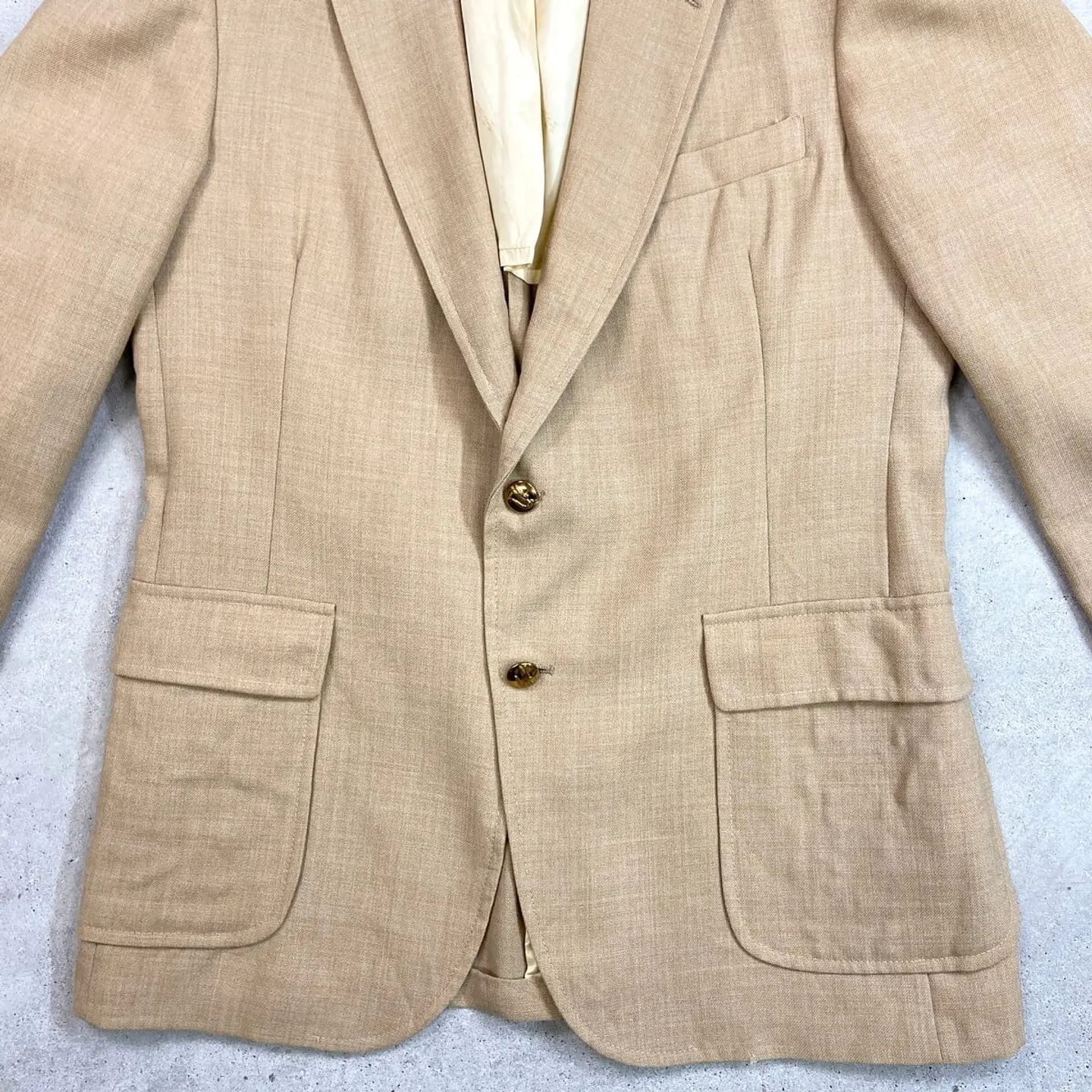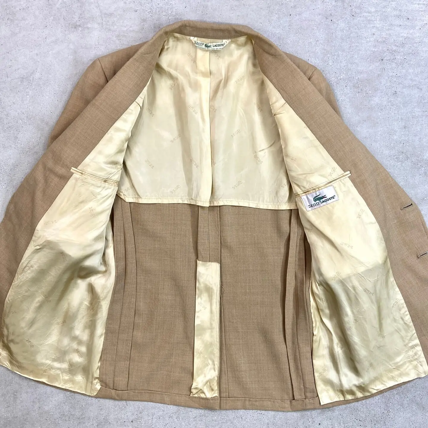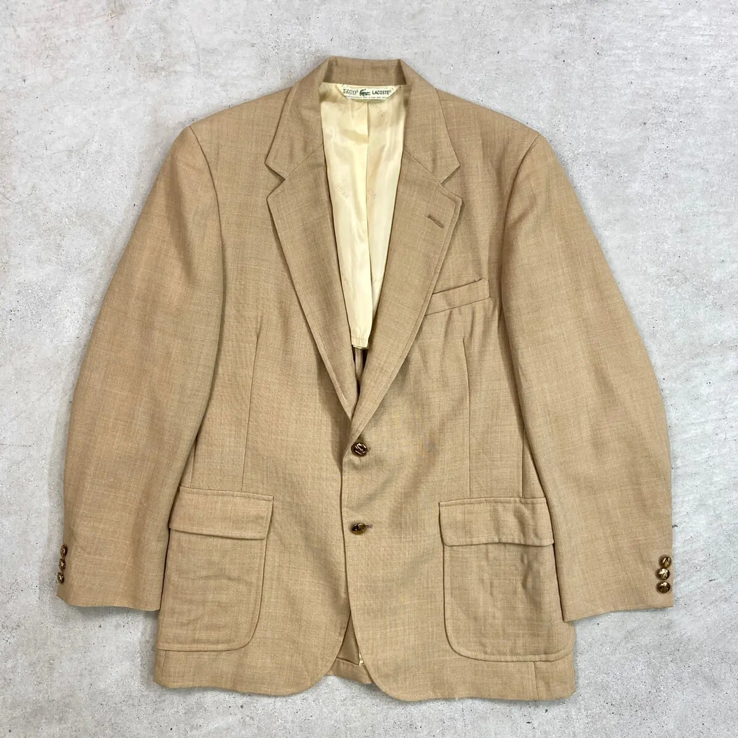 ■80年代 IZOD LACOSTE アイゾッド ラコステ テーラードジャケット メンズS相当 古着 80s VINTAGE ヴィンテージ 2B 金ボタン キャメルブラウン【ブルゾン・ジャケット】/ベージュ 【ブランド】IZOD LACOSTE アイゾッド ラコステ 【サイズ】表記 不明(着用感メンズS相当) ※計測値をご確認ください。 着丈…77 身幅…52 肩幅…53.5 袖丈…61.5 【生産国】不明 【素材】不明 【状態】右袖口付近にダメージがあります。 その他目立ったダメージや汚れはなく、 まだまだ愛用していただけます。 画像にてご確認ください。 【c260312108】 ※古着は洗濯、検品などのケアを行っております。(新品・デッドストックは洗濯していません。) ※モニターの発色により実物と異なる場合がございます。予めご了承ください。 ※ 海外直輸入USED品になります。