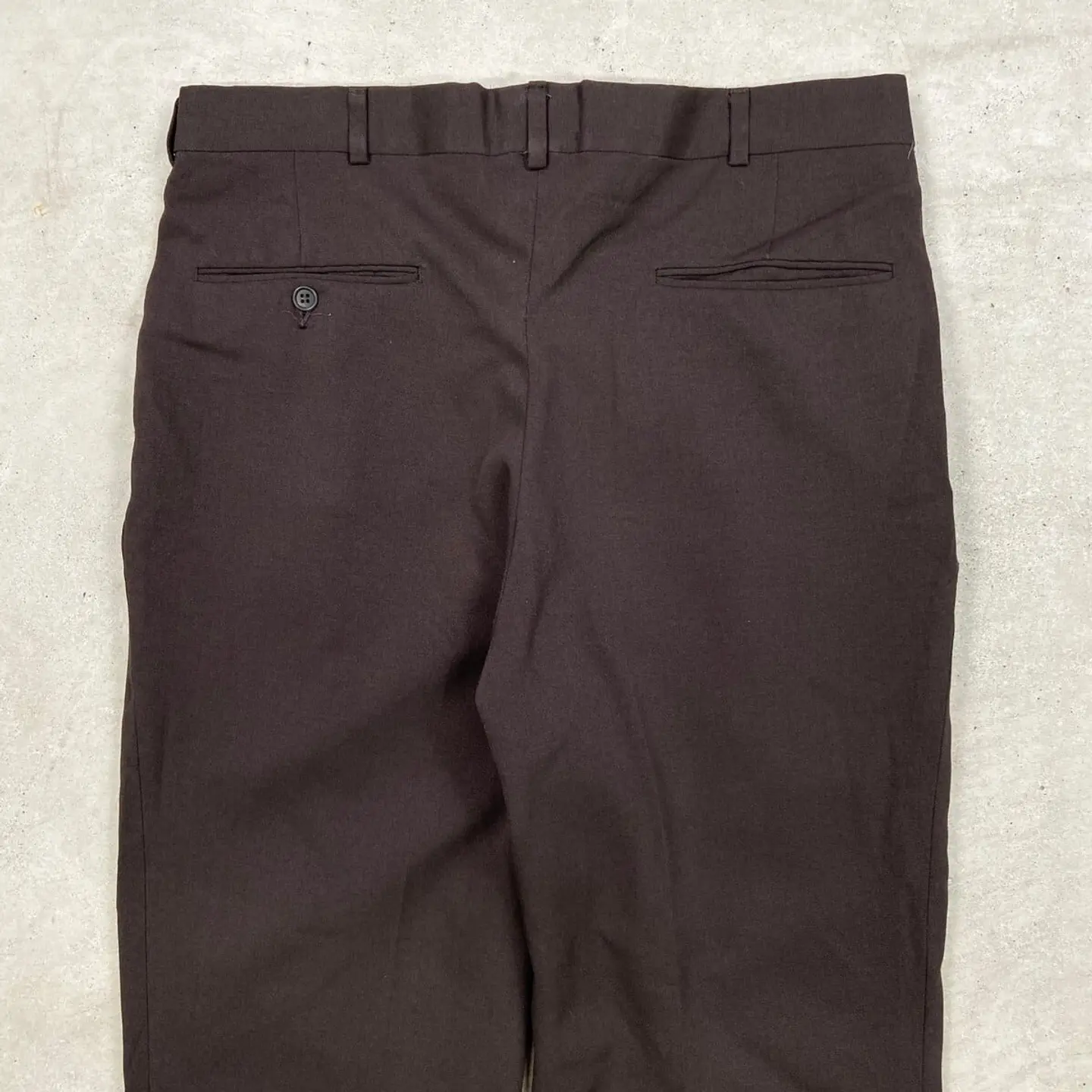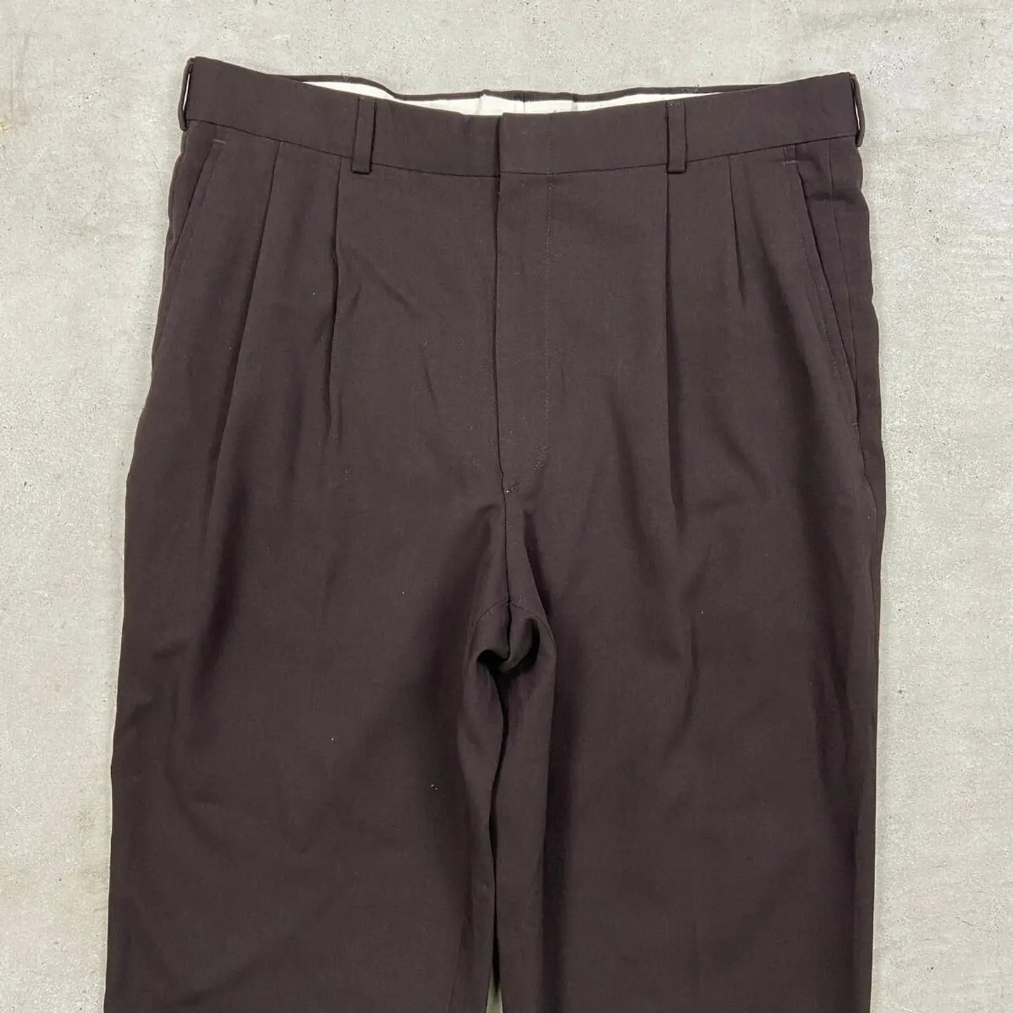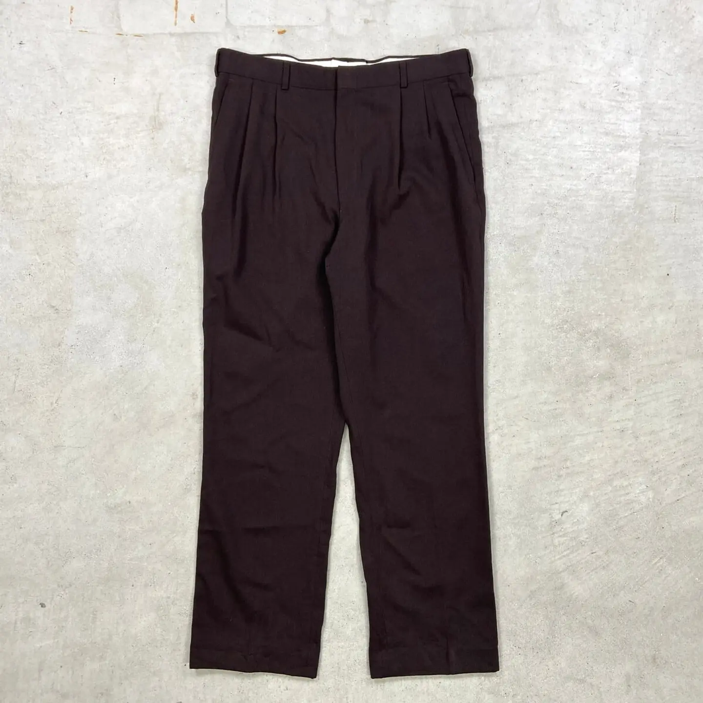 ■80~90年代 USA製 2タック ワイドスラックスパンツ メンズW35相当 古着 80s 90s ヴィンテージ VINTAGE ロケットTALONジッパー 茶色 ダークブラウン【スラックス,スタプレ】/ブラウン 【ブランド】不明 【サイズ】不明(実寸約W35 L30) ※計測値をご確認ください。 ウエスト(平置き×2)…88 ワタリ幅…33.5 股上…31 股下...77 裾幅…22.5 【生産国】USA製 【素材】不明(おそらくポリエステル混紡かと思われます) 【状態】多少の使用感はございますが、 目立った汚れやダメージ等は無くまだまだ長く愛用していただけます。 画像にてご確認ください。 【c260312105】 ※古着は洗濯、検品などのケアを行っております。(新品・デッドストックは洗濯していません。) ※モニターの発色により実物と異なる場合がございます。予めご了承ください。 ※ 海外直輸入USED品になります。