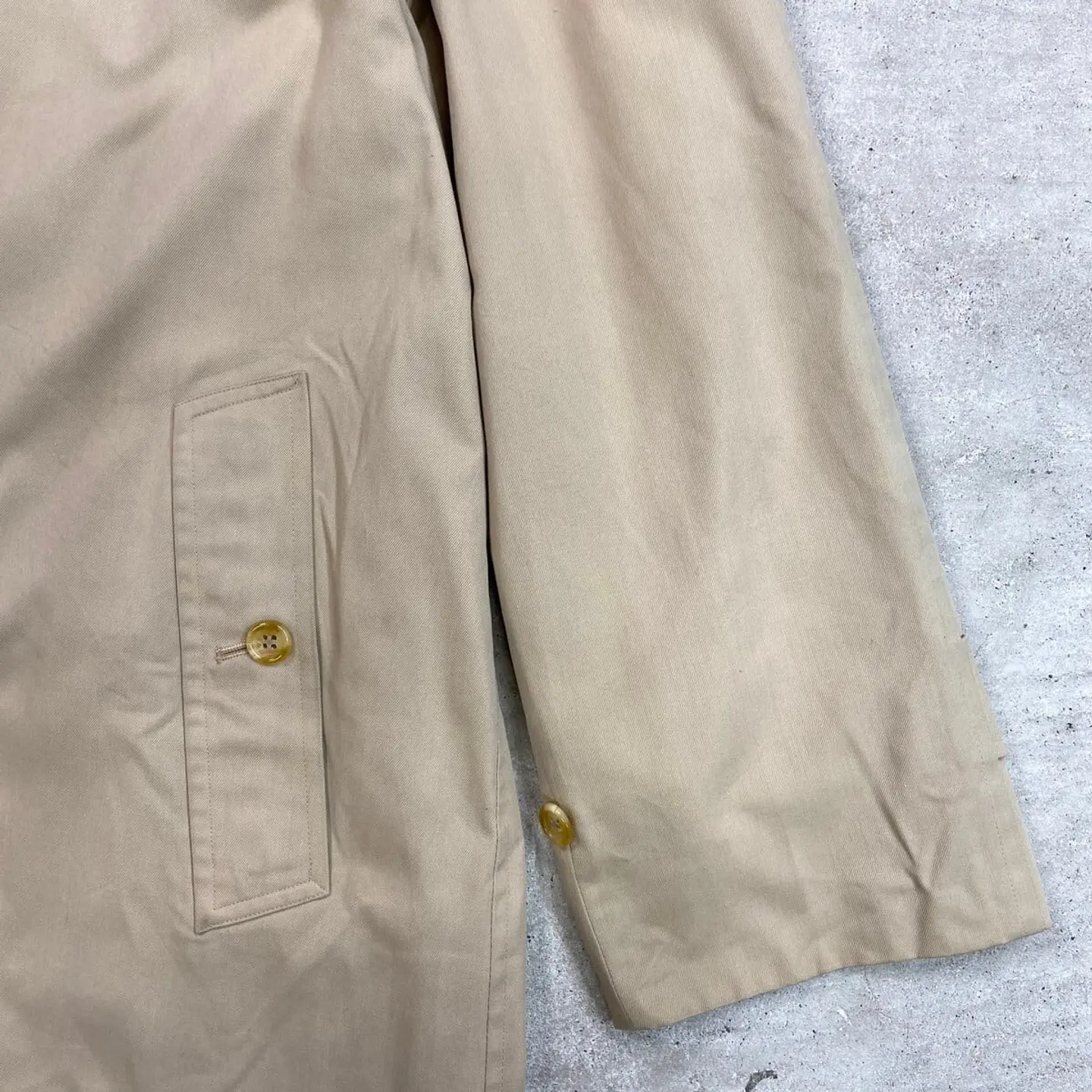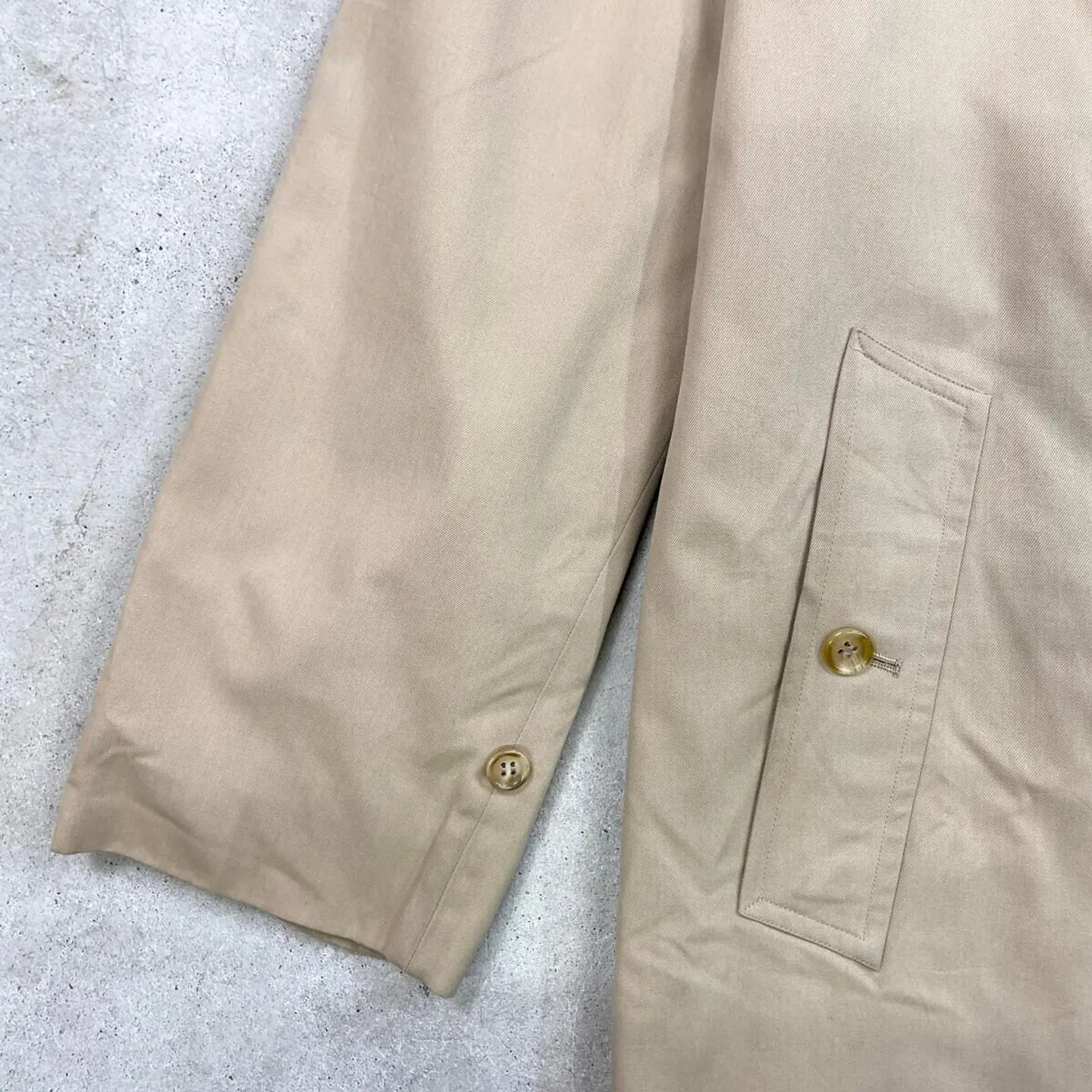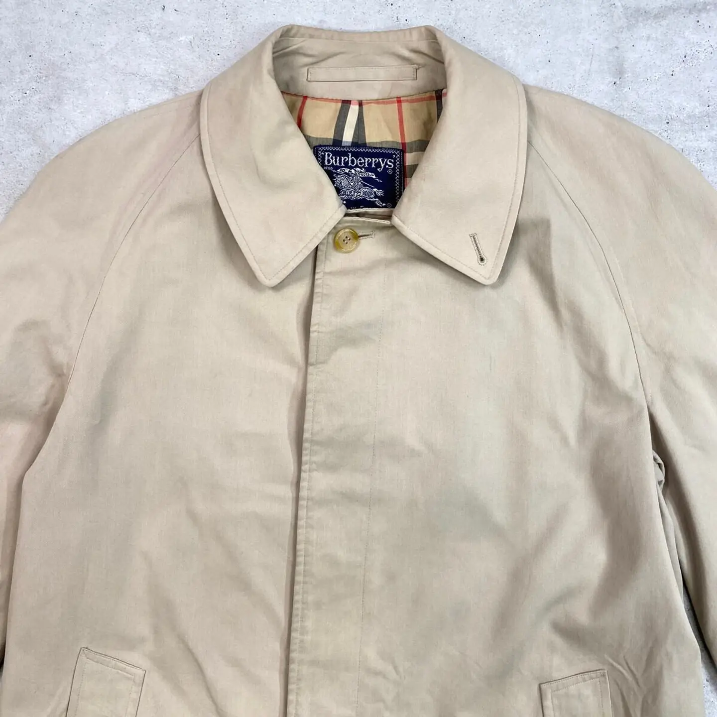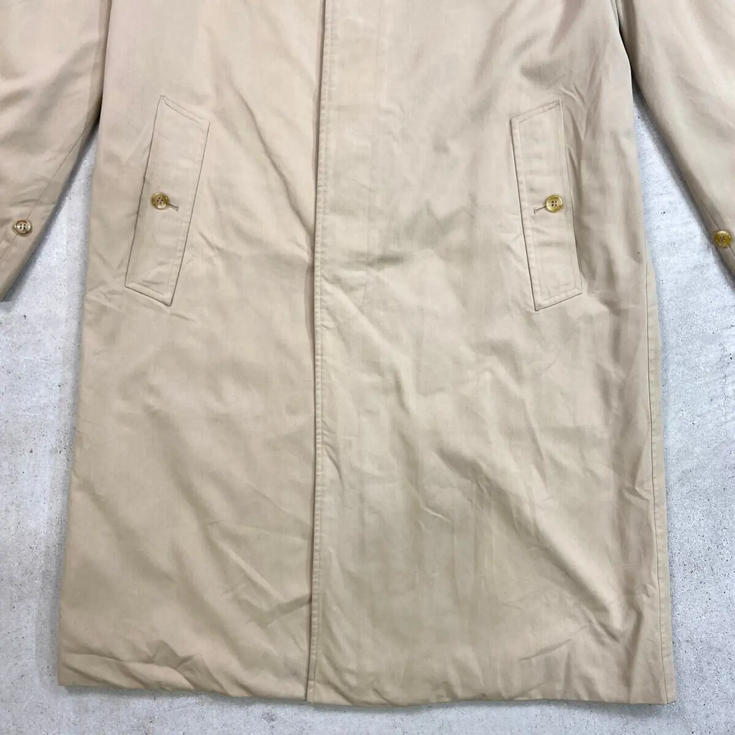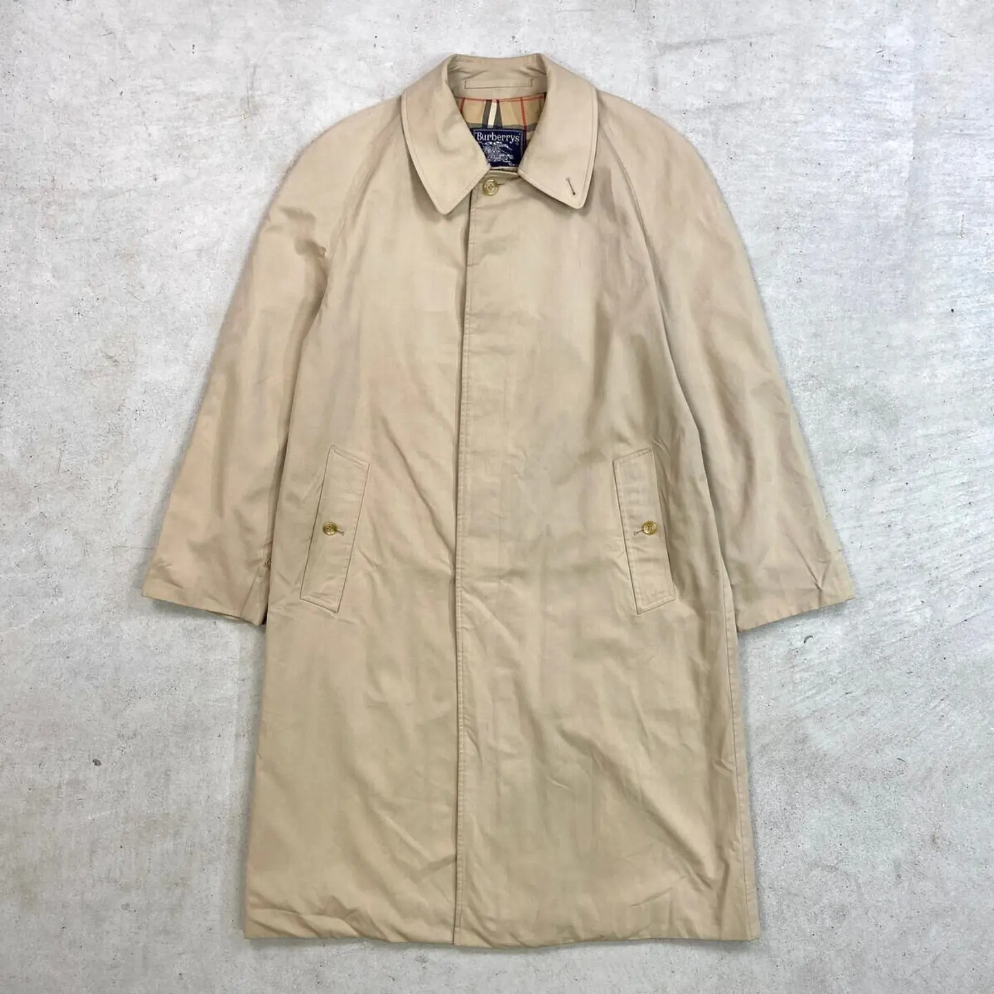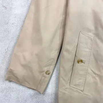 ■70~80年代 英国製 Burberrys バーバリー ステンカラーコート バルマカーンコート メンズM相当 古着 70s 80s VINTAGE ヴィンテージ PRORSUM プローサム バーバリーチェック ノバチェック ライトベージュ【コート】/ベージュ 【ブランド】Burberrys バーバリー 【サイズ】不明(実寸メンズM相当) ※計測値をご確認ください。 着丈...107 身幅…55 裄丈…74.5 袖丈(脇下計測)…44.5 【生産国】英国製 【素材】ポリエステル67%、コットン33% 【状態】フロントボタン付近に一部シミ汚れがあります。 その他目立ったダメージ等はございません。 画像にてご確認ください。 【c260312103】 ※古着は洗濯、検品などのケアを行っております。(新品・デッドストックは洗濯していません。) ※モニターの発色により実物と異なる場合がございます。予めご了承ください。 ※ 海外直輸入USED品になります。