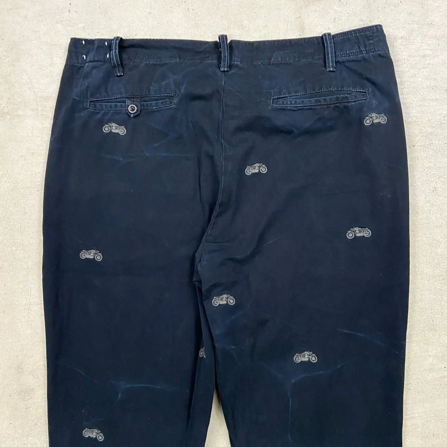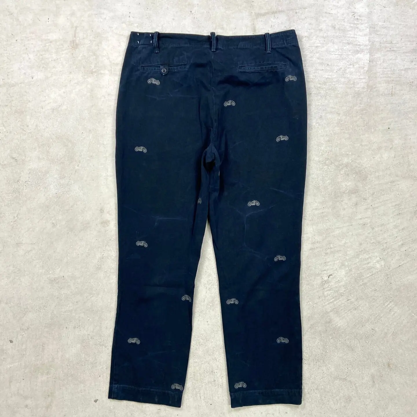 ■POLO Ralph Lauren ポロラルフローレン モーターサイクル刺繍 ワイド チノパンツ ポロチノ メンズW38 古着 バイク ビッグサイズ 大きいサイズ 紺色【チノパンツ,コットンパンツ】/ネイビー 【ブランド】Polo by Ralph Lauren ポロバイラルフローレン 【サイズ】表記 W38 L30 ※計測値をご確認ください。 ウエスト(平置き×2)…100 ワタリ幅…35.5 股上…28 股下…75 裾幅…20.5 【生産国】中国製 【素材】コットン100% 【状態】全体的に使用感による色あせがございますが、 目立ったダメージや汚れはなく、 まだまだ愛用していただけます。 画像にてご確認ください。 【c260308113】 ※古着は洗濯、検品などのケアを行っております。(新品・デッドストックは洗濯していません。) ※モニターの発色により実物と異なる場合がございます。予めご了承ください。 ※ 海外直輸入USED品になります。