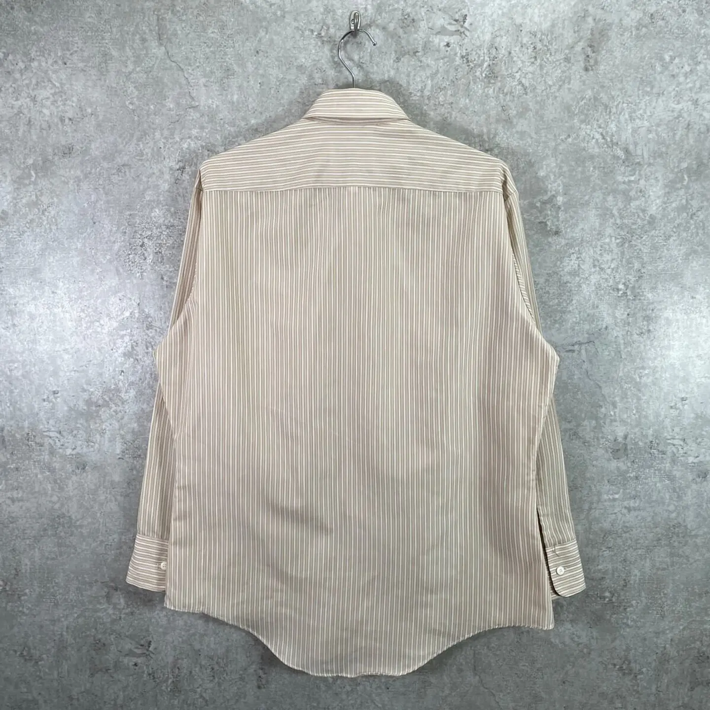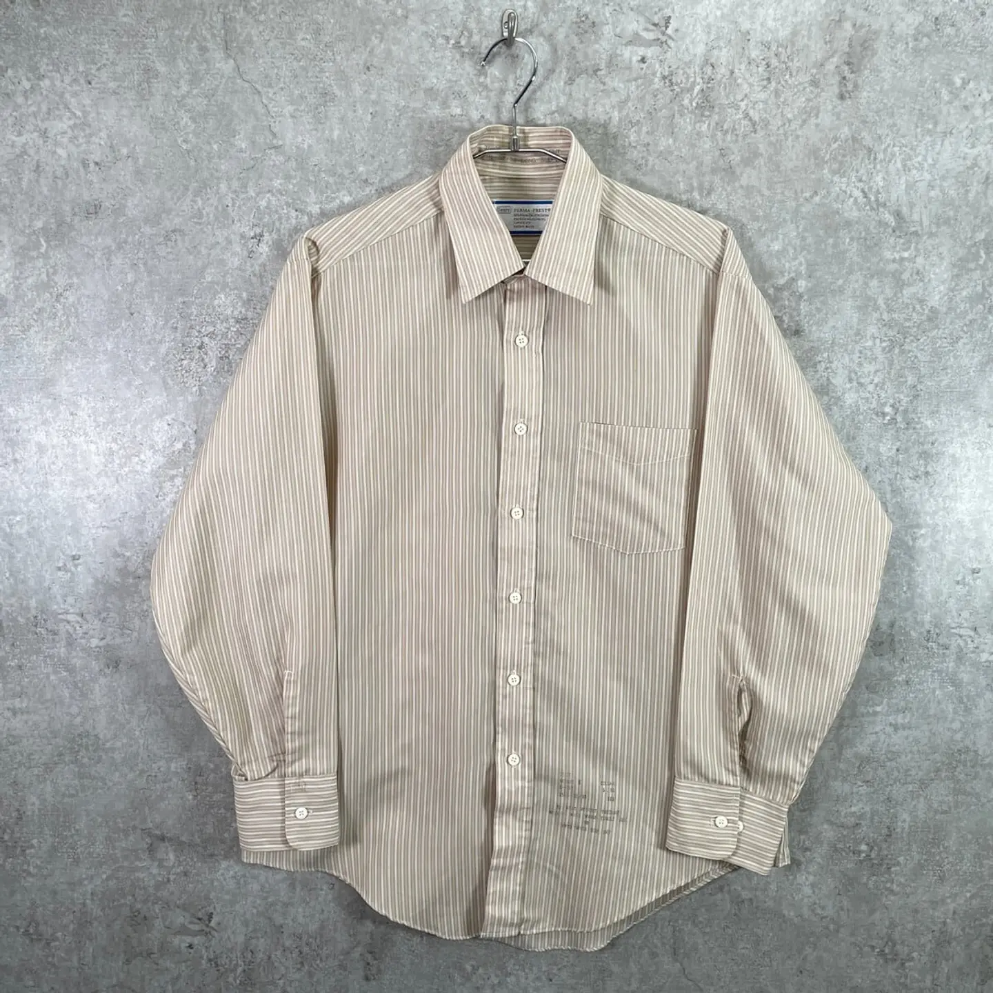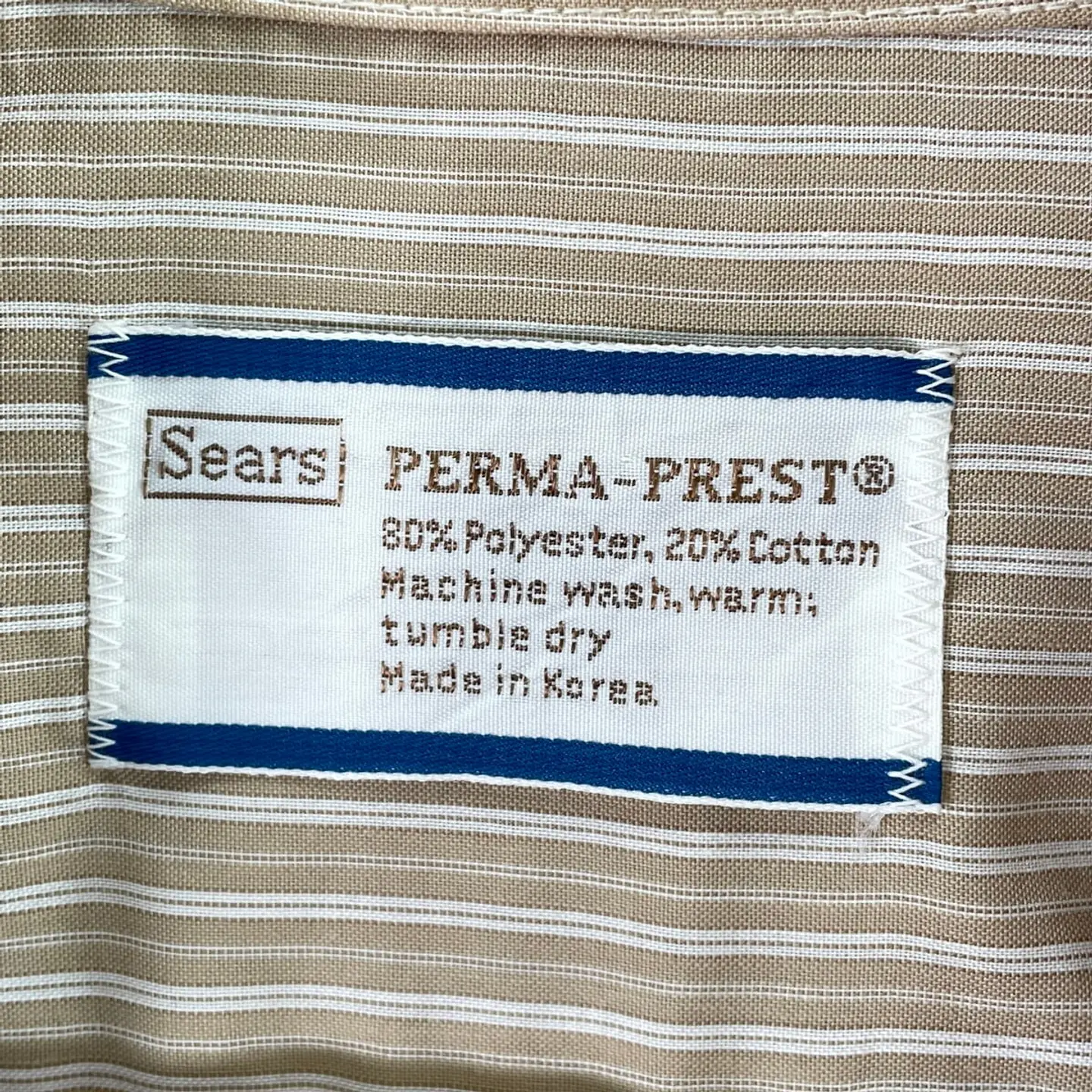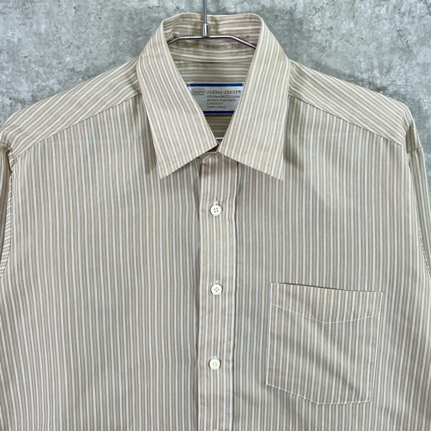 ■80年代 SEARS PERMA-PREST シアーズ パーマプレスト マルチストライプシャツ メンズL相当 古着 80s VINTAGE ヴィンテージ アメカジ 胸ポケ付 ベージュ ホワイト【長袖シャツ】/マルチカラー ◎薄手の生地感で肌触りのよく、夏でも涼しく着用できます。 【ブランド】SEARS PERMA-PREST シアーズ パーマプレスト 【サイズ】表記 32-33(実寸メンズL相当) ※計測値をご確認ください。 着丈…78 身幅…60.5 肩幅…46.5 袖丈…58.5 【生産国】韓国製 【素材】ポリエステル80%、コットン20% 【状態】 多少の使用感は御座いますが、目立ったダメージや汚れは御座いません。 画像にてご確認ください。 【c260308103】 ※古着は洗濯、検品などのケアを行っております。(新品・デッドストックは洗濯していません。) ※モニターの発色により実物と異なる場合がございます。予めご了承ください。 ※ 海外直輸入USED品になります。