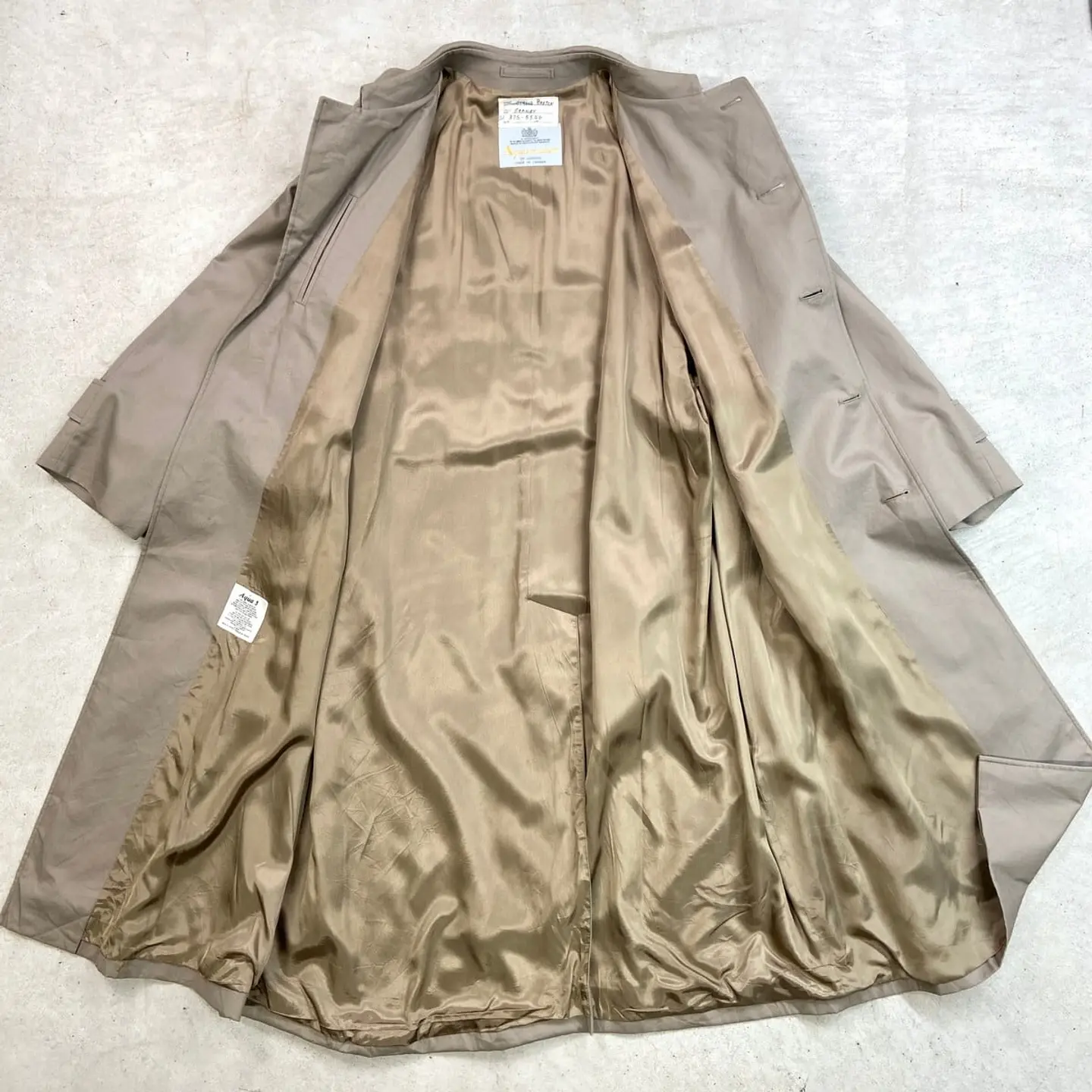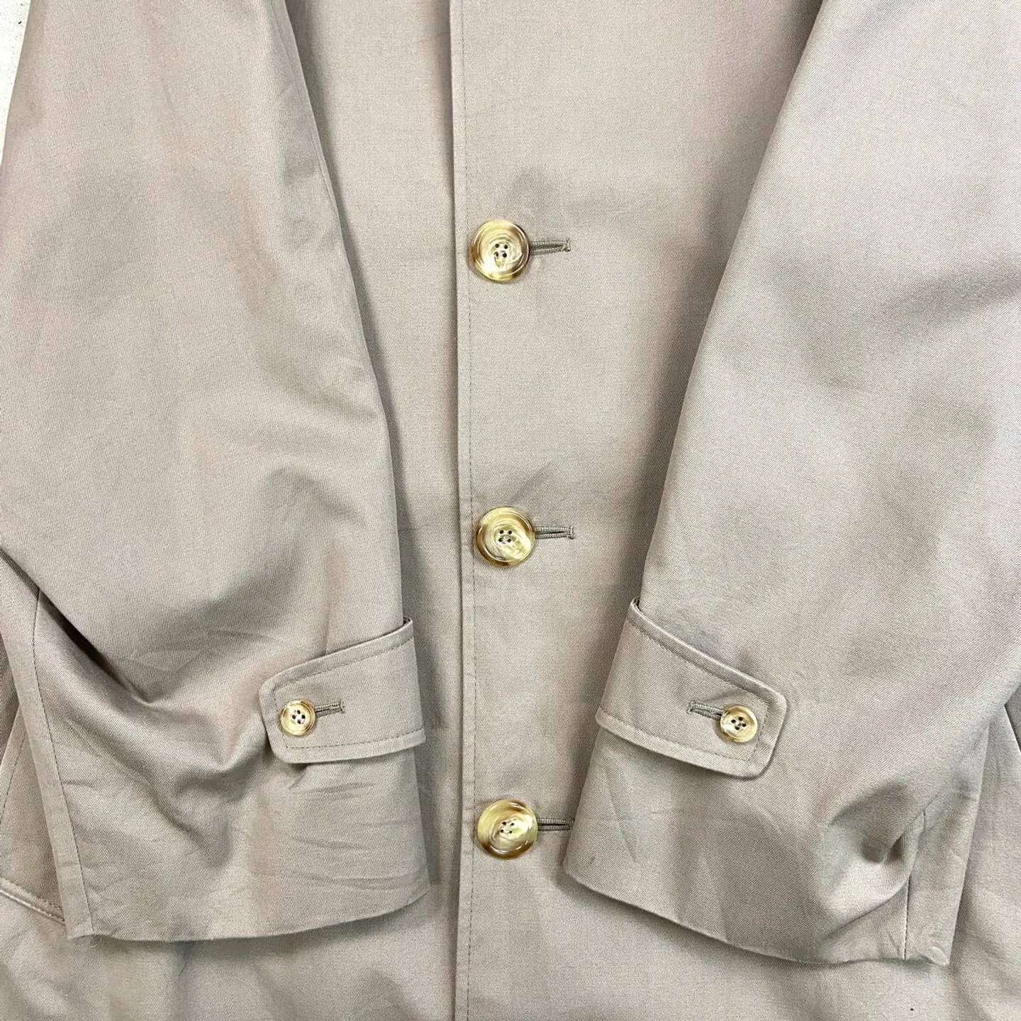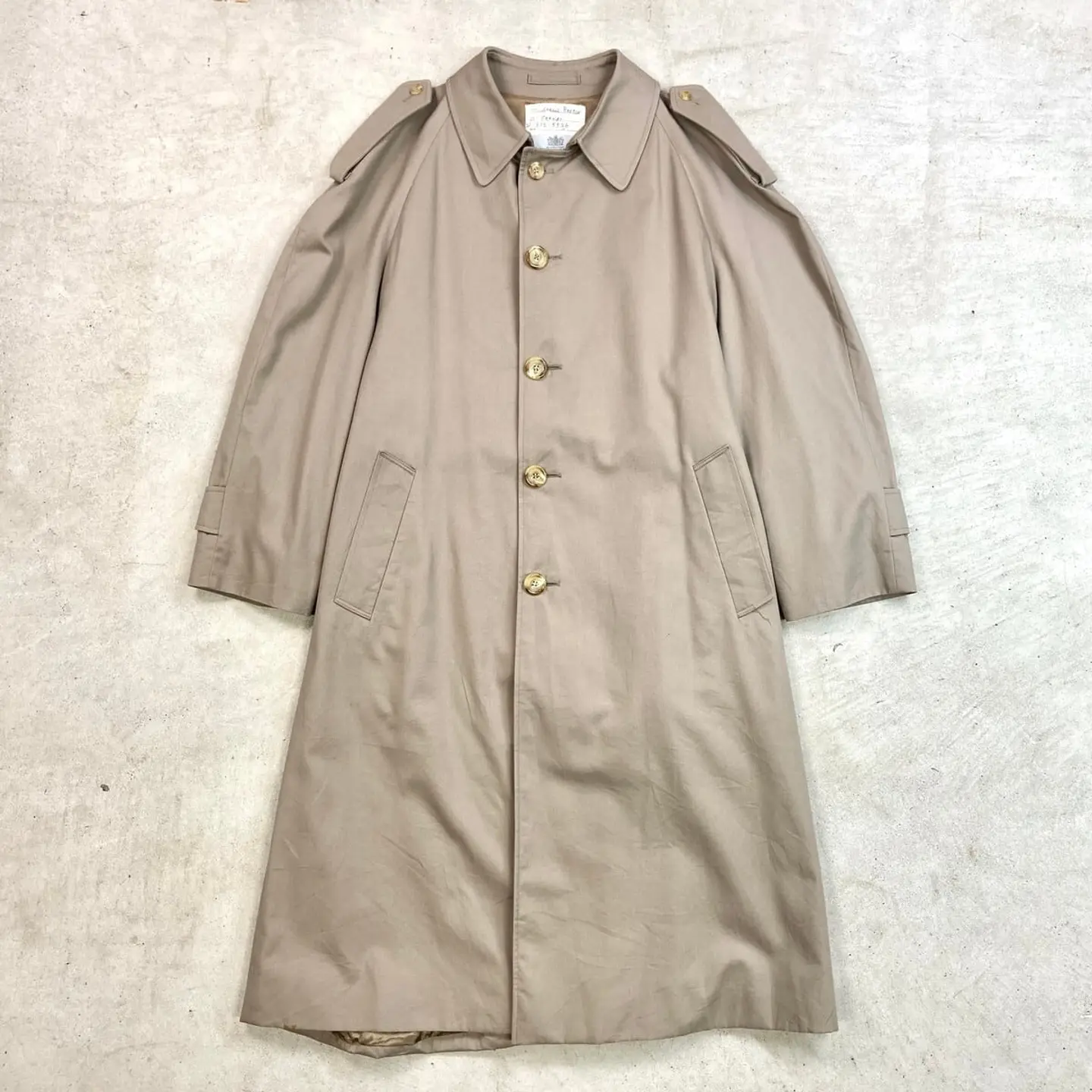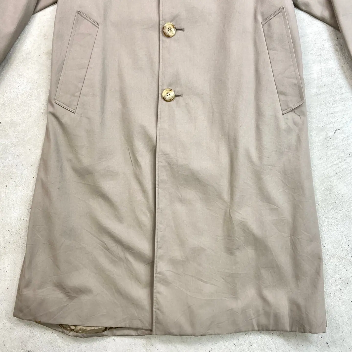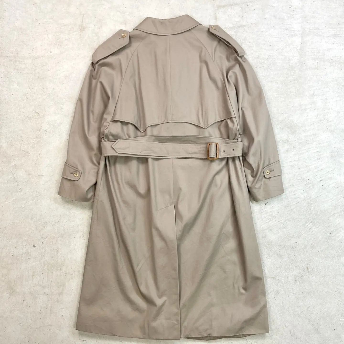 ■80年代 カナダ製 Aquascutum アクアスキュータム シングルトレンチコート メンズL相当 古着 80s ヴィンテージ VINTAGE ウエストベルト付き エポレット グレージュ【コート】/ベージュ ◎実物はグレージュに近い色合いです。 【ブランド】Aquascutum アクアスキュータム 【サイズ】表記 38 ※計測値をご確認ください。 着丈…116 身幅…61.5 裄丈…73.5 袖丈(脇下計測)…43 【素材】コットン55%、ポリエステル45% 【生産国】カナダ製 【状態】使用感はありますが、目立ったダメージや汚れはなく、 まだまだ愛用していただけます。 画像にてご確認ください。 【c260308101】 ※古着は洗濯、検品などのケアを行っております。(新品・デッドストックは洗濯していません。) ※モニターの発色により実物と異なる場合がございます。予めご了承ください。 ※ 海外直輸入USED品になります。