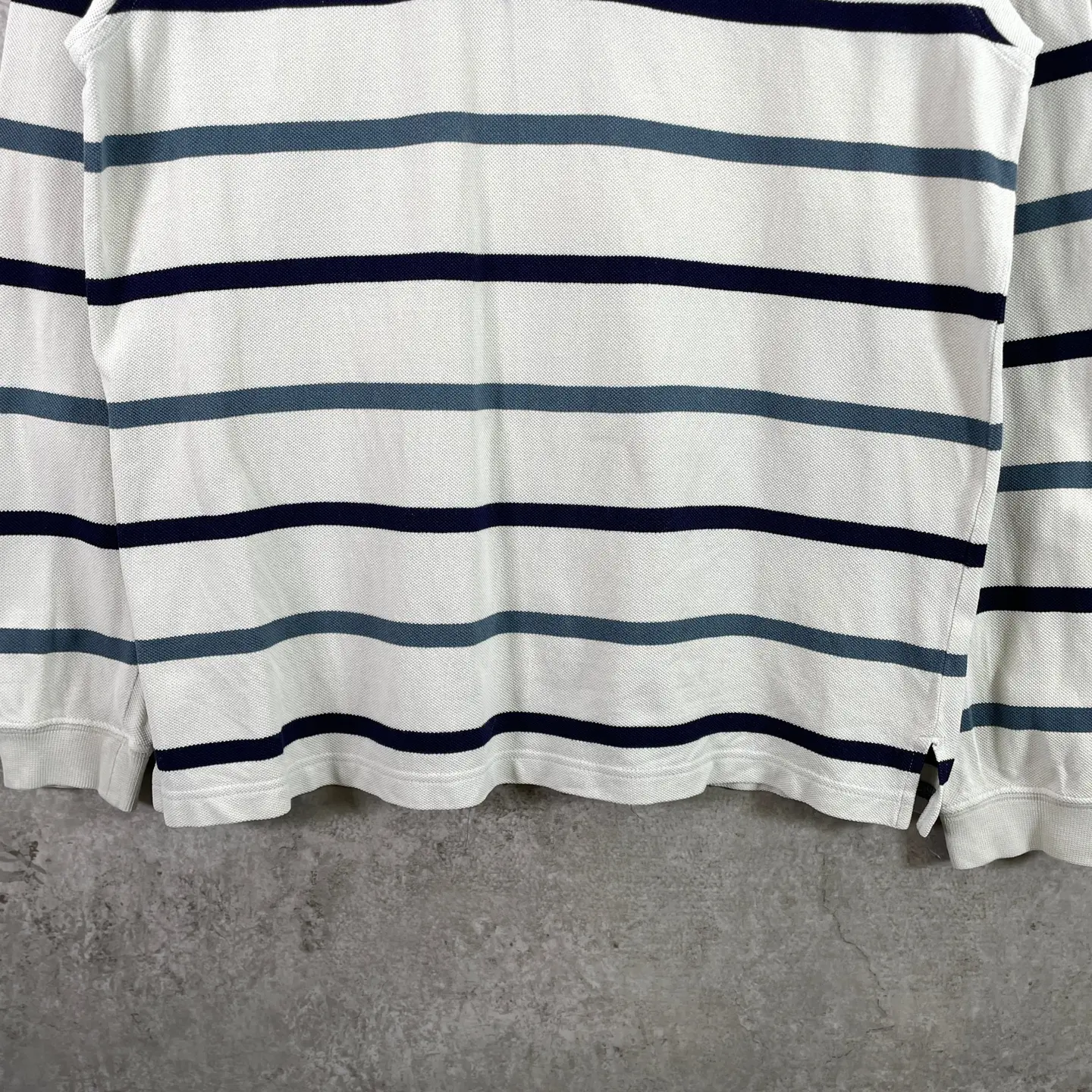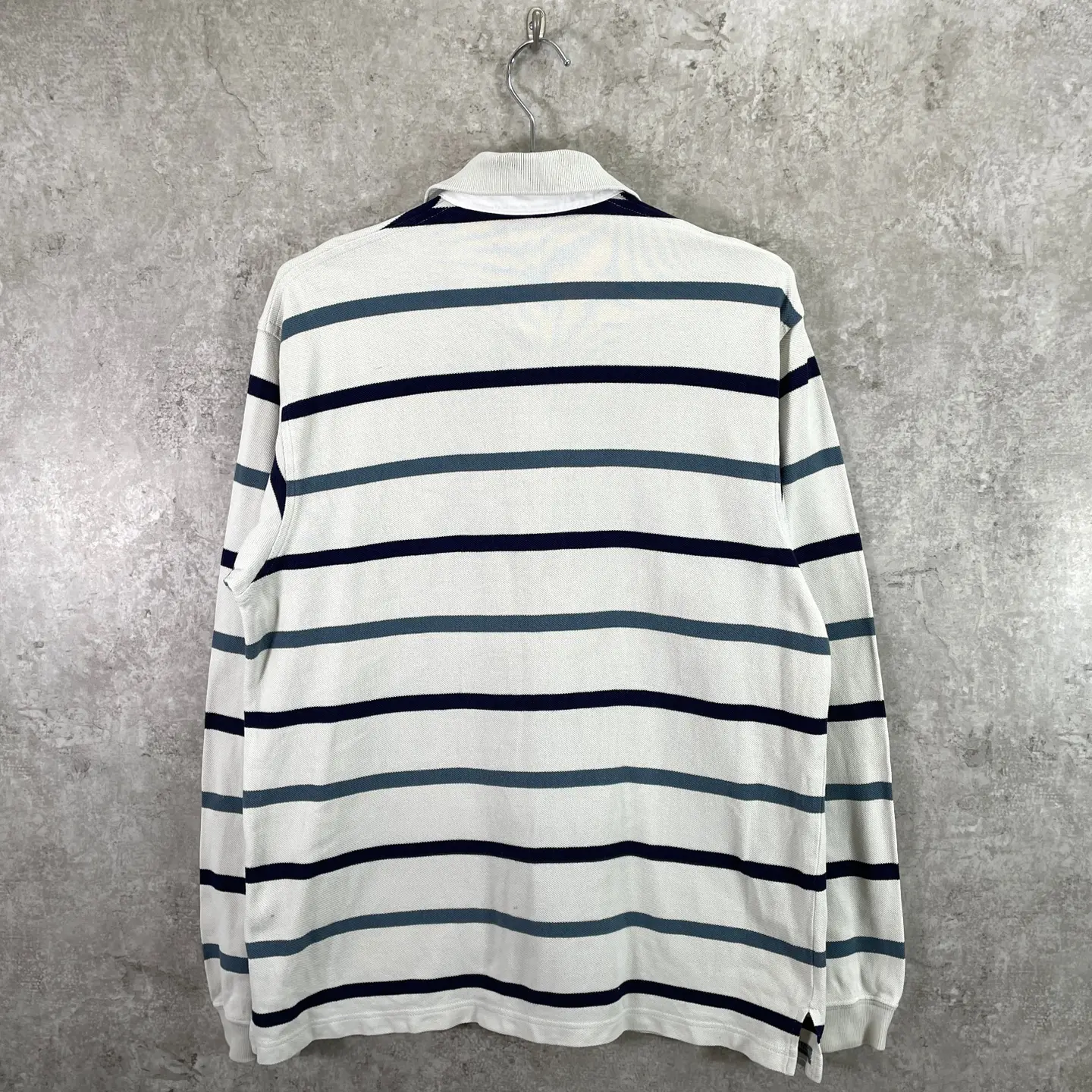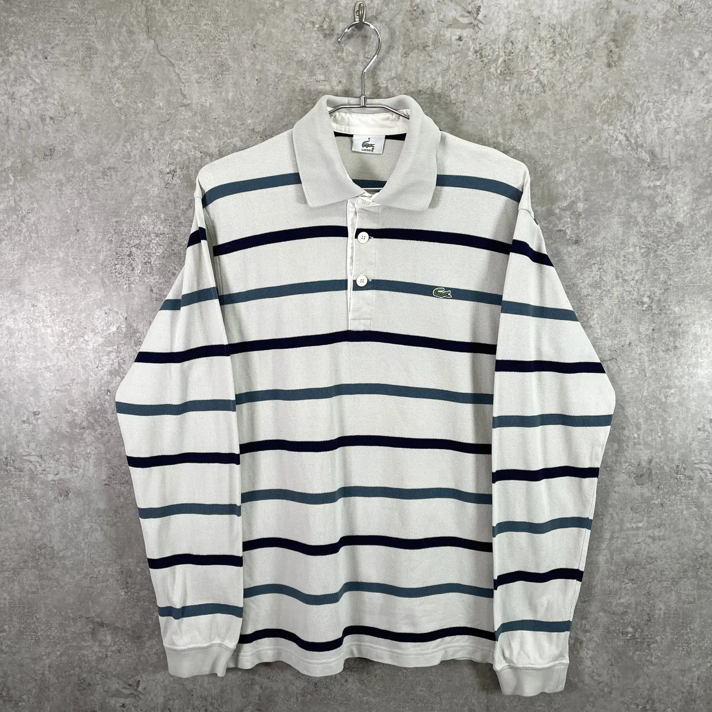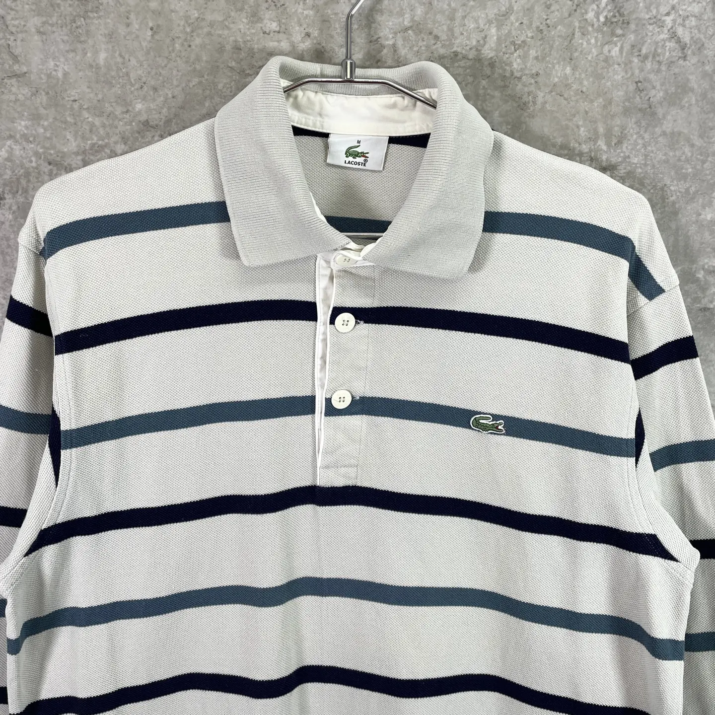 ■LACOSTE ラコステ 鹿の子 ボーダー 長袖ポロシャツ メンズM 古着 ワンポイントロゴ刺繍 ネイビー ベージュ ブルー【ポロシャツ・ラガーシャツ】/マルチカラー 【ブランド】 LACOSTE ラコステ 【サイズ】表記 M ※計測値をご確認ください。 着丈…68.5 身幅…53 肩幅…48 袖丈…65.5 【生産国】不明 【素材】コットン100% 【状態】バックサイド裾付近、右袖口付近に薄汚れがあります。 画像にてご確認ください。 【c260307107】 ※古着は洗濯、検品などのケアを行っております。(新品・デッドストックは洗濯していません。) ※モニターの発色により実物と異なる場合がございます。予めご了承ください。 ※ 海外直輸入USED品になります。