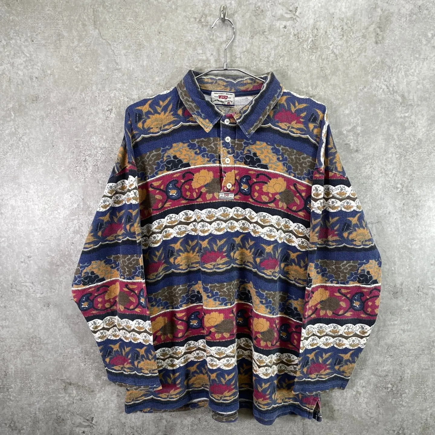 ■90年代 Levi's ユーロリーバイス ボーダー 長袖ラガーシャツ メンズL相当 古着 90s VINTAGE ヴィンテージ レッド ライトグレー【ポロシャツ・ラガーシャツ】/マルチカラー 【ブランド】 Levi's リーバイス 【サイズ】表記 XL ※計測値をご確認ください。 着丈…70 身幅…66 肩幅…63 袖丈…52 【生産国】不明 【素材】不明(おそらくコットン) 【状態】バックサイド上部に一部ダメージがあります。 画像にてご確認ください。 【c260307105】 ※古着は洗濯、検品などのケアを行っております。(新品・デッドストックは洗濯していません。) ※モニターの発色により実物と異なる場合がございます。予めご了承ください。 ※ 海外直輸入USED品になります。